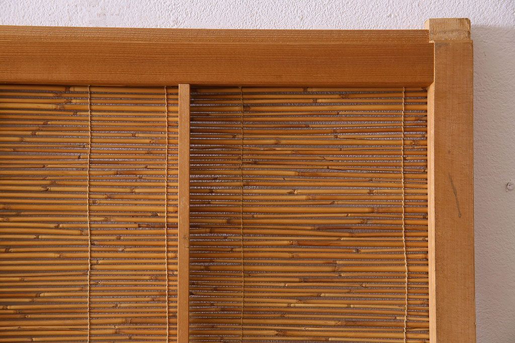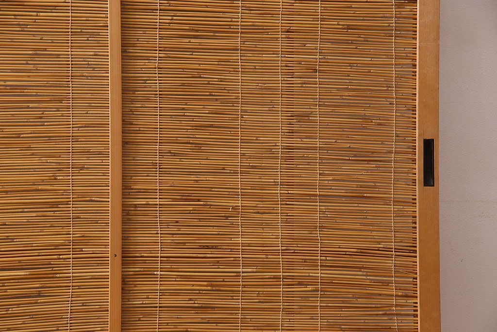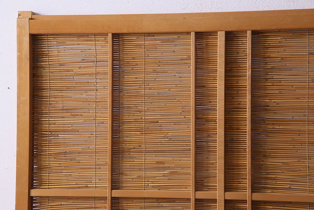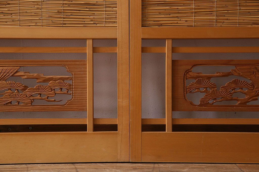 ラフジュ工房> 骨董・美術品 > 古民具・骨董 彫刻入り 風情あるアンティーク御簾戸(簾戸、簀戸、葭戸、夏障子、夏戸、葦戸)2枚セット