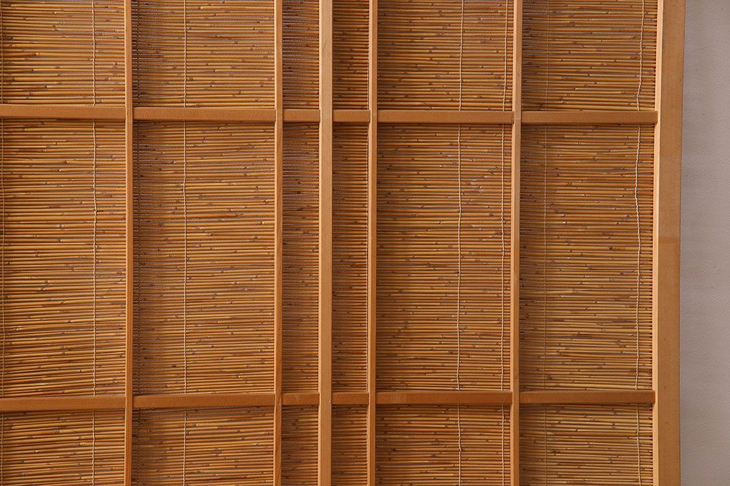 ラフジュ工房> 衝立・パーテーション> スタンド式衝立 > 古民具・骨董 彫刻入り 風情あるアンティーク御簾戸(簾戸、簀戸、葭戸、夏障子、夏戸、葦戸)2枚セット