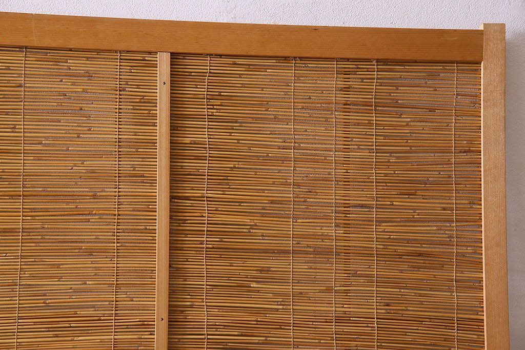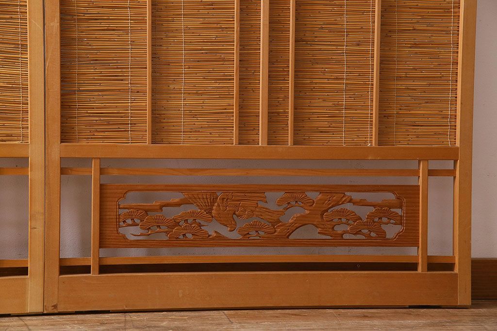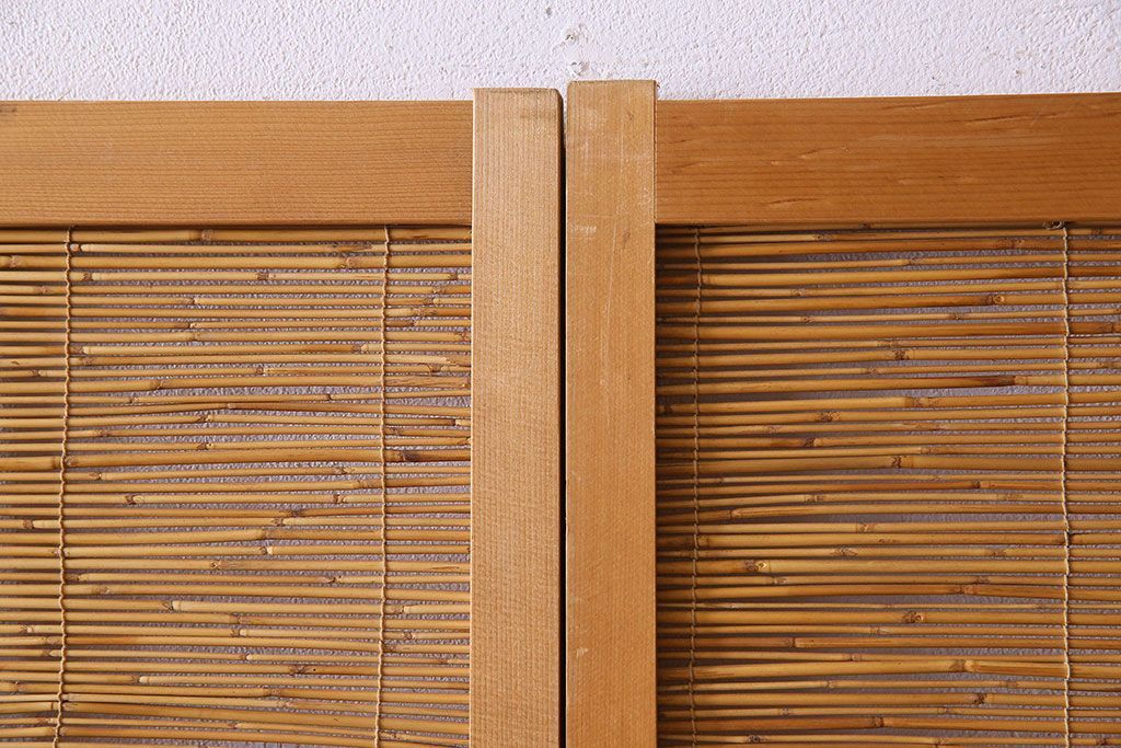 ラフジュ工房> 衝立・パーテーション > 古民具・骨董 彫刻入り 風情あるアンティーク御簾戸(簾戸、簀戸、葭戸、夏障子、夏戸、葦戸)2枚セット