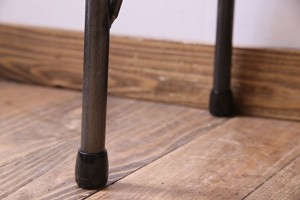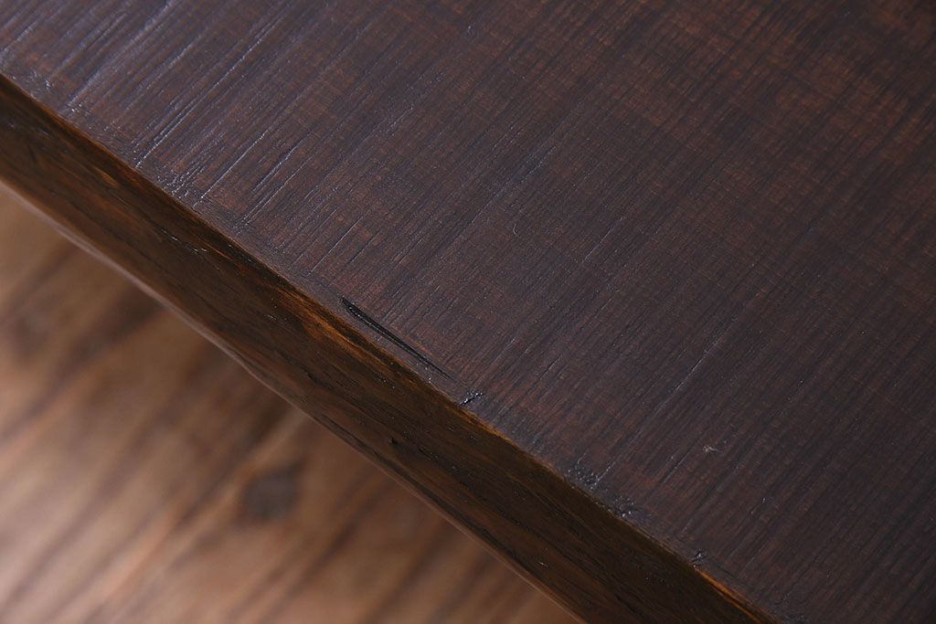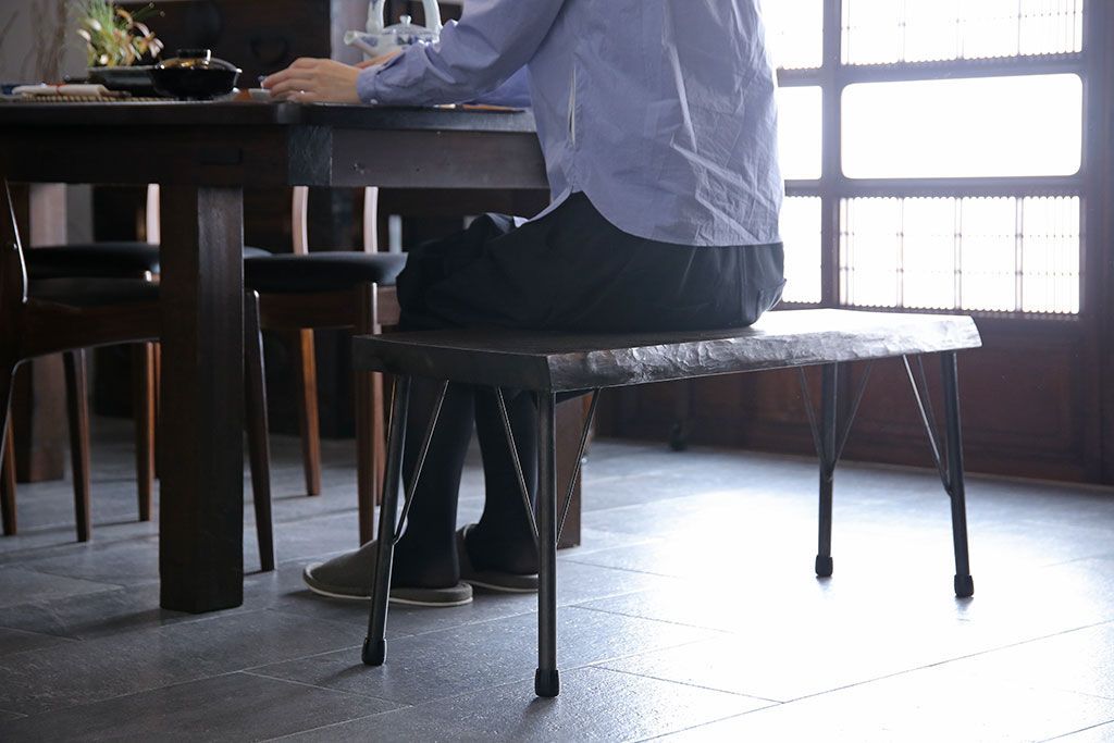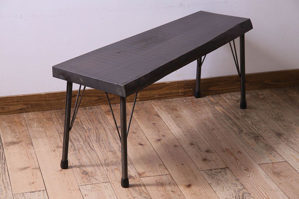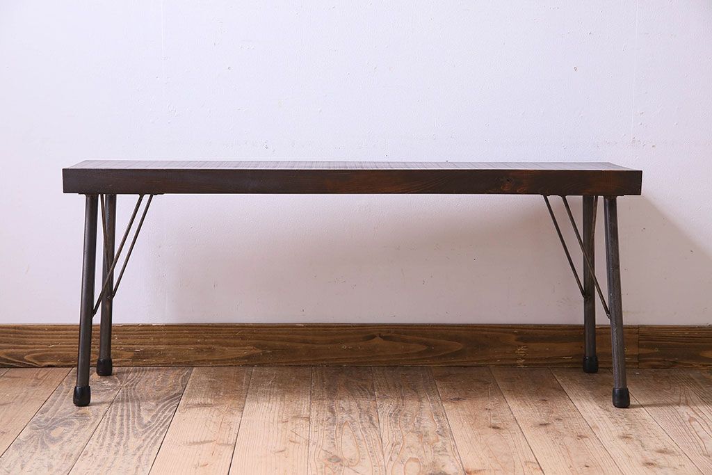 椅子・ベンチ> ベンチ > レトロ家具 昭和レトロ 天板一枚板 古い檜材の鉄脚ローテーブル(アイアンテーブル、鉄脚ベンチ、アイアンベンチ)