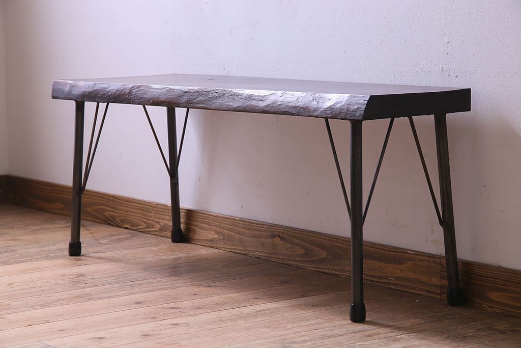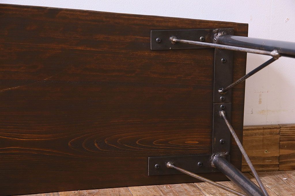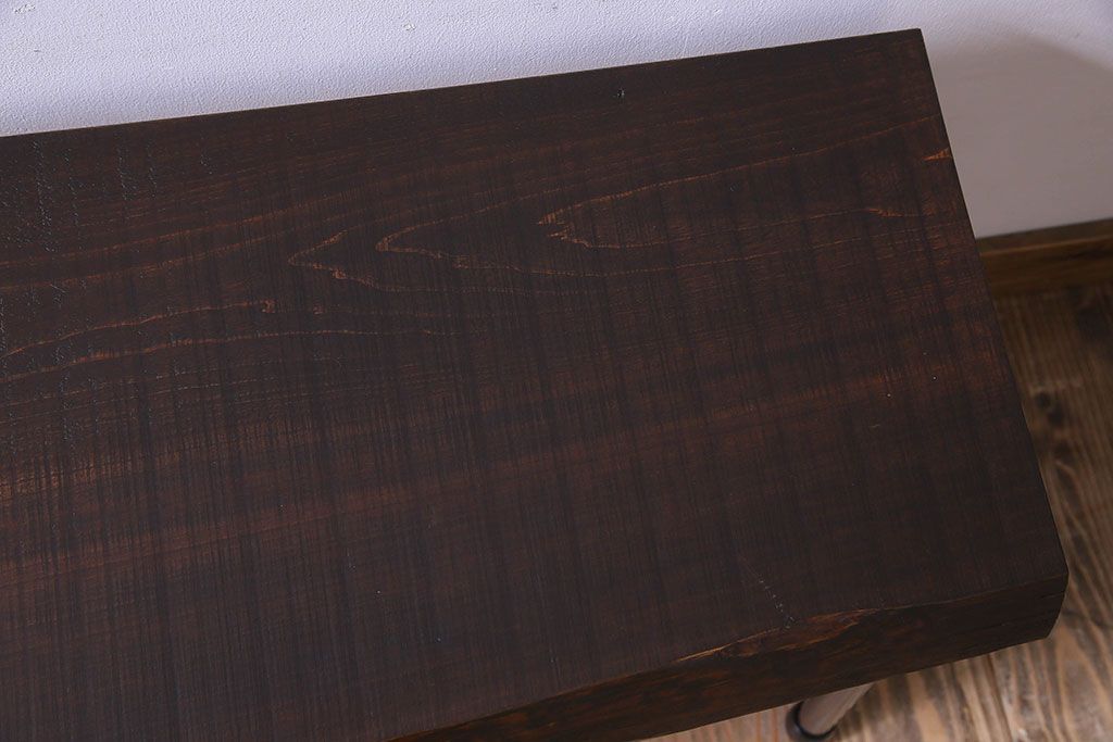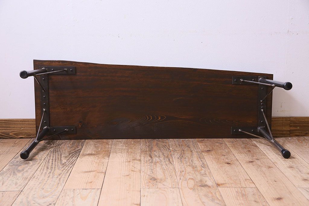 レトロ家具 昭和レトロ 天板一枚板 古い檜材の鉄脚ローテーブル(アイアンテーブル、鉄脚ベンチ、アイアンベンチ)