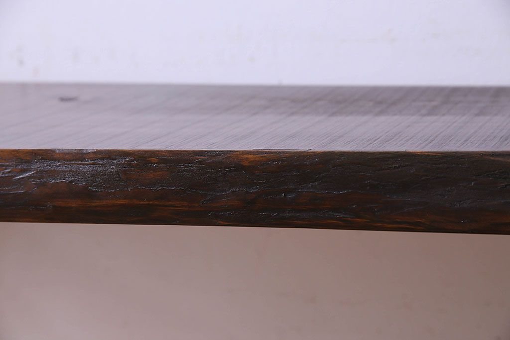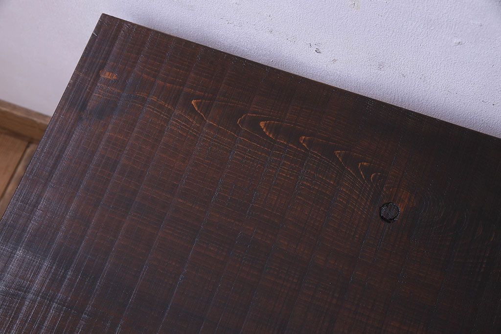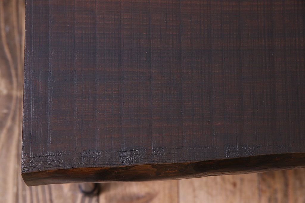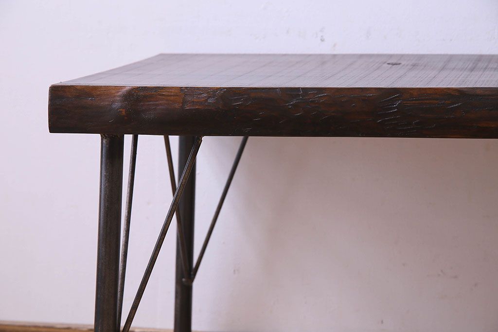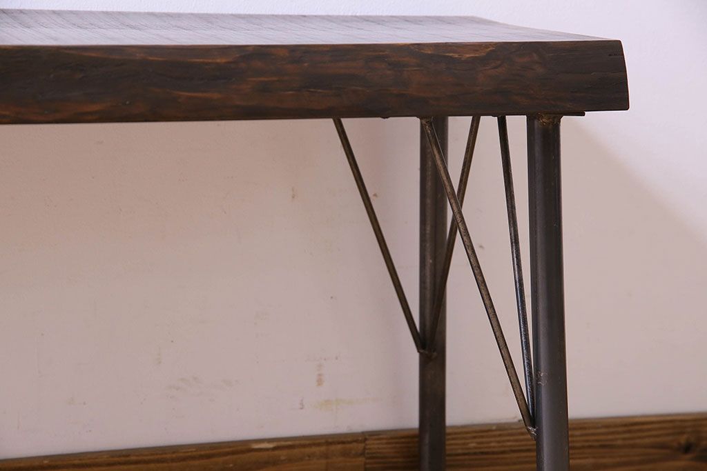 レトロ家具 昭和レトロ 天板一枚板 古い檜材の鉄脚ローテーブル(アイアンテーブル、鉄脚ベンチ、アイアンベンチ)