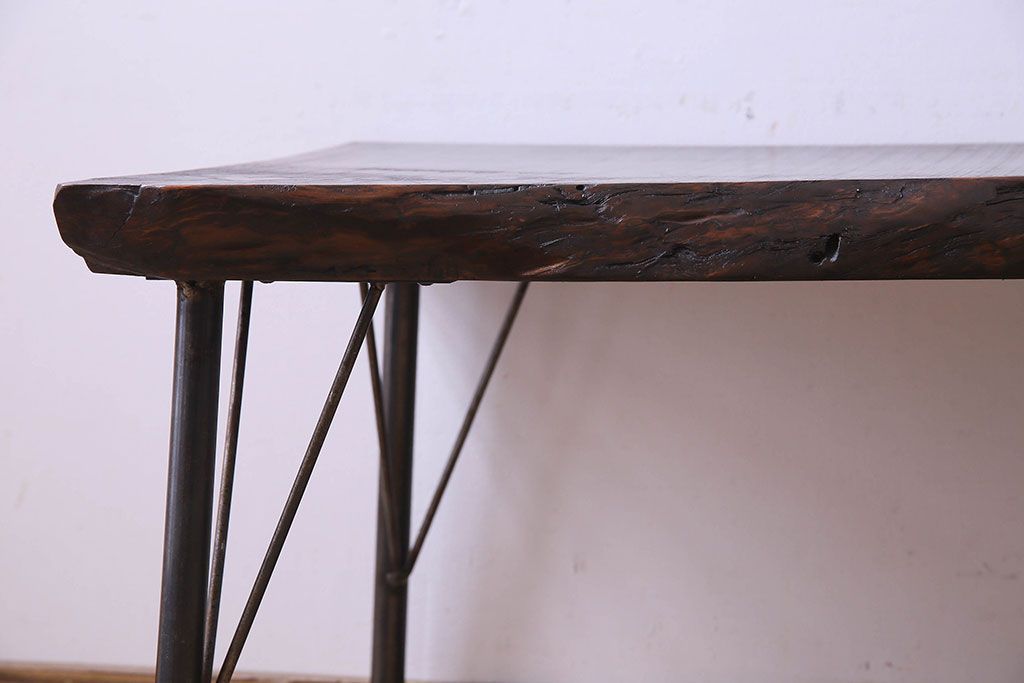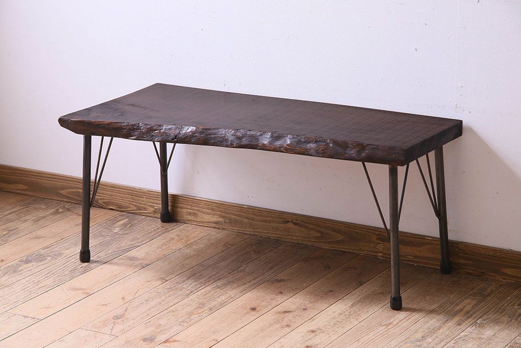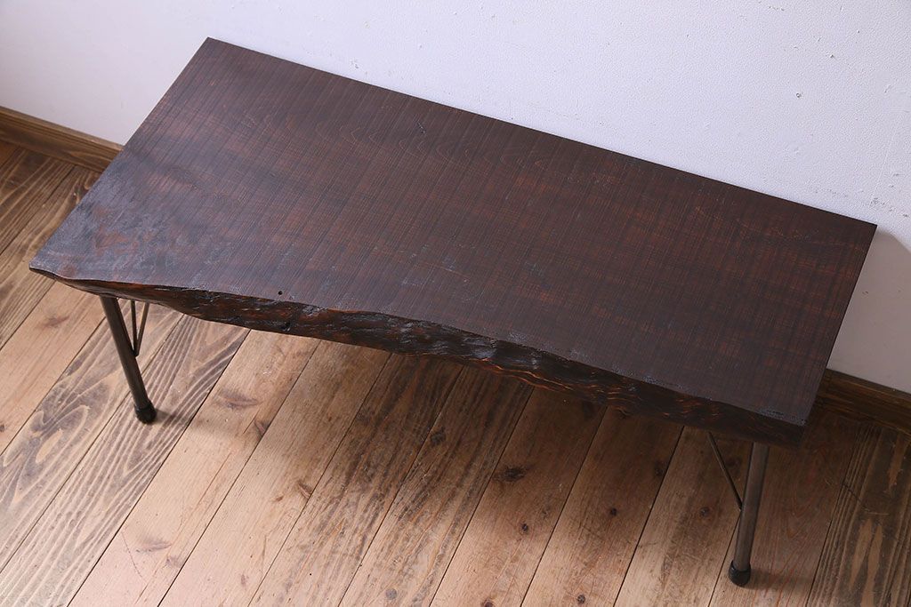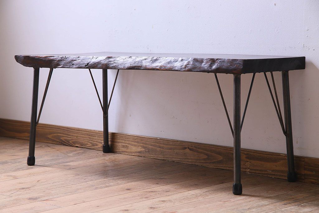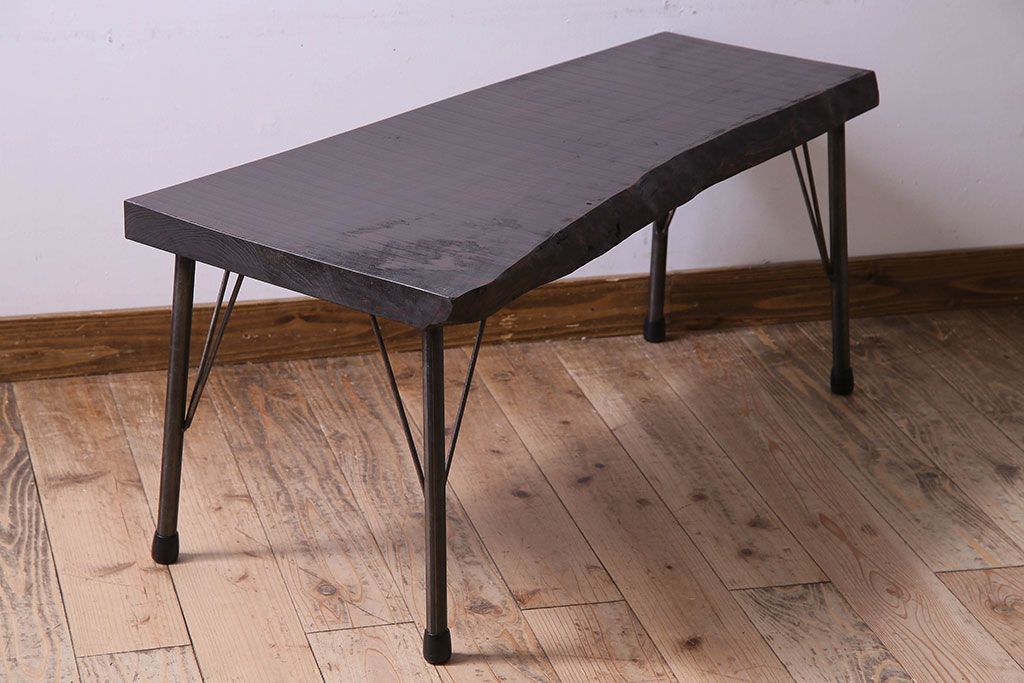 ラフジュ工房> テーブル> 鉄脚テーブル > レトロ家具 昭和レトロ 天板一枚板 古い檜材の鉄脚ローテーブル(アイアンテーブル、鉄脚ベンチ、アイアンベンチ)(1)