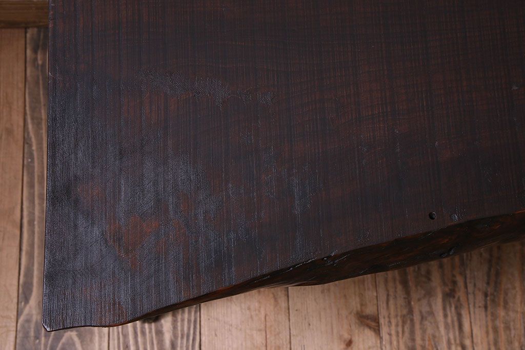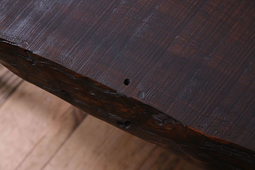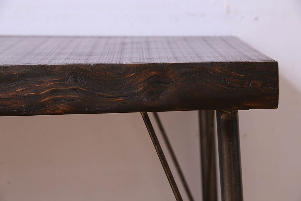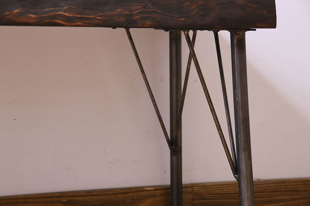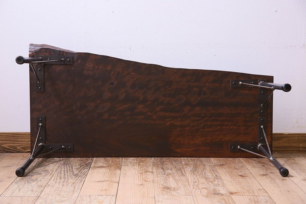 ラフジュ工房> テーブル> 鉄脚テーブル > レトロ家具 昭和レトロ 天板一枚板 古い檜材の鉄脚ローテーブル(アイアンテーブル、鉄脚ベンチ、アイアンベンチ)(1)