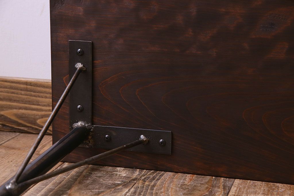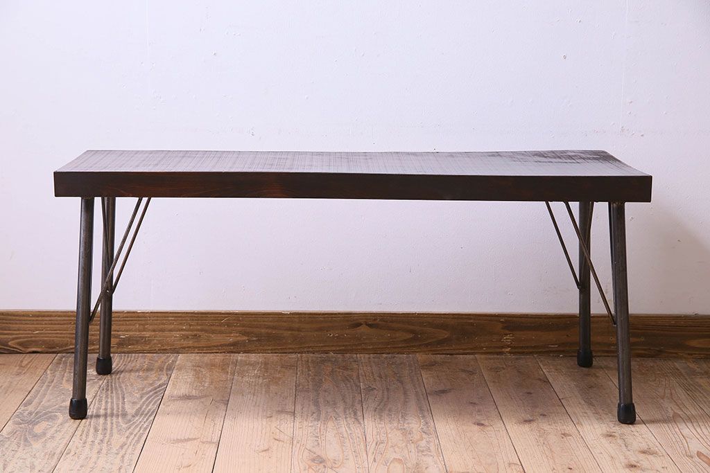 ラフジュ工房> テーブル> センターテーブル・ローテーブル > レトロ家具 昭和レトロ 天板一枚板 古い檜材の鉄脚ローテーブル(アイアンテーブル、鉄脚ベンチ、アイアンベンチ)(1)