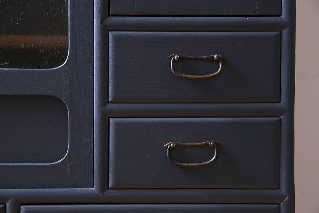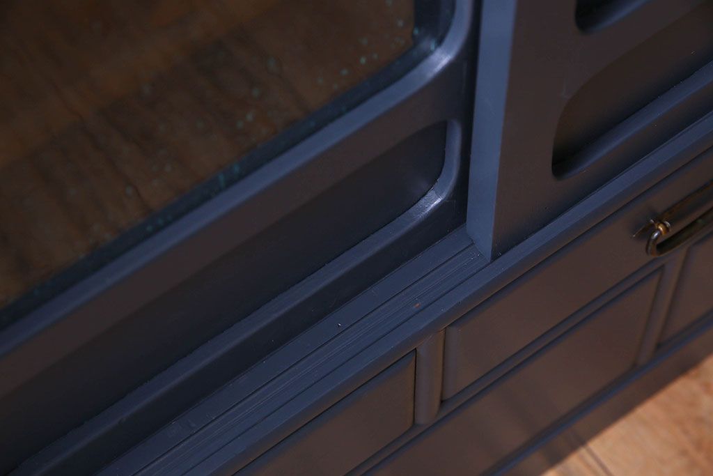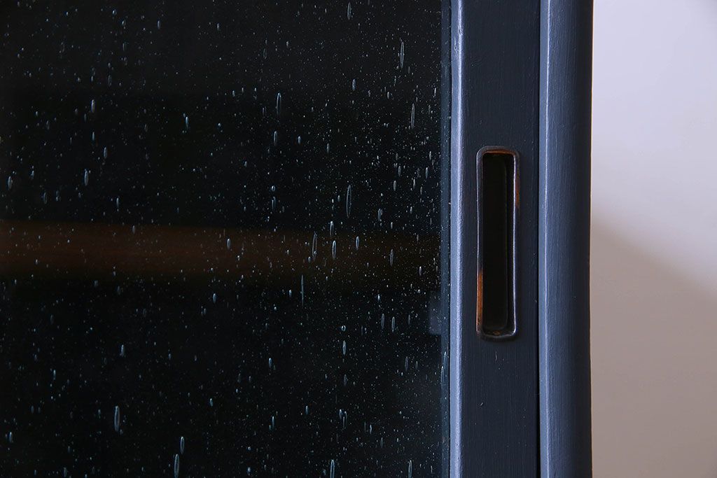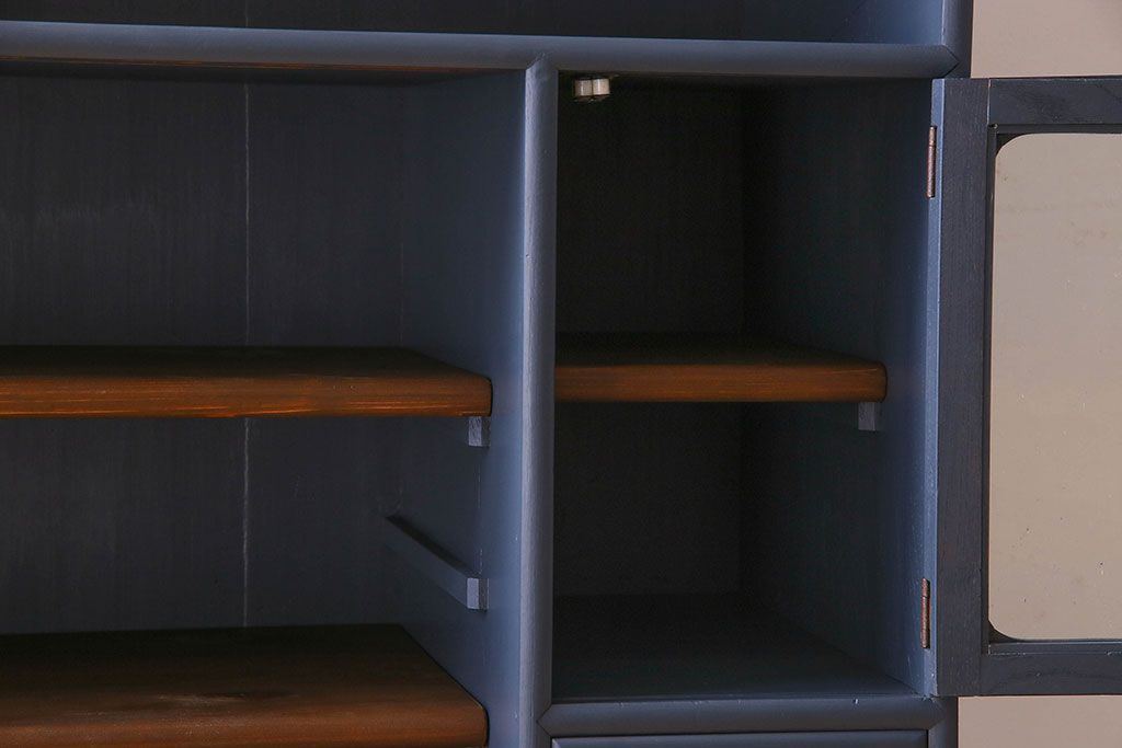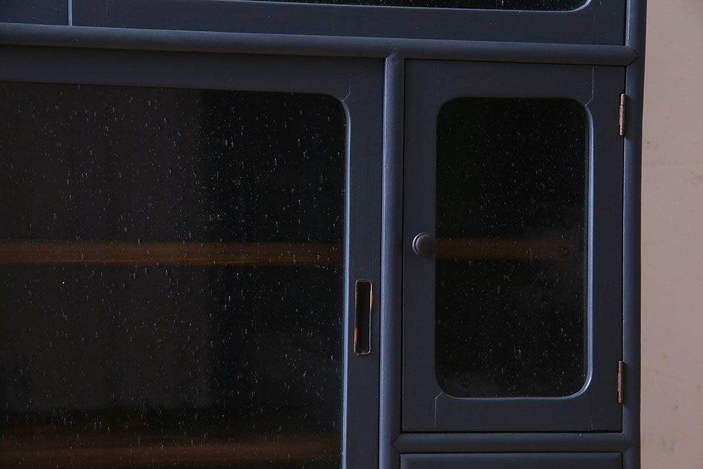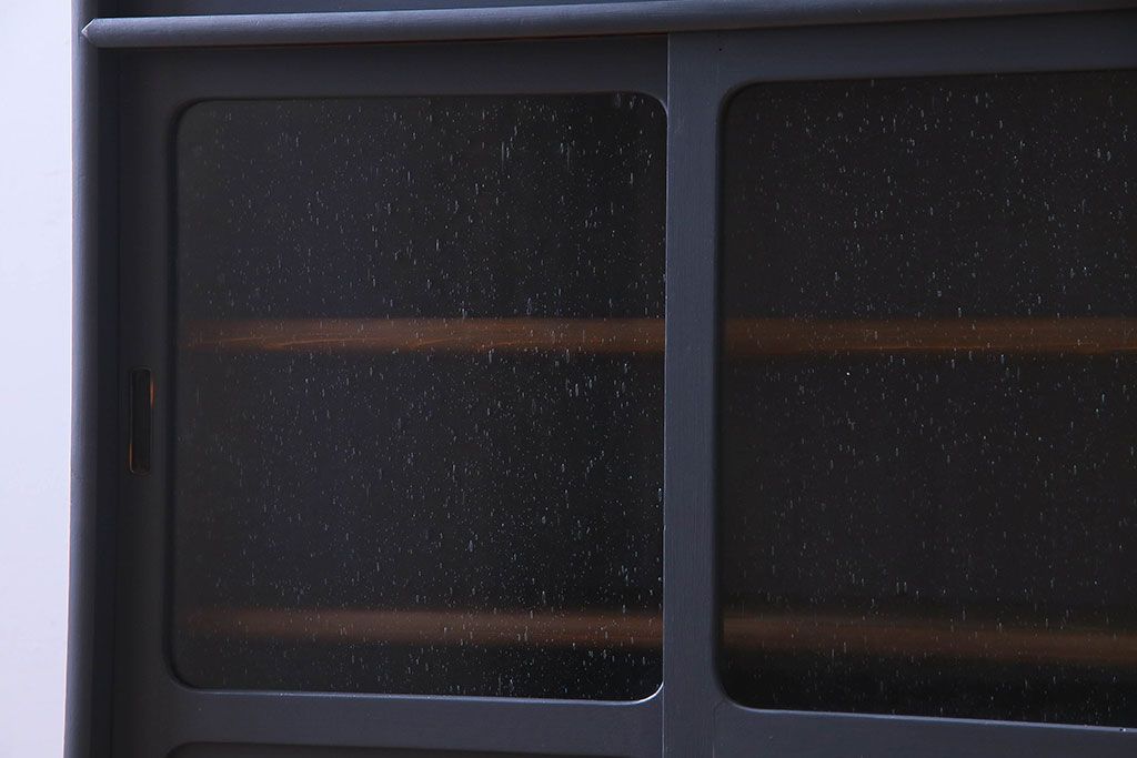 ペイント家具 気泡ガラス入り シックなカラーが素敵な収納棚(戸棚、食器棚)