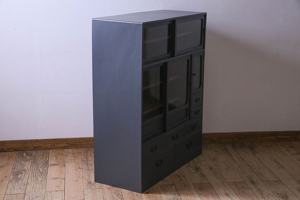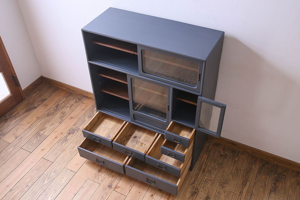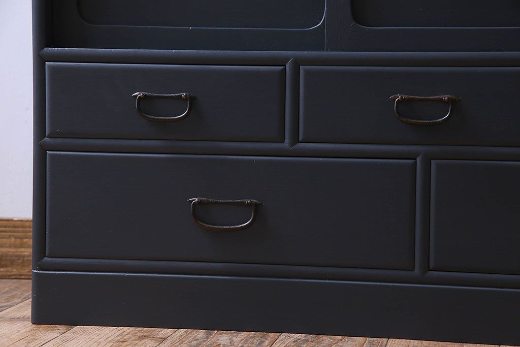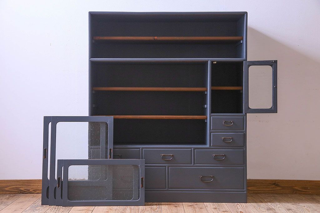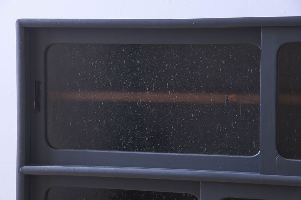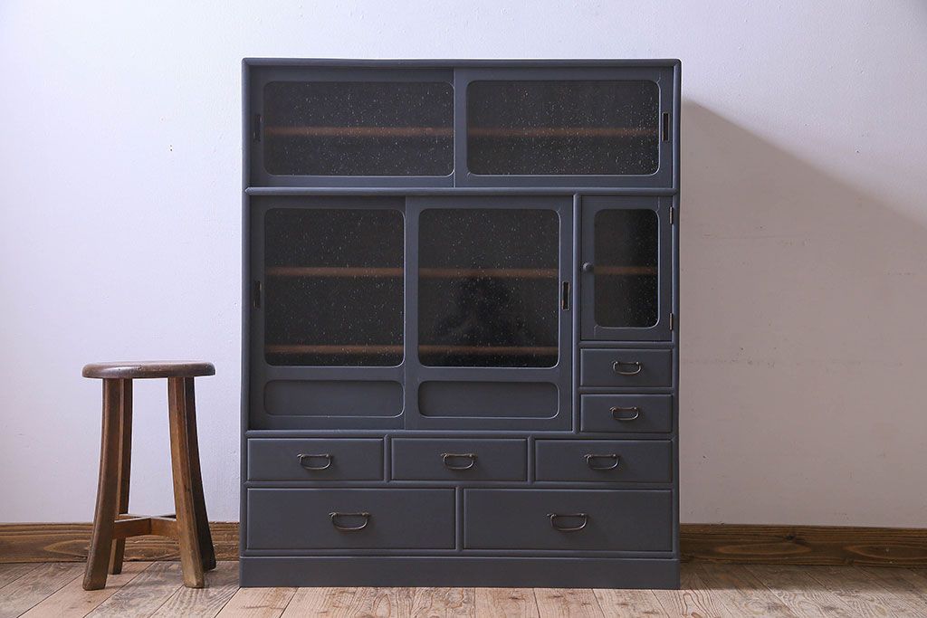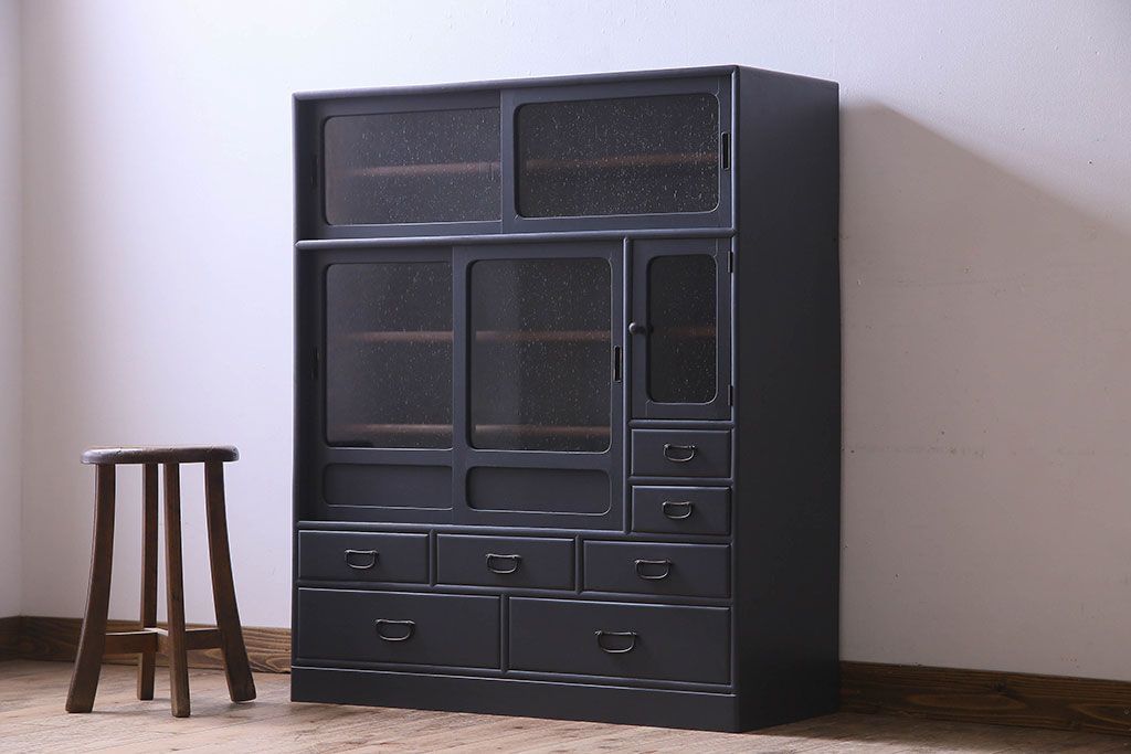 ペイント家具 気泡ガラス入り シックなカラーが素敵な収納棚(戸棚、食器棚)