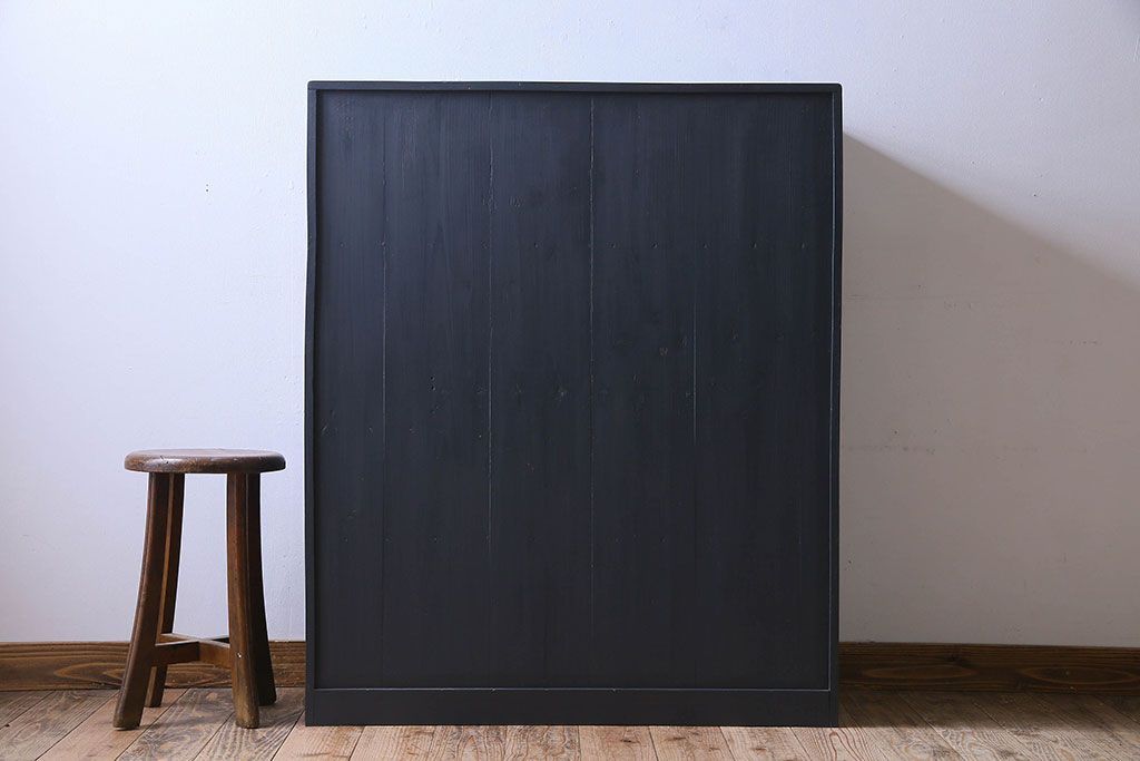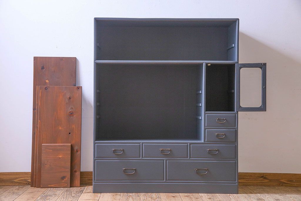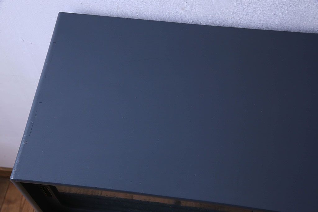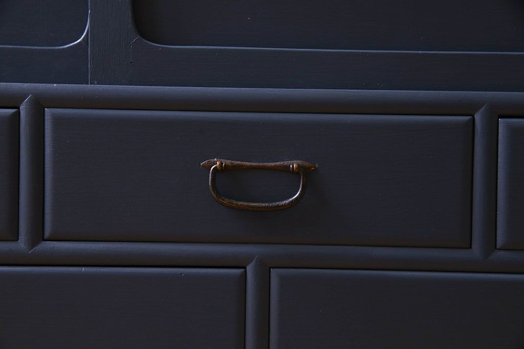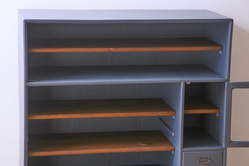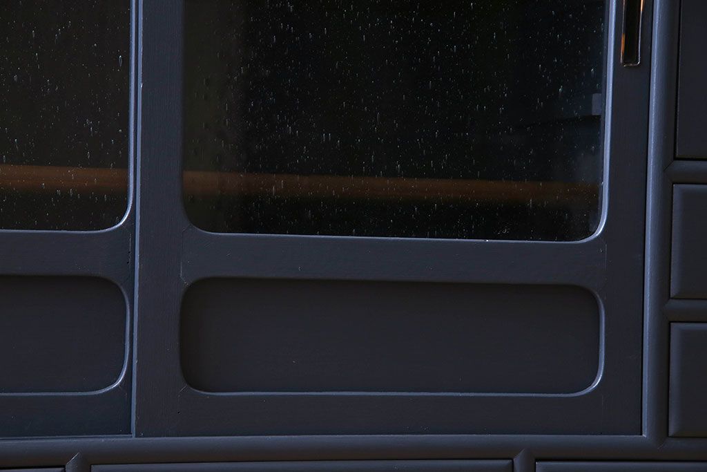ペイント家具 気泡ガラス入り シックなカラーが素敵な収納棚(戸棚、食器棚)