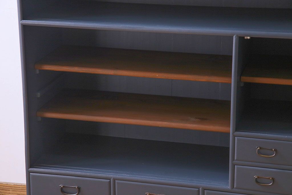 ラフジュ工房> キャビネット・戸棚> 本箱 > ペイント家具 気泡ガラス入り シックなカラーが素敵な収納棚(戸棚、食器棚)