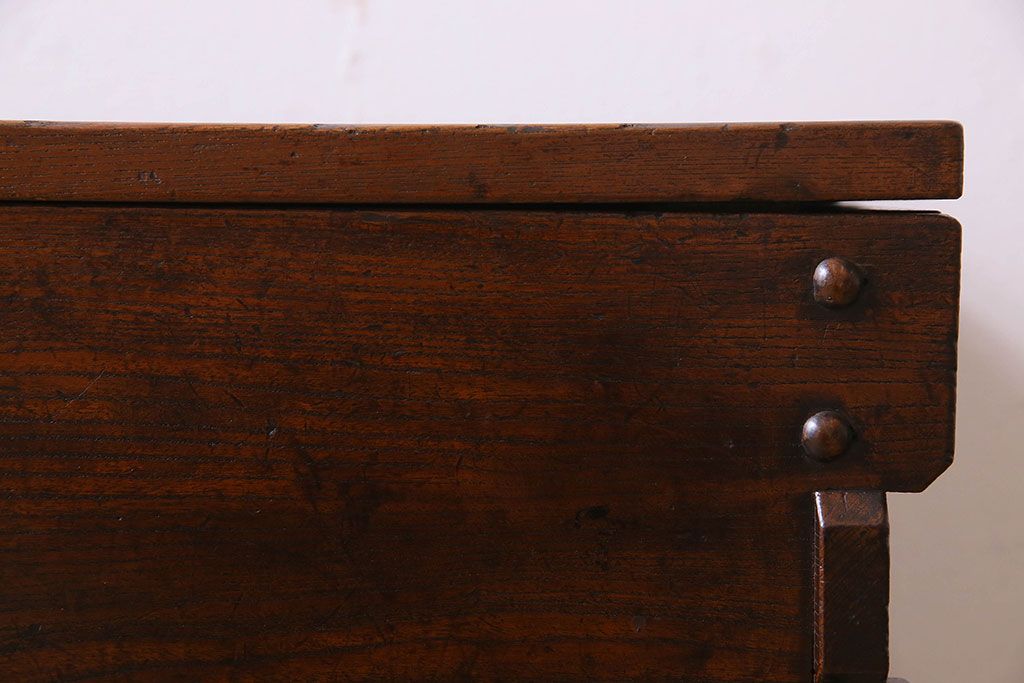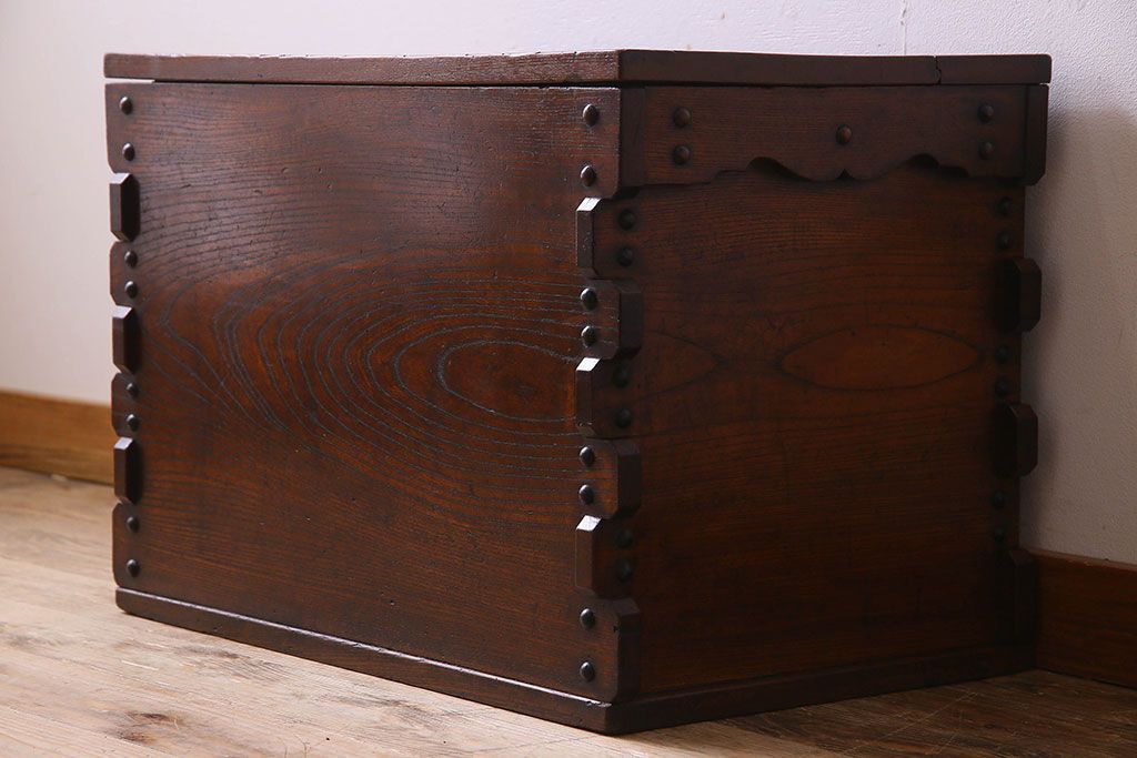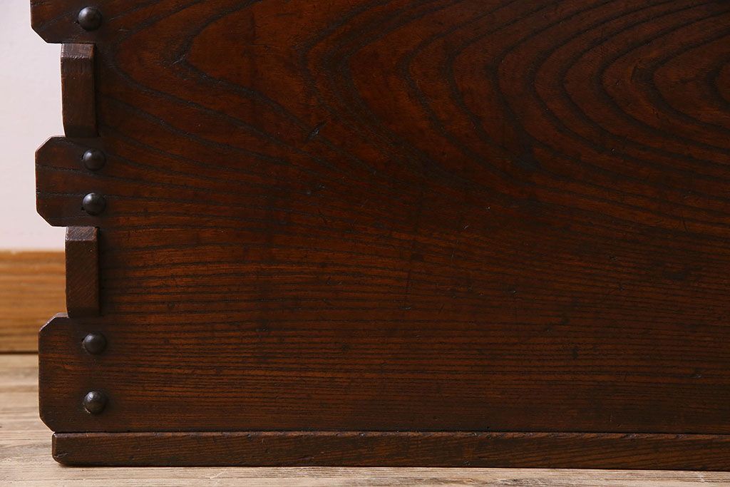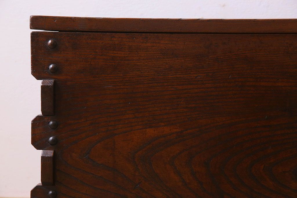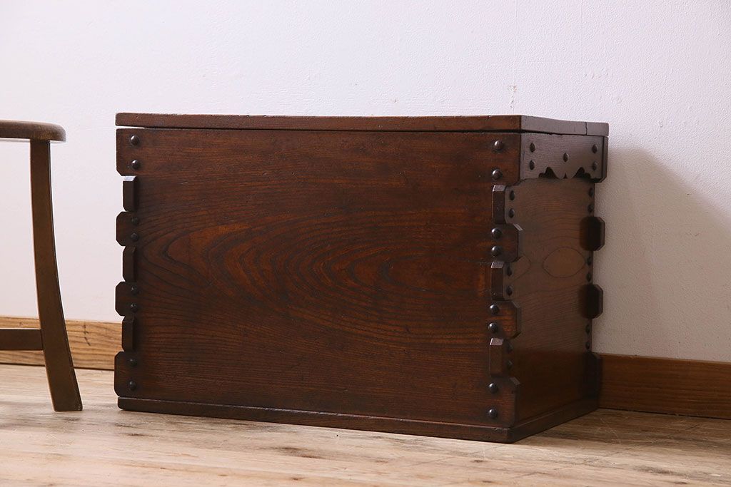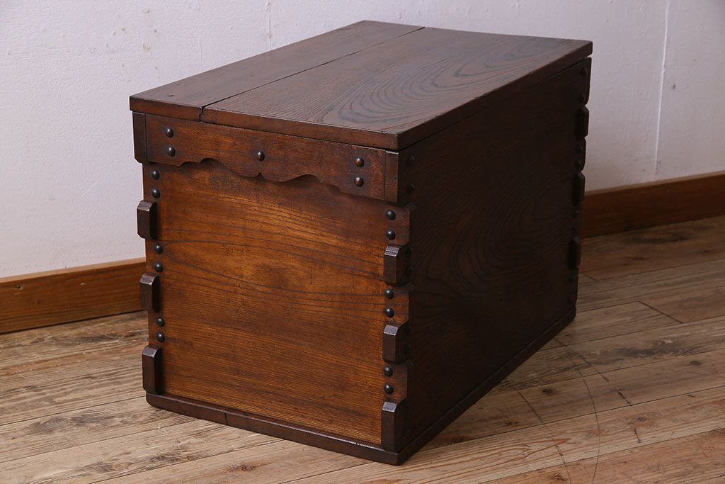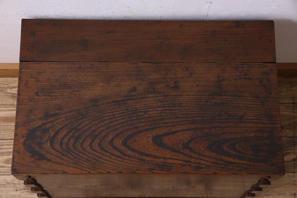 アンティーク雑貨 和製アンティーク 総ケヤキ材 古い木の質感が味わい深い収納箱(長持、小箱、小物入れ)
