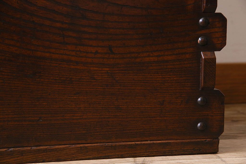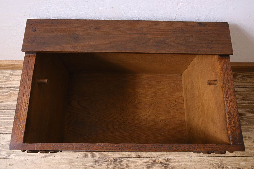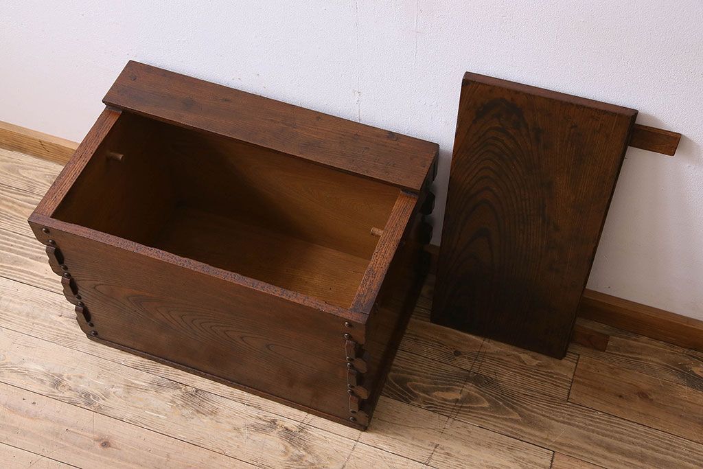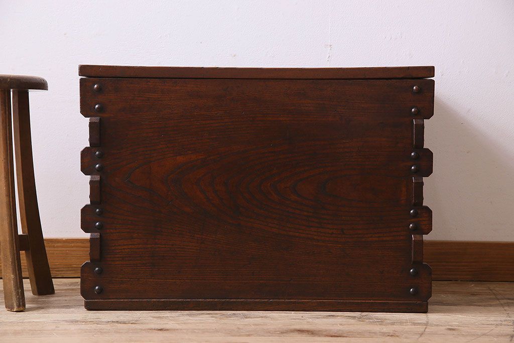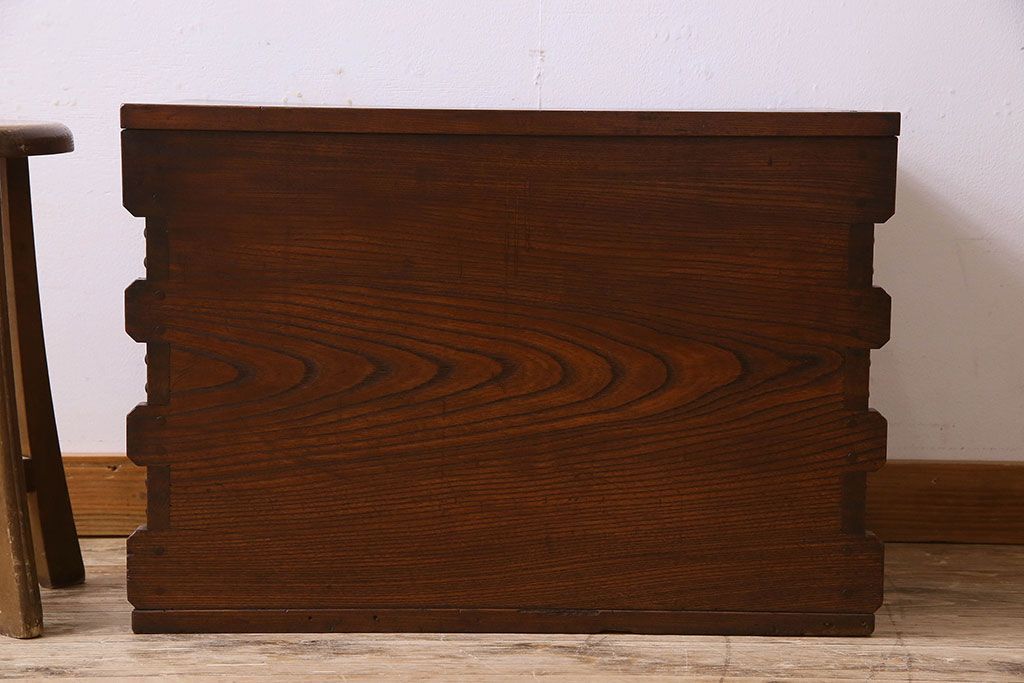 ラフジュ工房> 花台・飾り台 > アンティーク雑貨 和製アンティーク 総ケヤキ材 古い木の質感が味わい深い収納箱(長持、小箱、小物入れ)