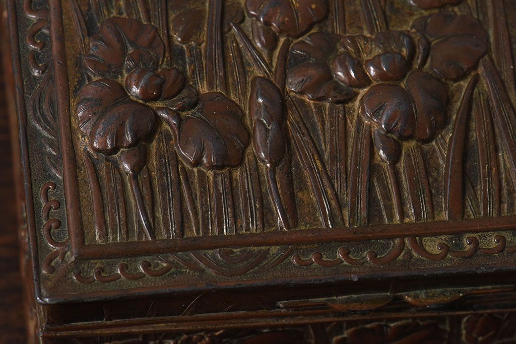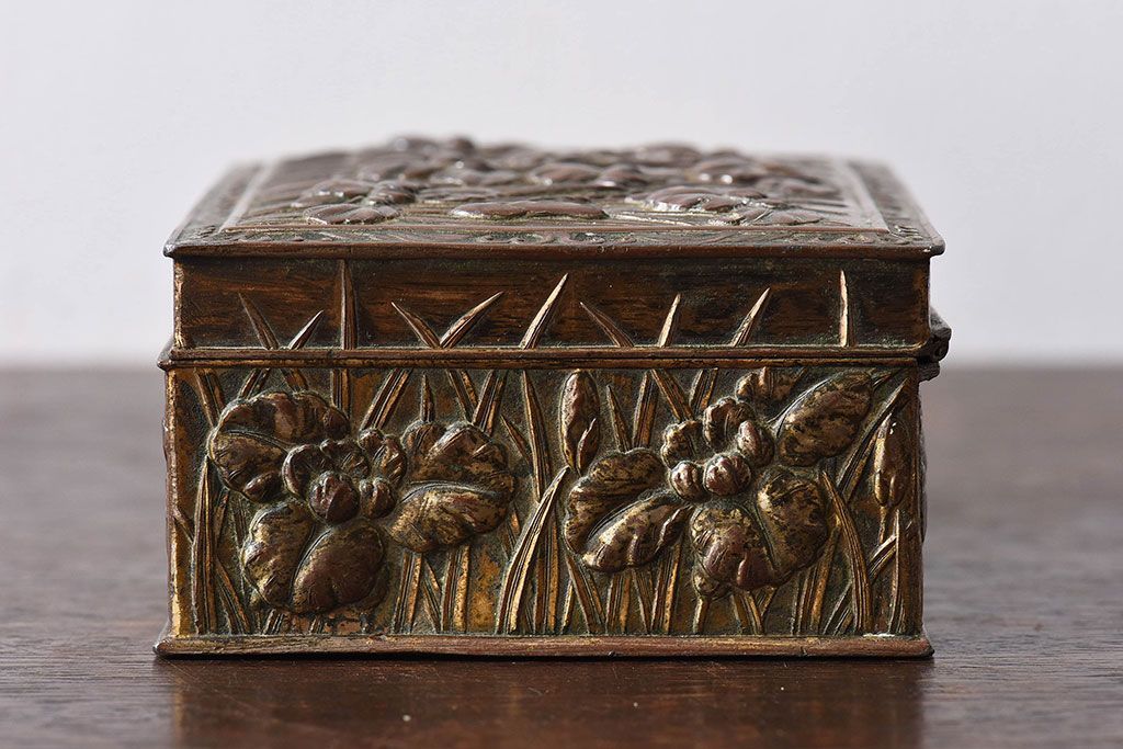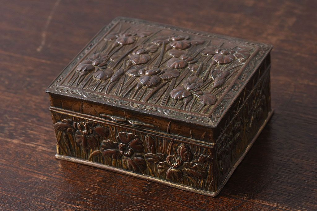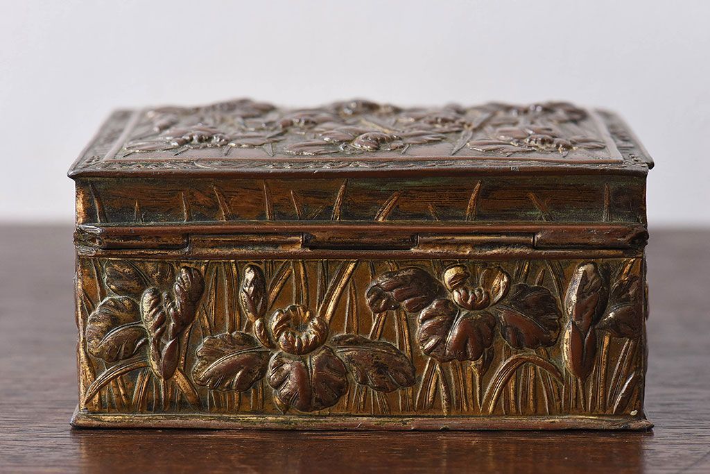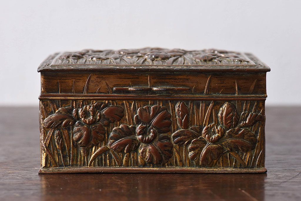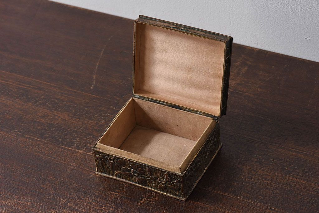 アンティーク雑貨 イギリスビンテージ 花柄が彫刻が味のある小箱(小物入れ)