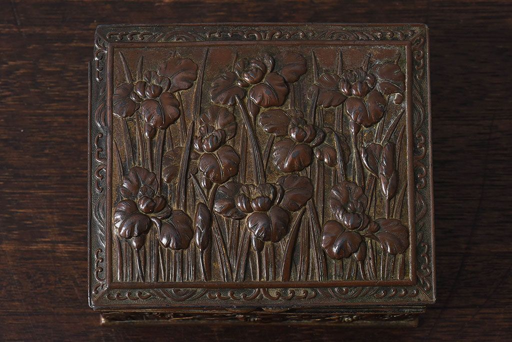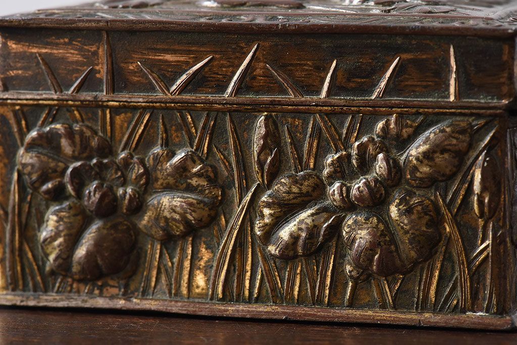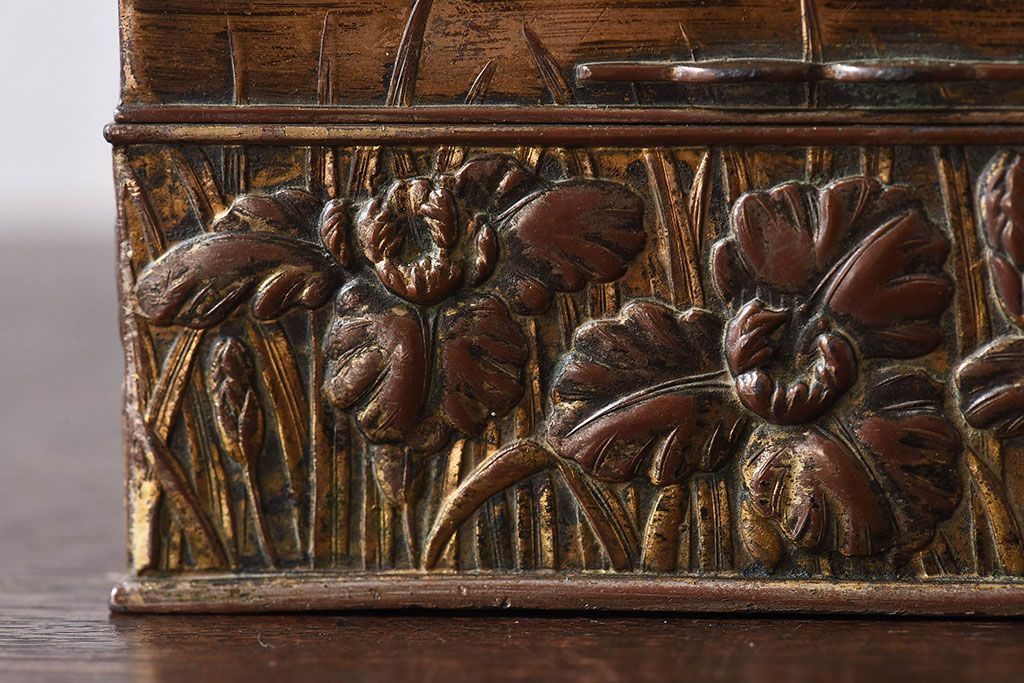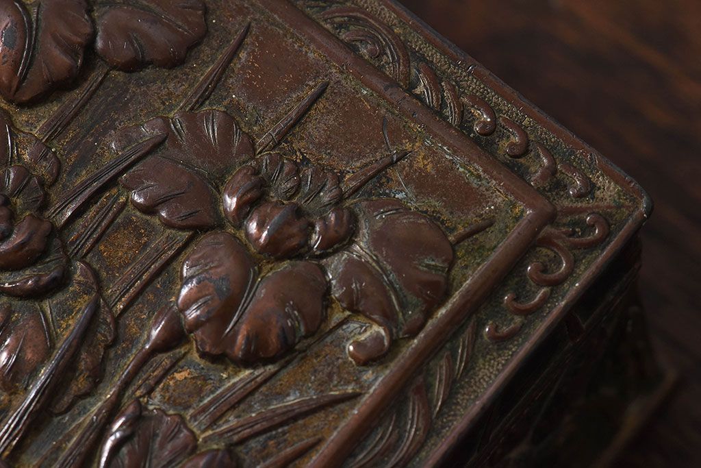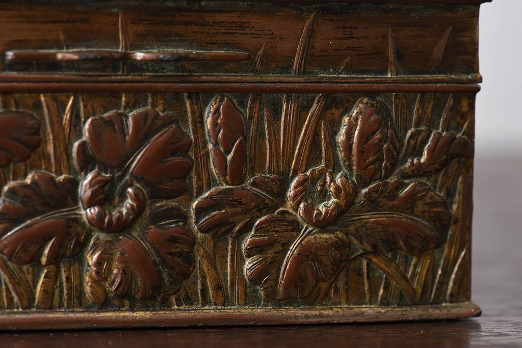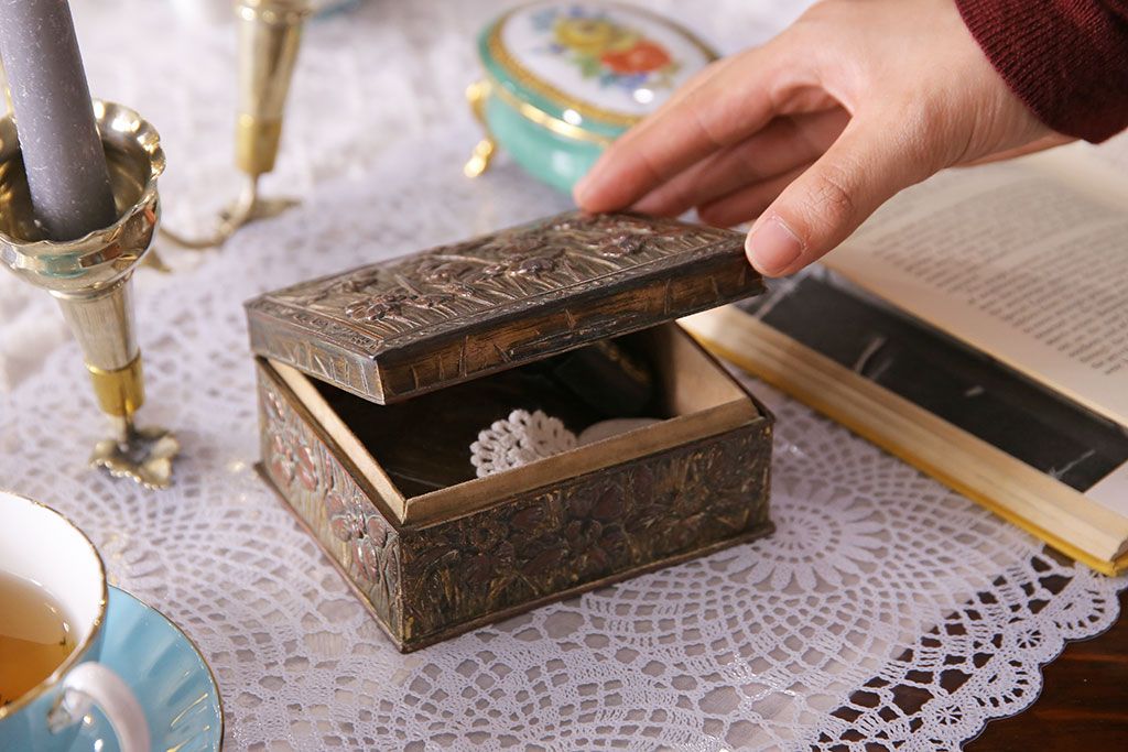 アンティーク雑貨 イギリスビンテージ 花柄が彫刻が味のある小箱(小物入れ)