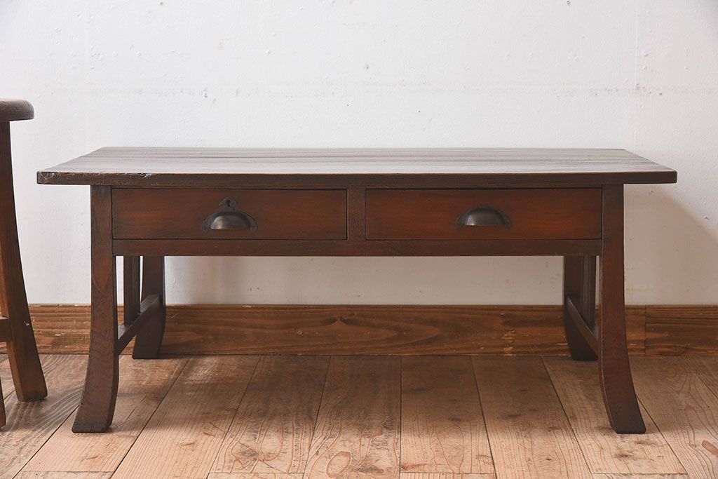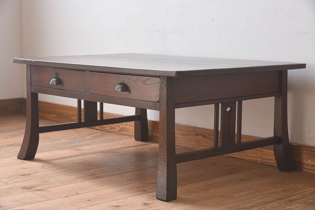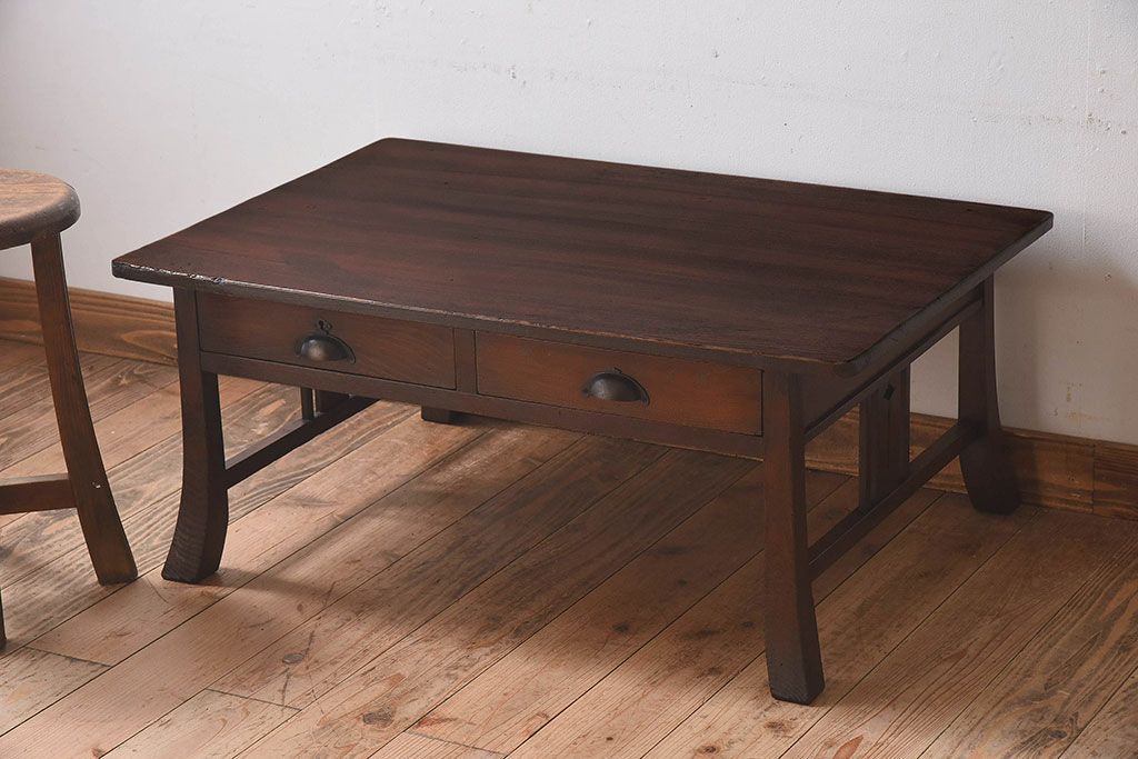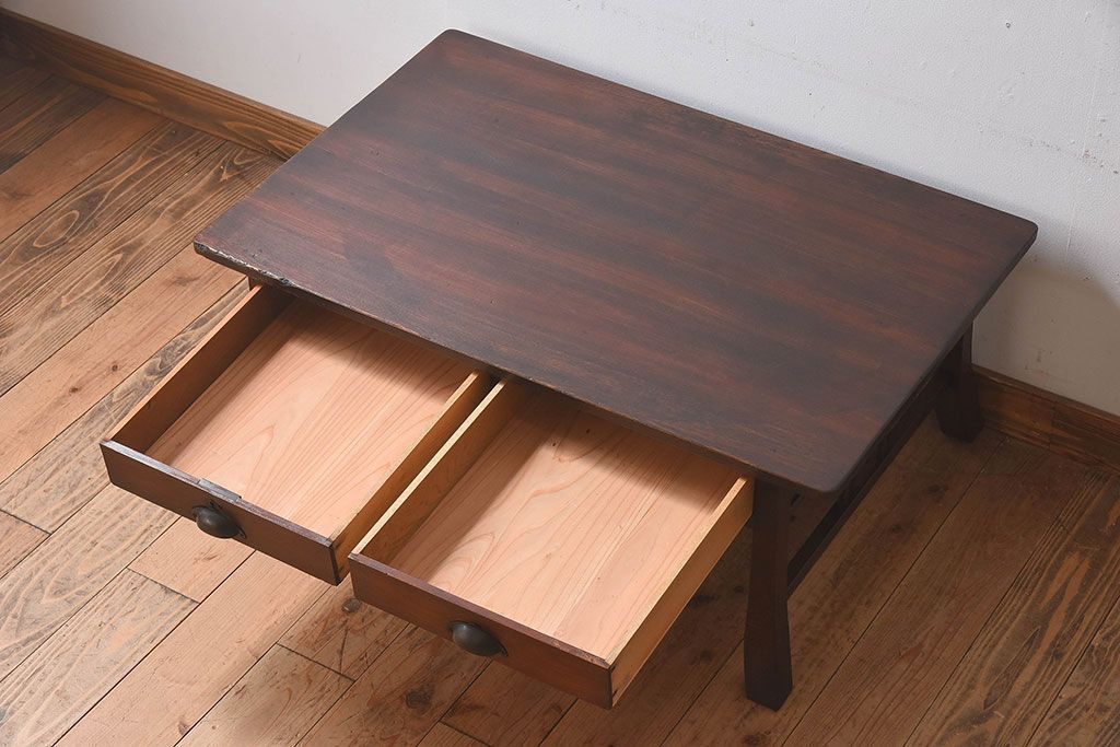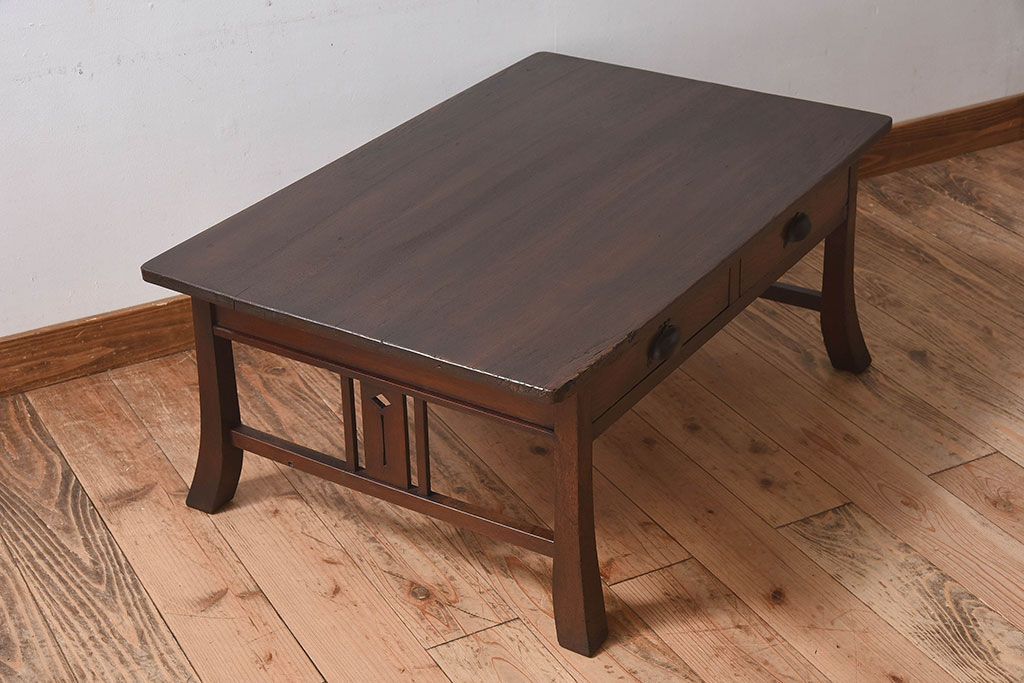 ラフジュ工房> テーブル> センターテーブル・ローテーブル > アンティーク雑貨 和製アンティーク お洒落な脚のデザインが印象的な文机(座卓、デスク、在宅ワーク、在宅用、花台、飾り台)