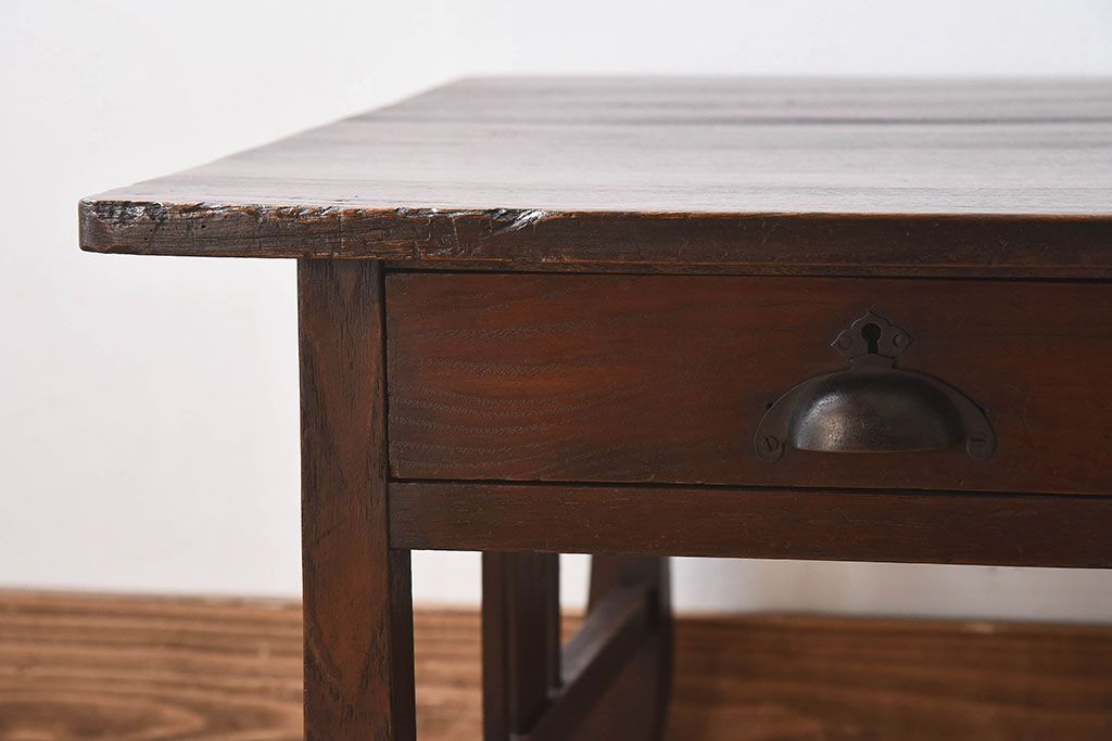 ラフジュ工房> デスク> 文机・座机 > アンティーク雑貨 和製アンティーク お洒落な脚のデザインが印象的な文机(座卓、デスク、在宅ワーク、在宅用、花台、飾り台)