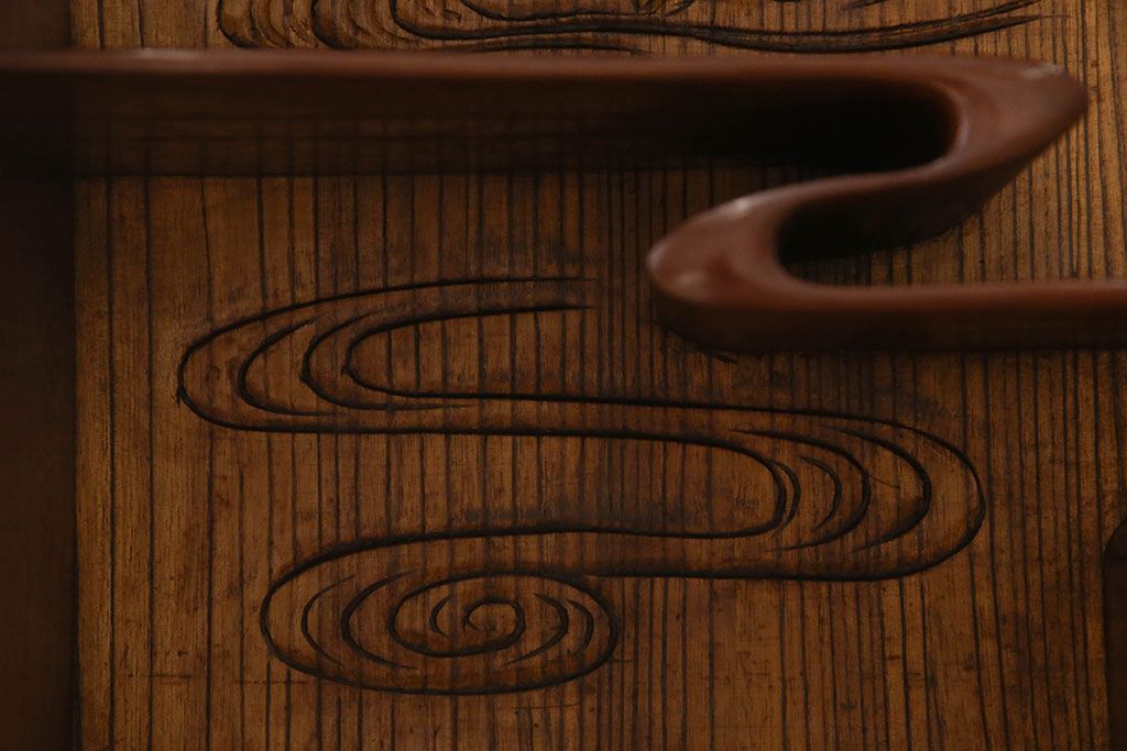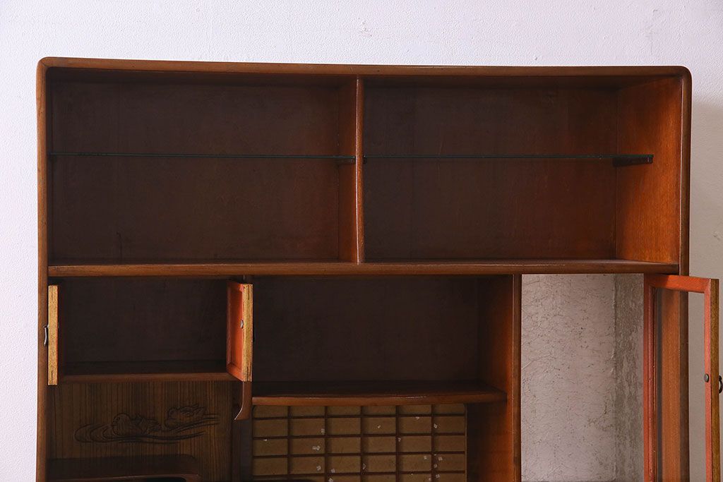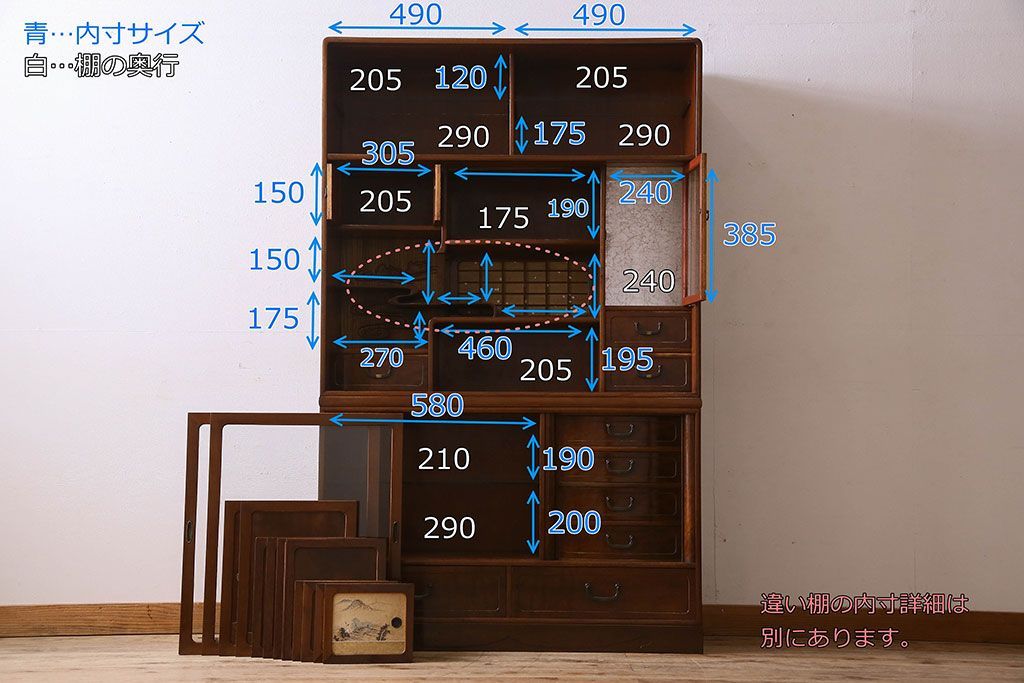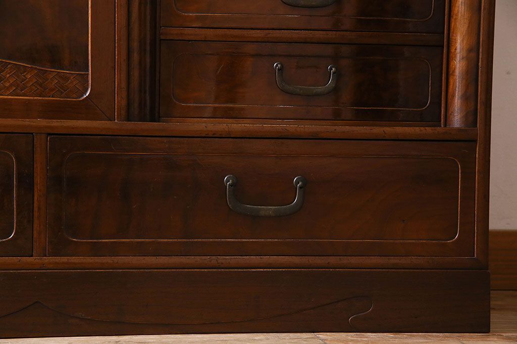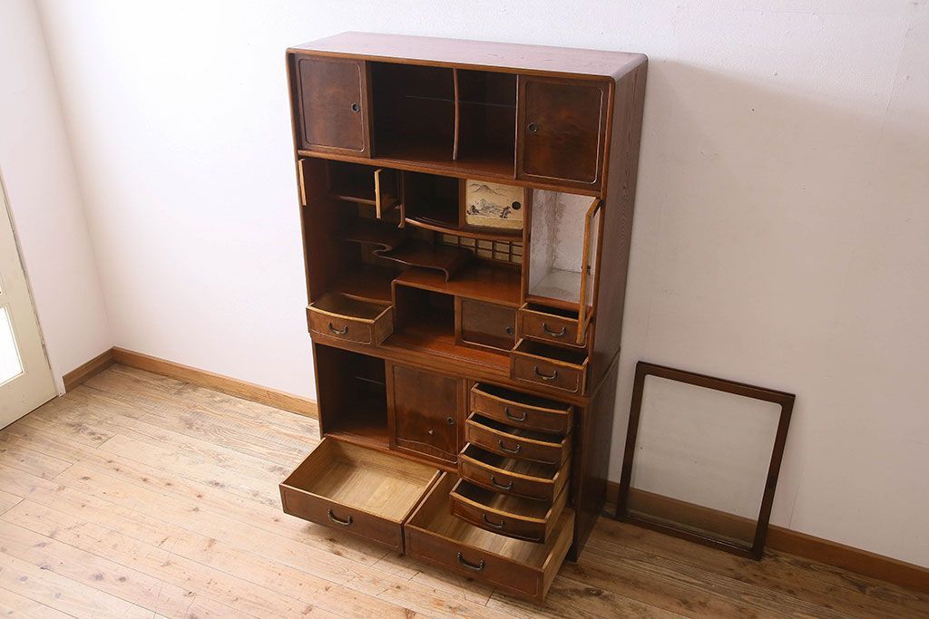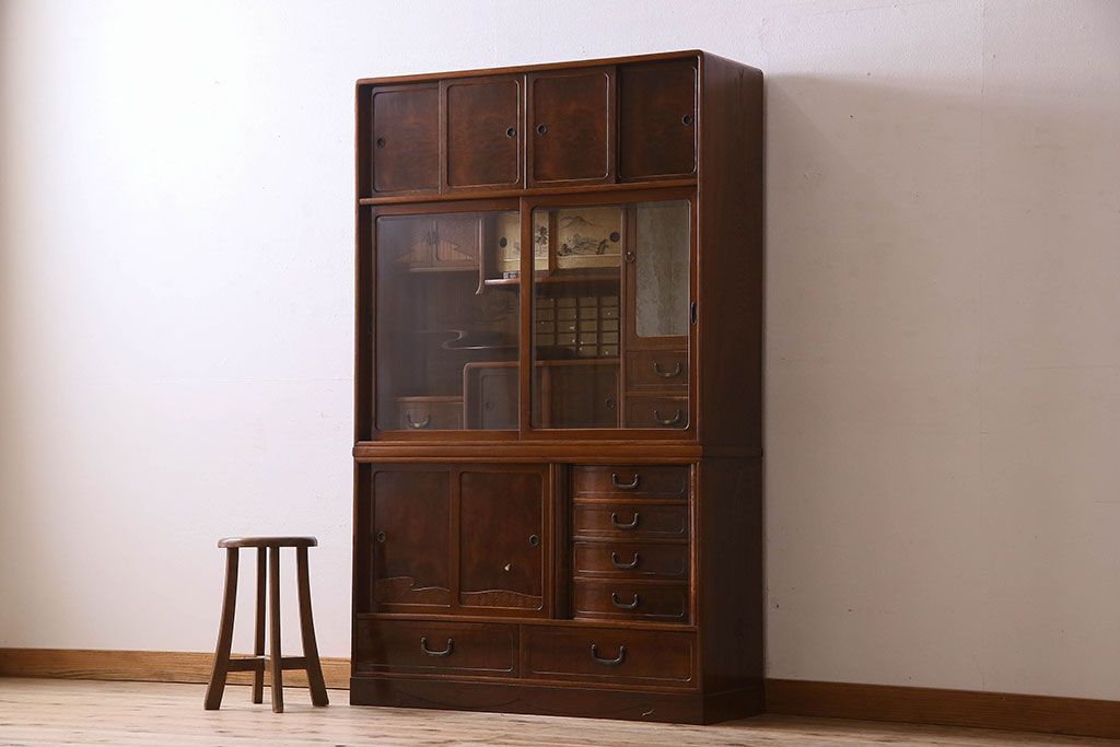 ラフジュ工房> 和箪笥> 茶箪笥・茶棚 > アンティーク家具 前面桑材 凝った作りが空間に趣深さと高級感をもたらす茶箪笥(茶棚、収納棚、食器棚)