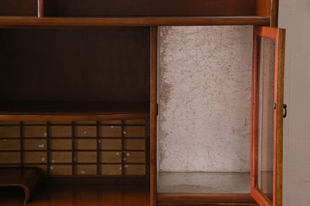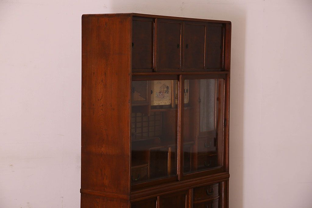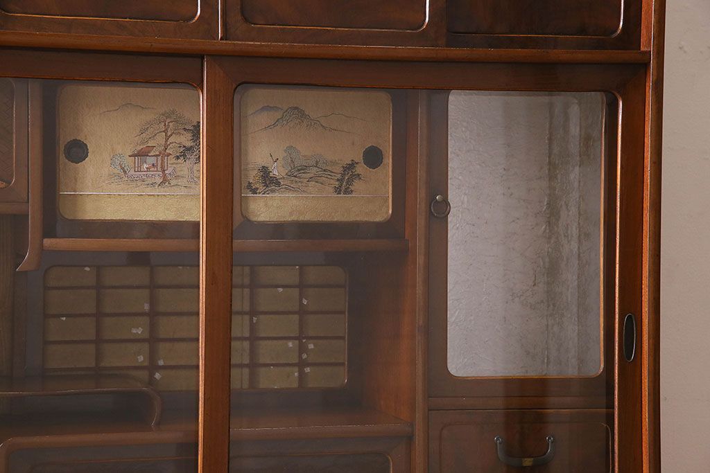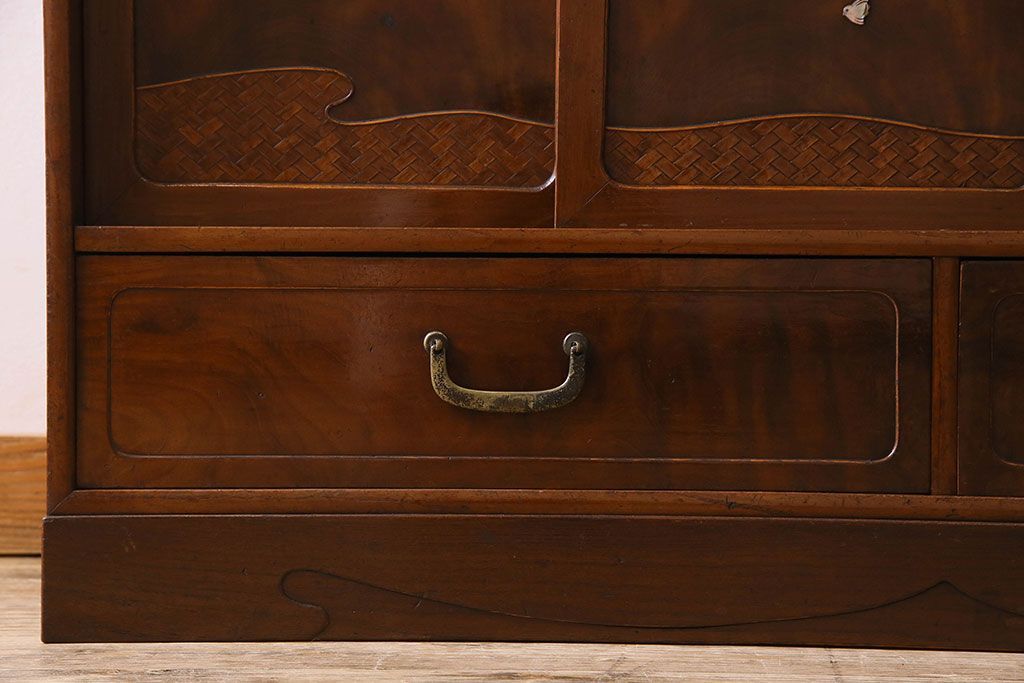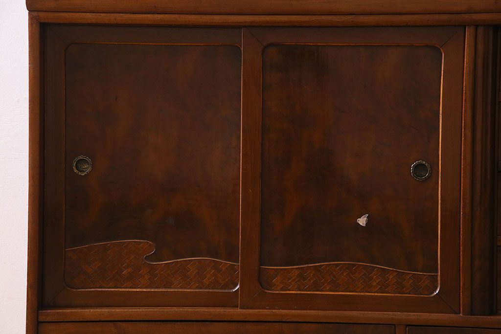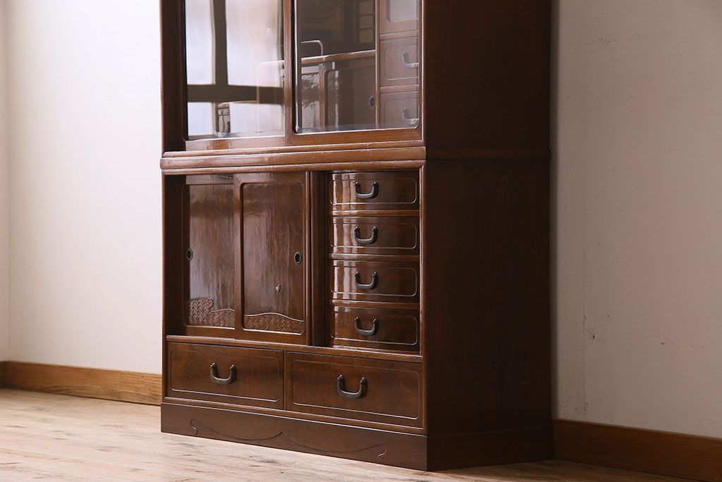 アンティーク家具 前面桑材 凝った作りが空間に趣深さと高級感をもたらす茶箪笥(茶棚、収納棚、食器棚)