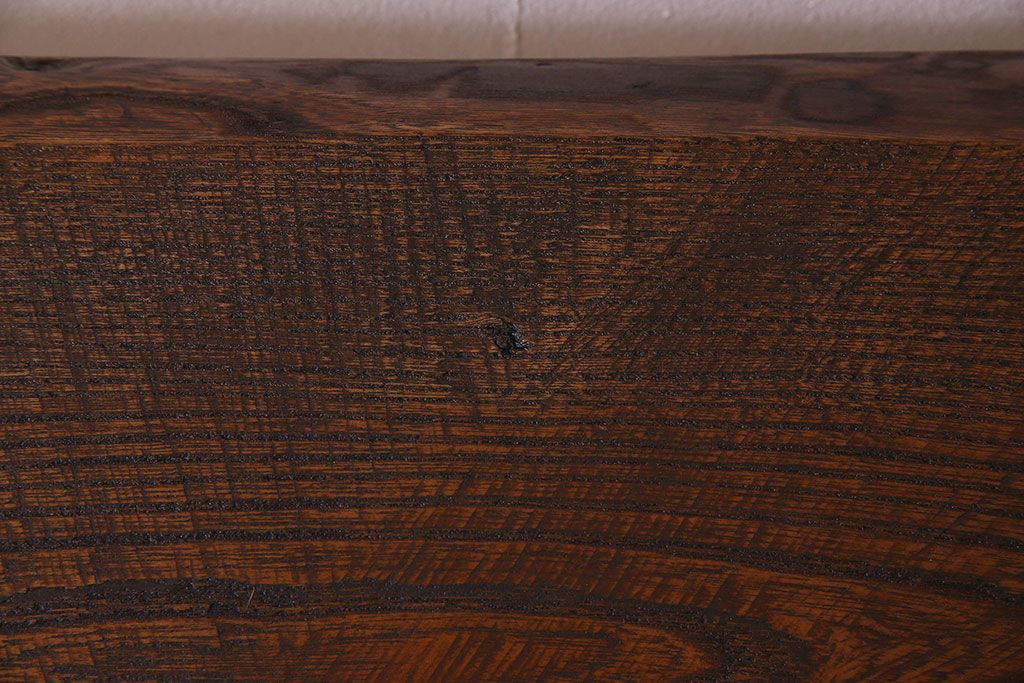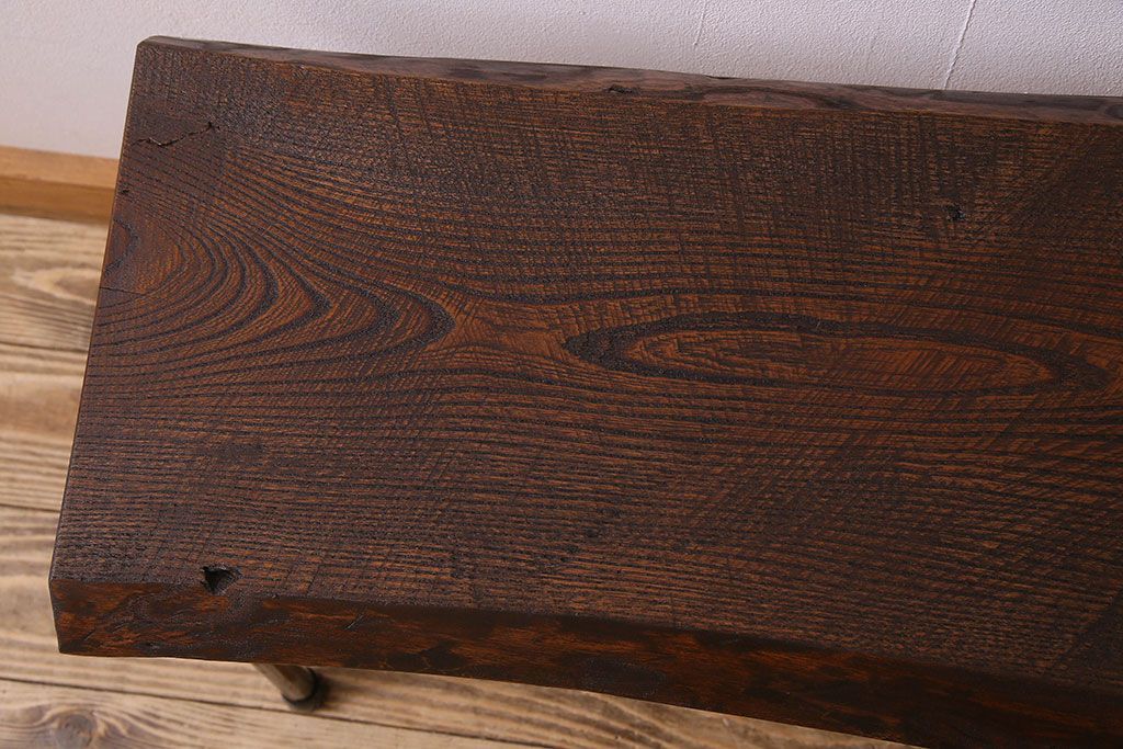 ラフジュ工房> 椅子・ベンチ> ベンチ > アンティーク家具 和製アンティーク 耳付き天板 古い欅材一枚板の鉄脚ベンチ(アイアンベンチ、長椅子、ローテーブル)