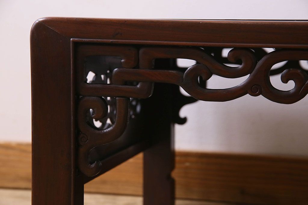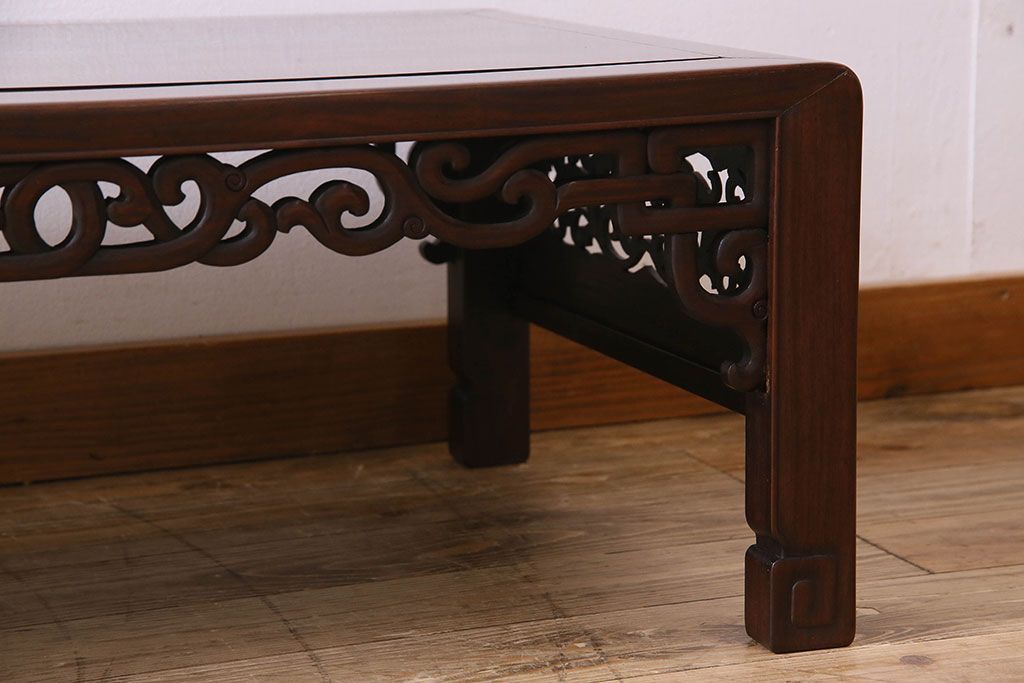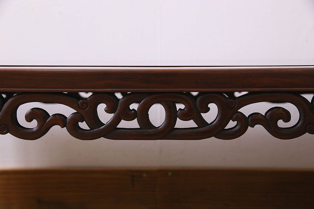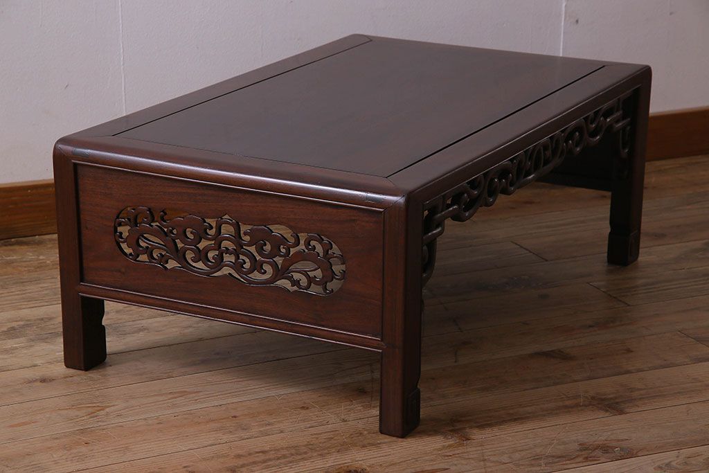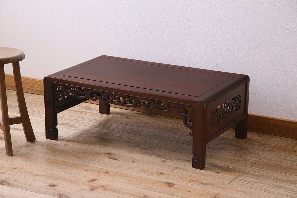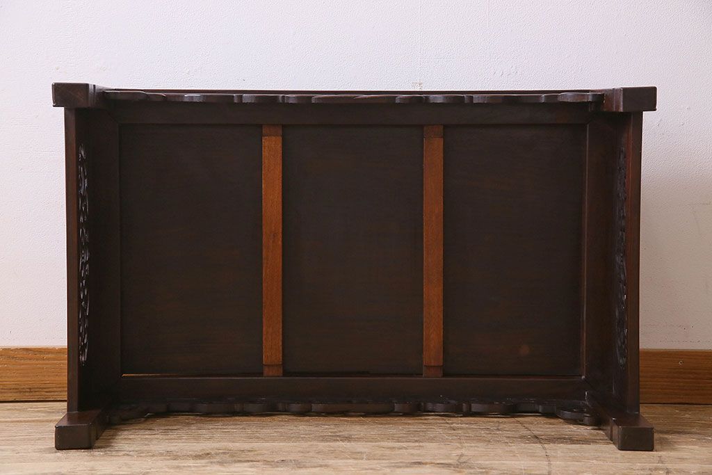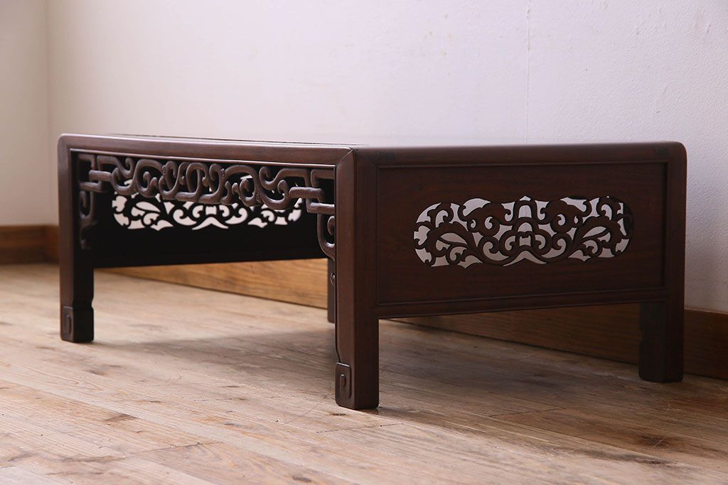 アンティーク家具 美しい透かし彫り!和製アンティーク 唐木材の文人文机(ローテーブル、座卓)