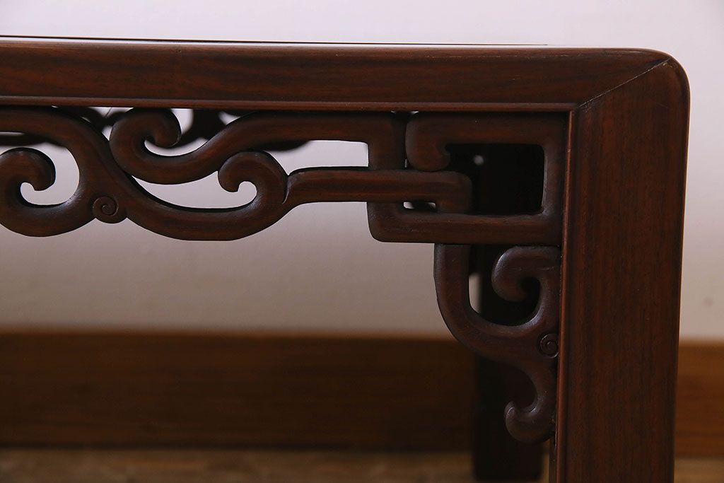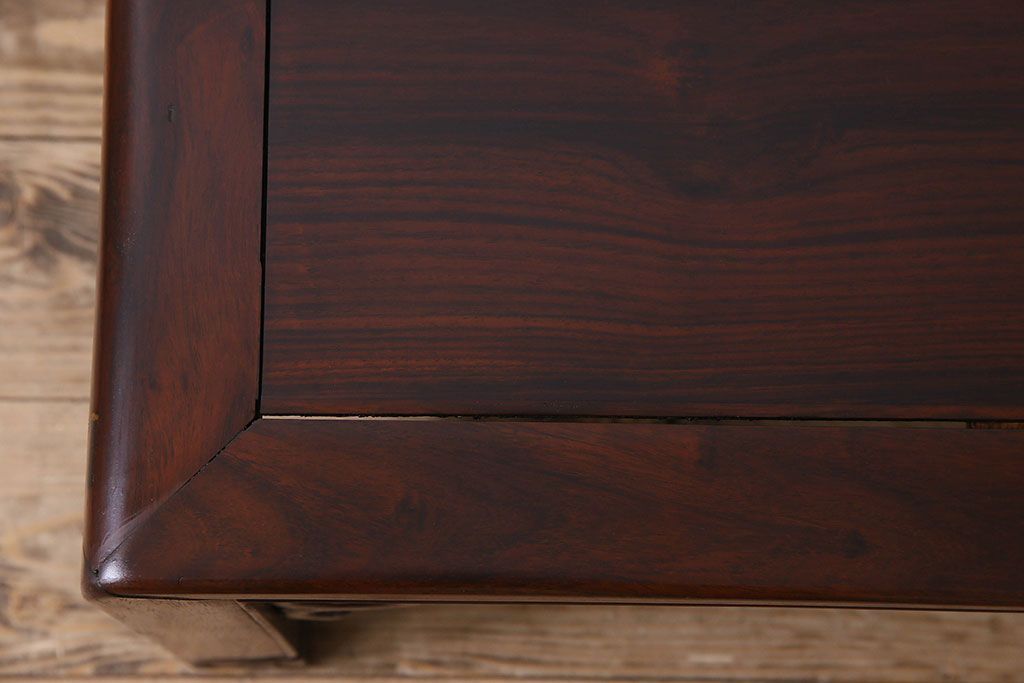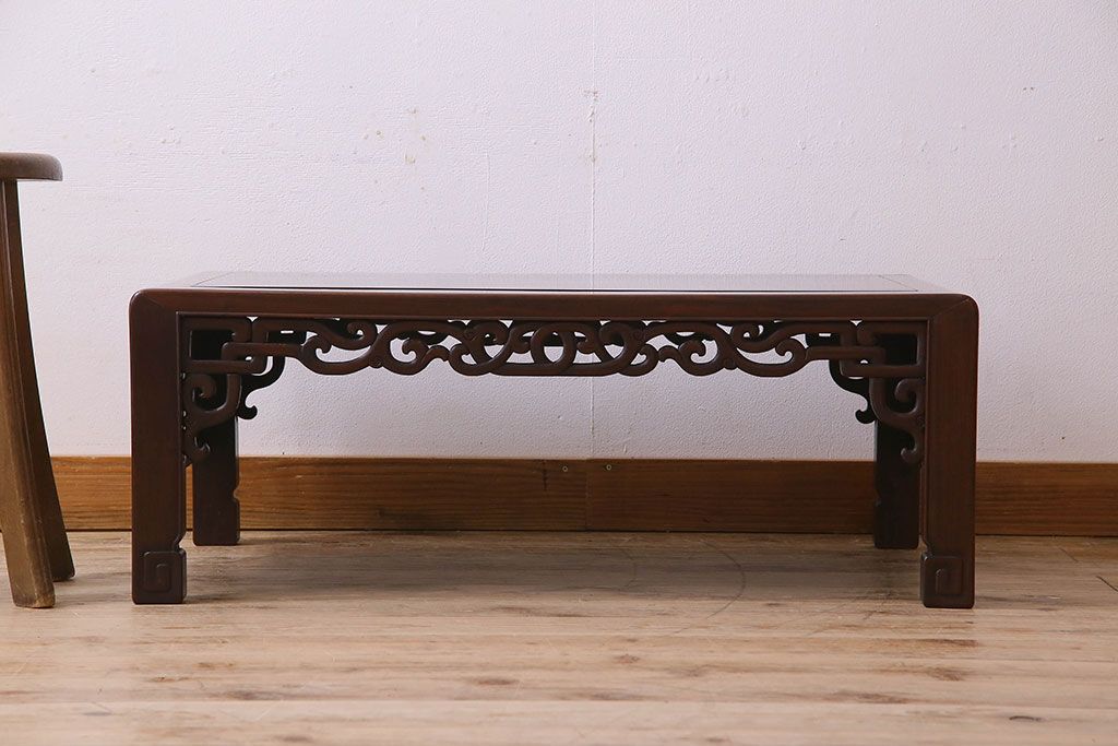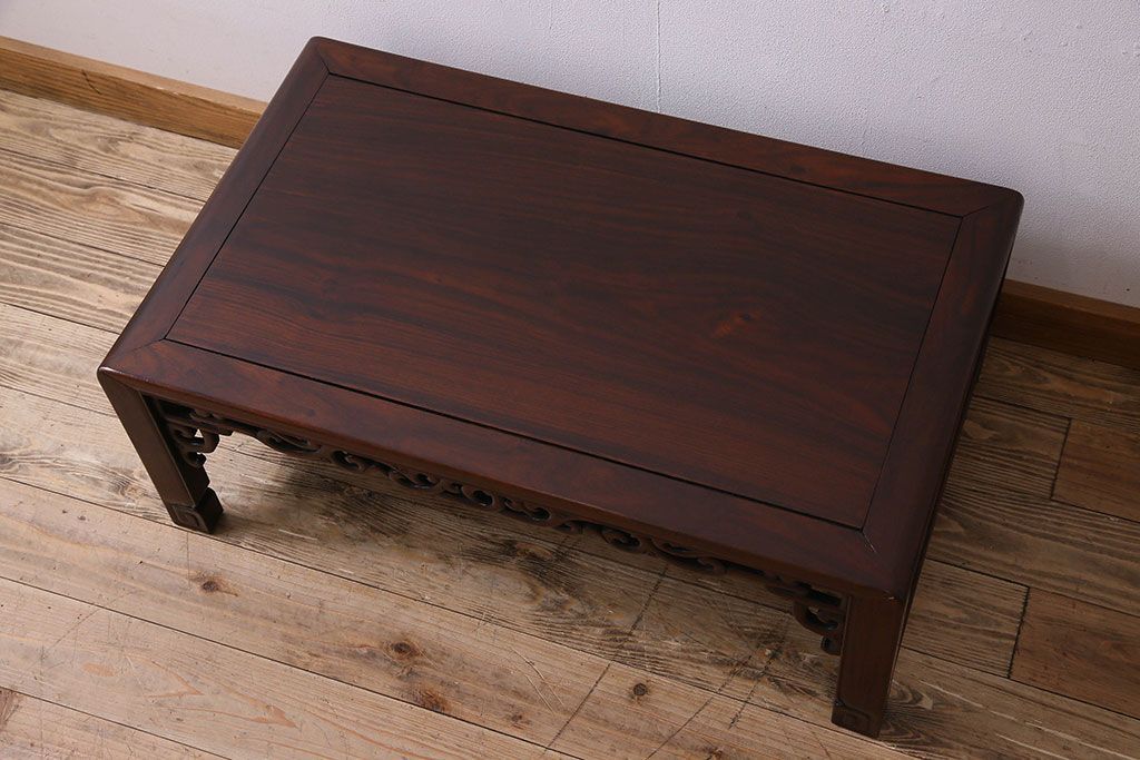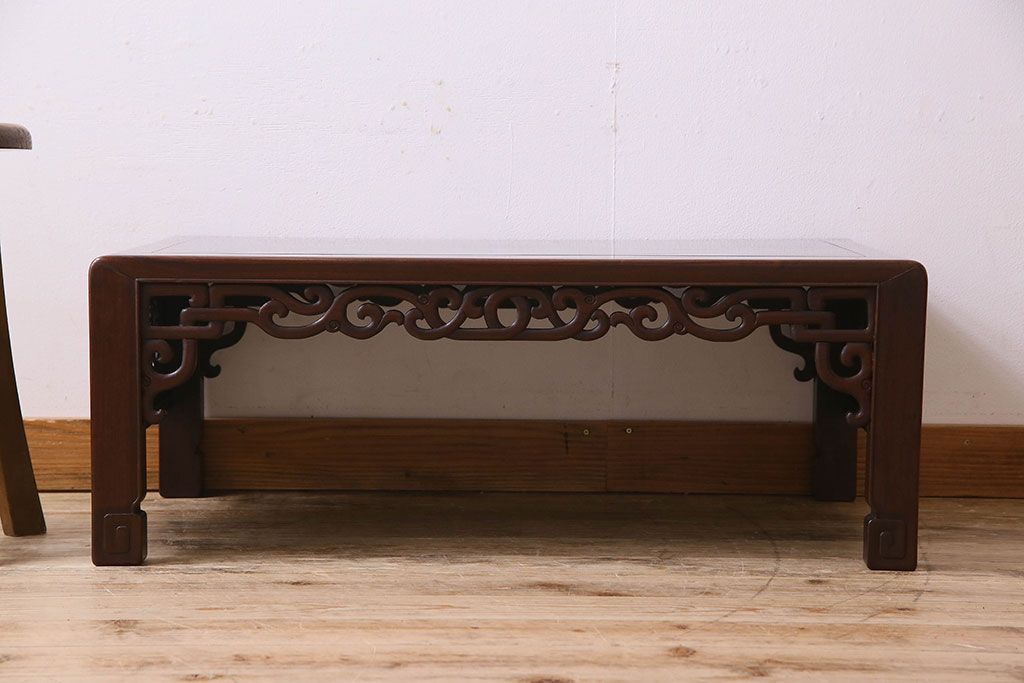 ラフジュ工房> テーブル> センターテーブル・ローテーブル > アンティーク家具 美しい透かし彫り!和製アンティーク 唐木材の文人文机(ローテーブル、座卓)
