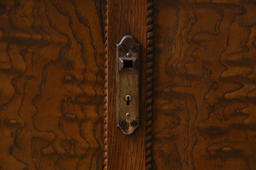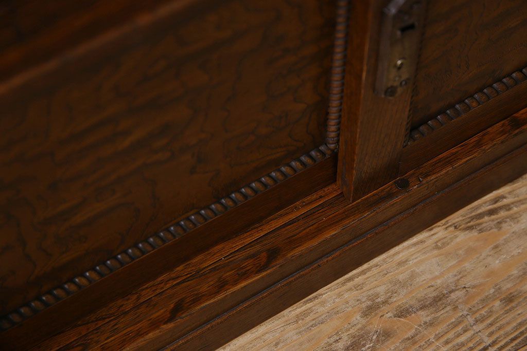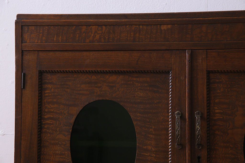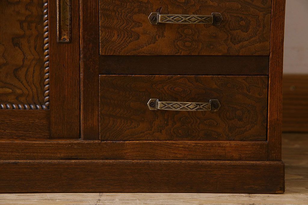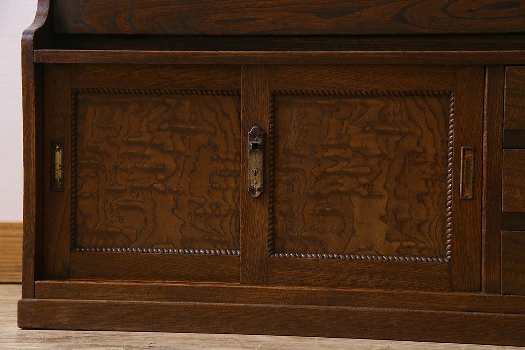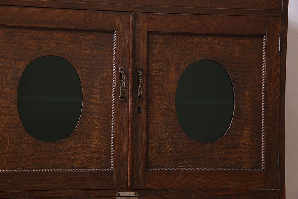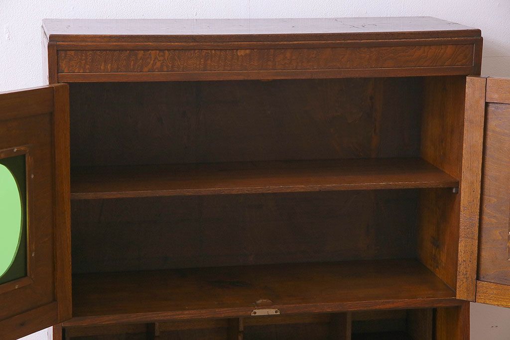 ラフジュ工房> キャビネット・戸棚> 本箱 > アンティーク家具 和製アンティーク タモ材 色ガラス入り!上質なデザインのライティングビューロー(机、在宅ワーク、在宅用デスク、収納棚)
