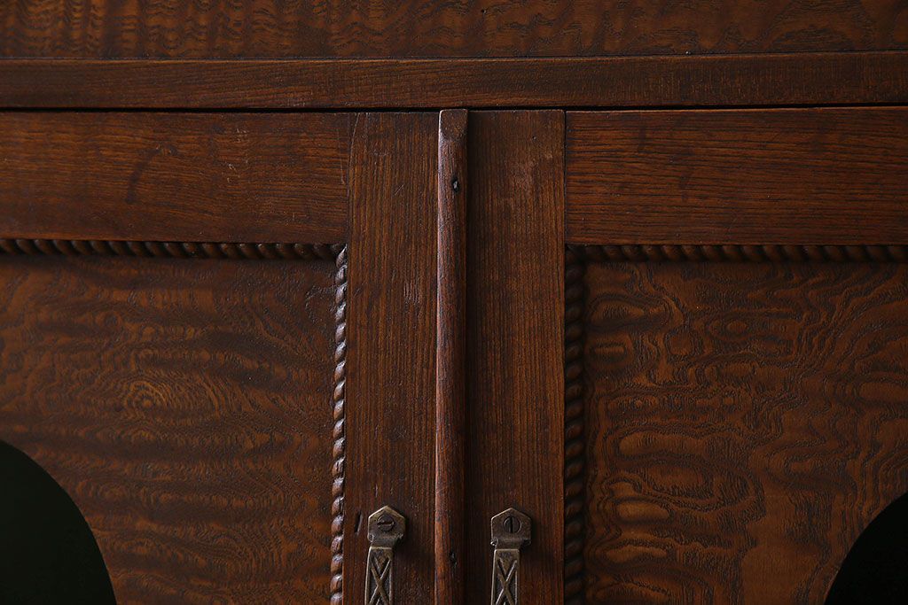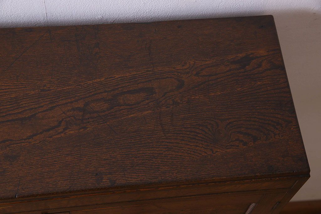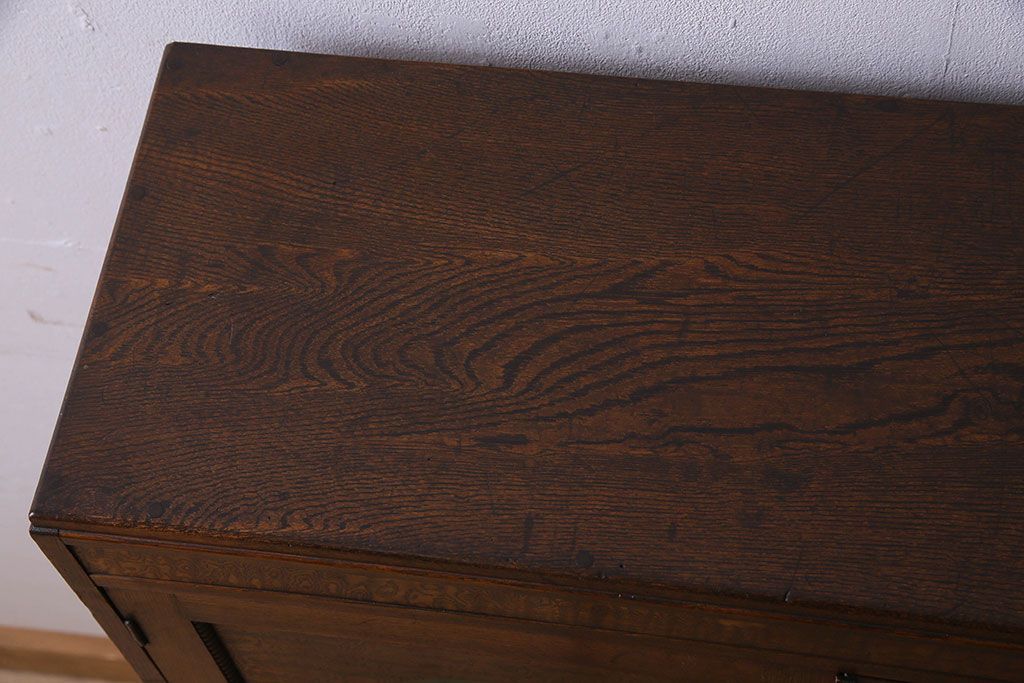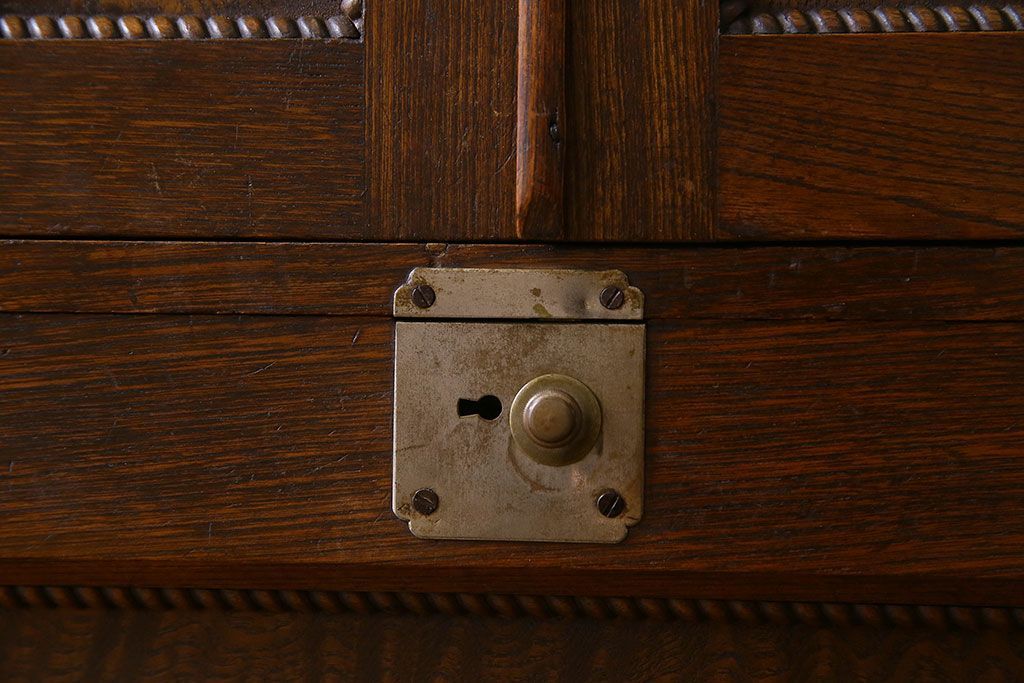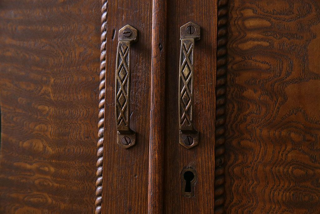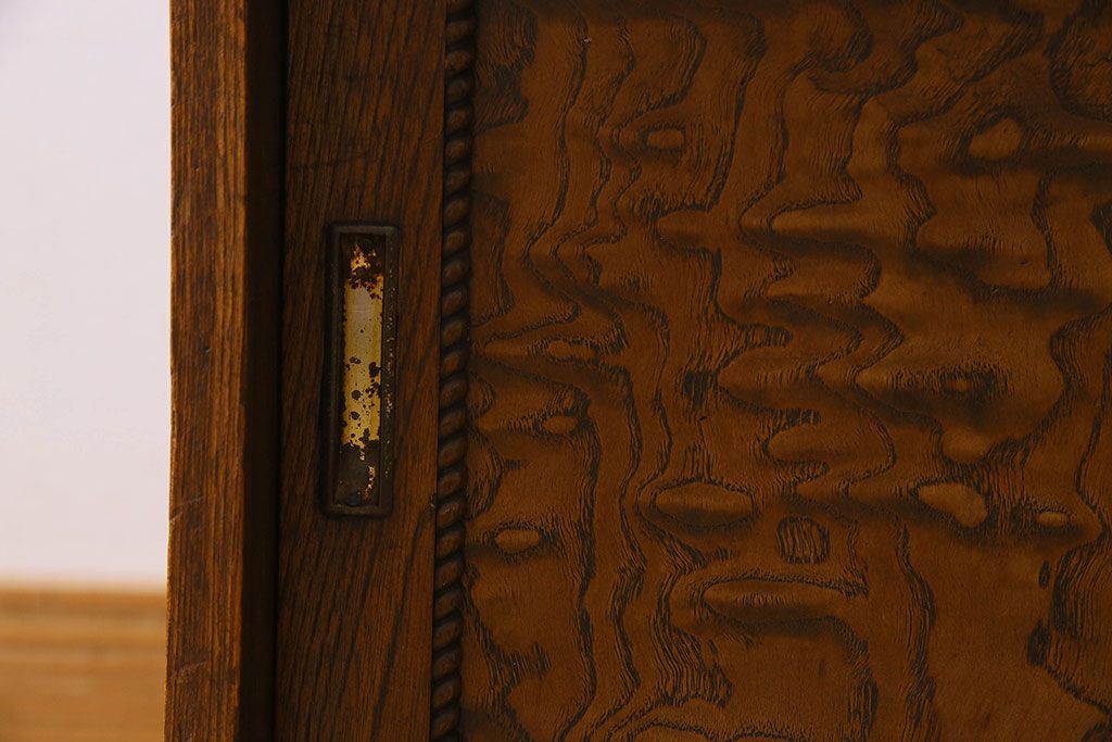 ラフジュ工房> キャビネット・戸棚> 本箱 > アンティーク家具 和製アンティーク タモ材 色ガラス入り!上質なデザインのライティングビューロー(机、在宅ワーク、在宅用デスク、収納棚)