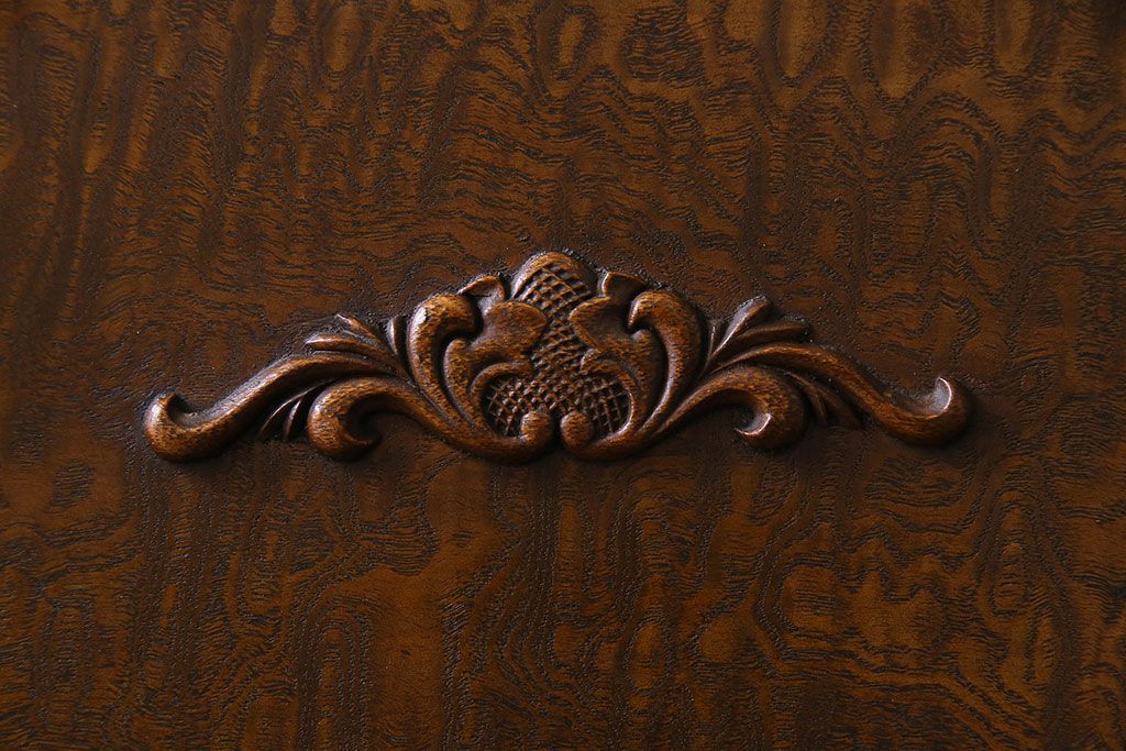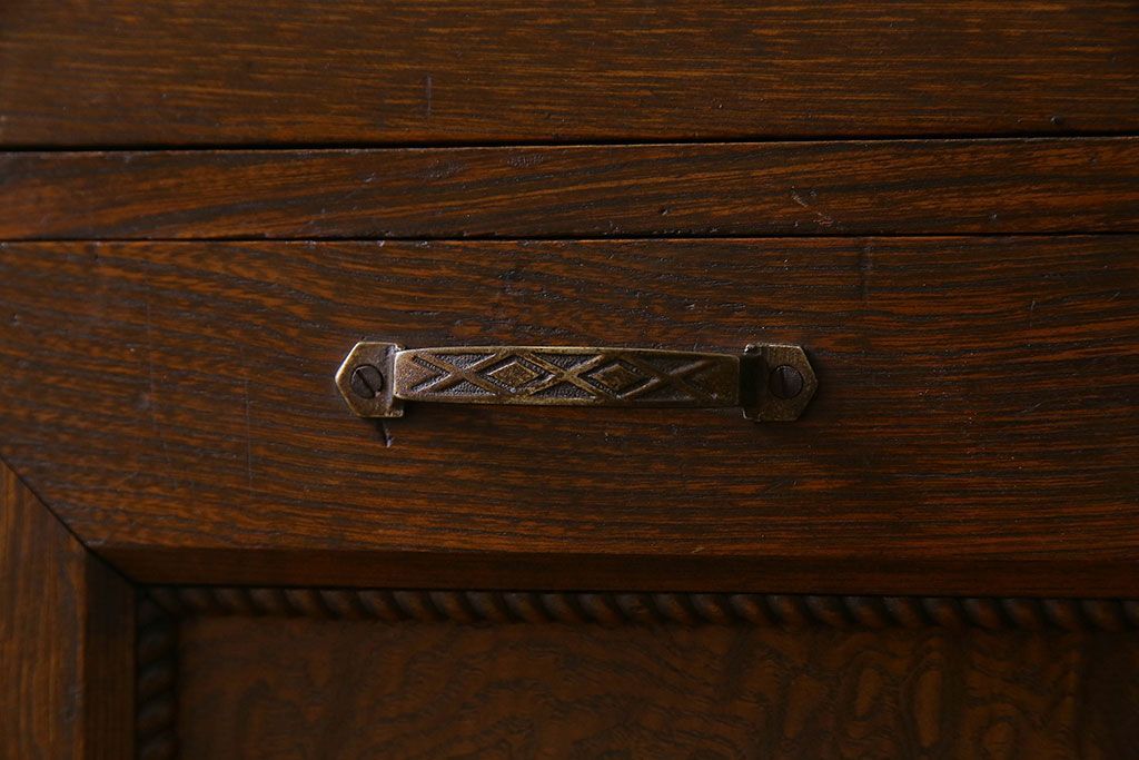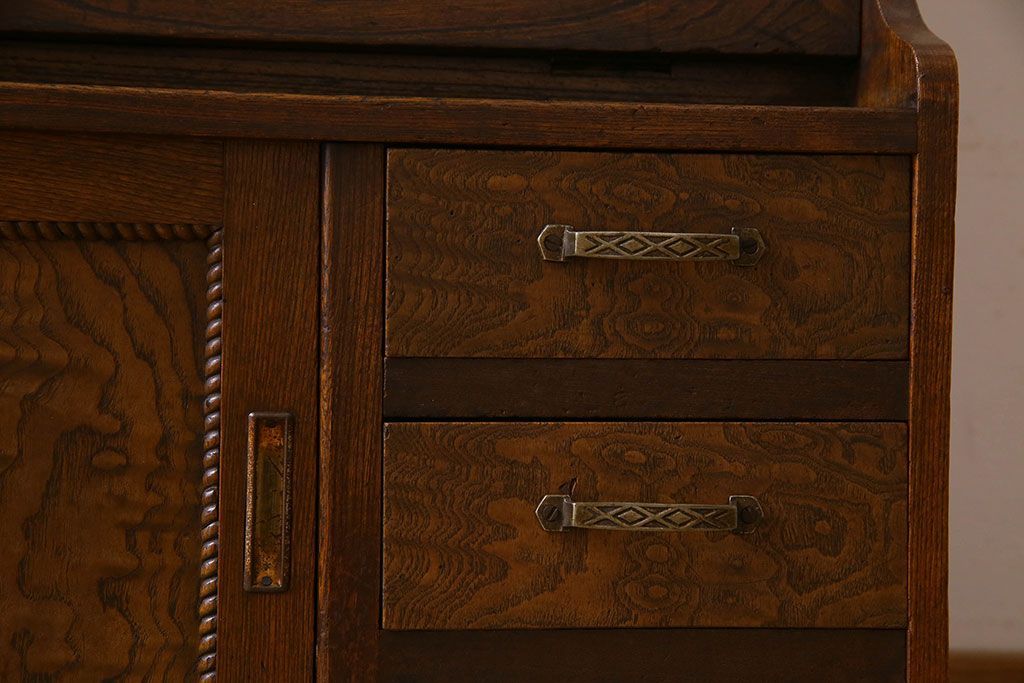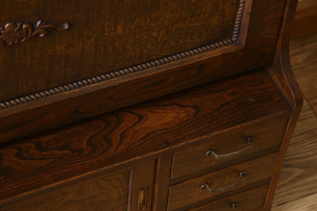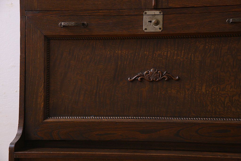 ラフジュ工房> デスク> ライティングビューロー・簿記机 > アンティーク家具 和製アンティーク タモ材 色ガラス入り!上質なデザインのライティングビューロー(机、在宅ワーク、在宅用デスク、収納棚)
