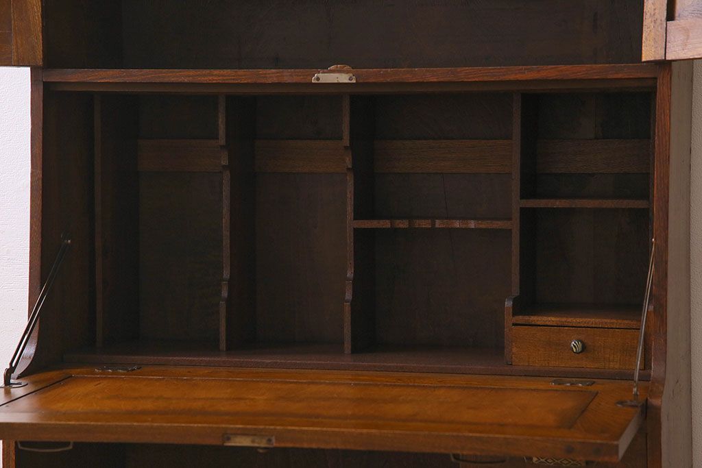 アンティーク家具 和製アンティーク タモ材 色ガラス入り!上質なデザインのライティングビューロー(机、在宅ワーク、在宅用デスク、収納棚)