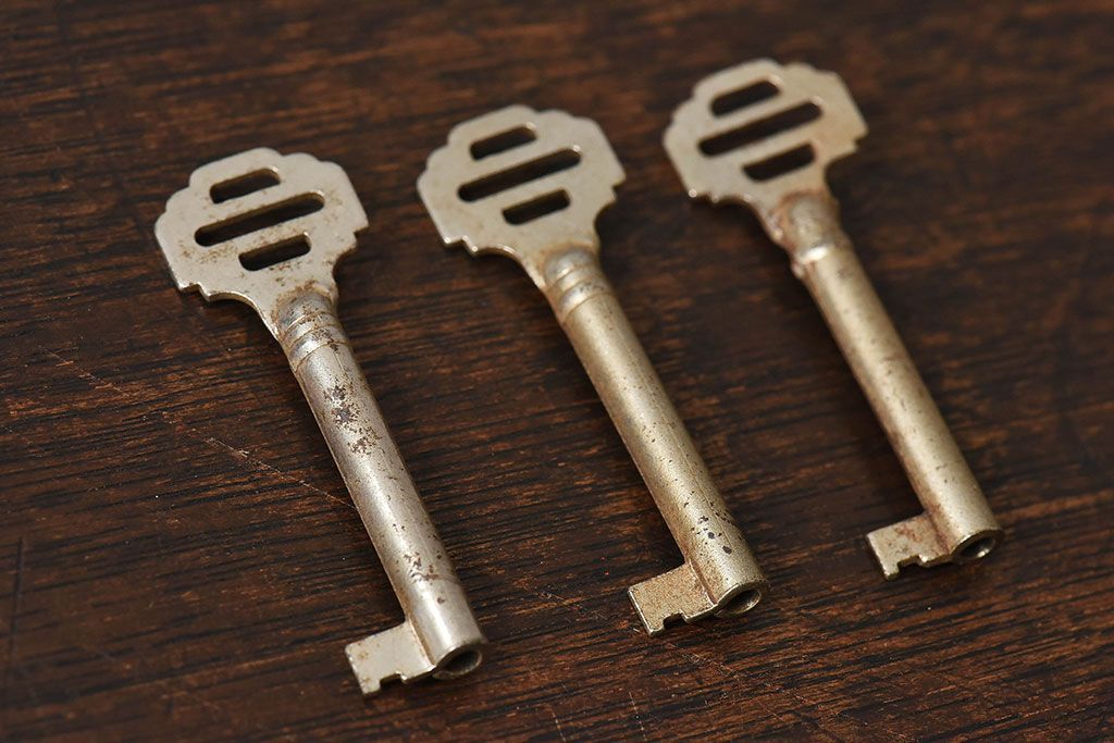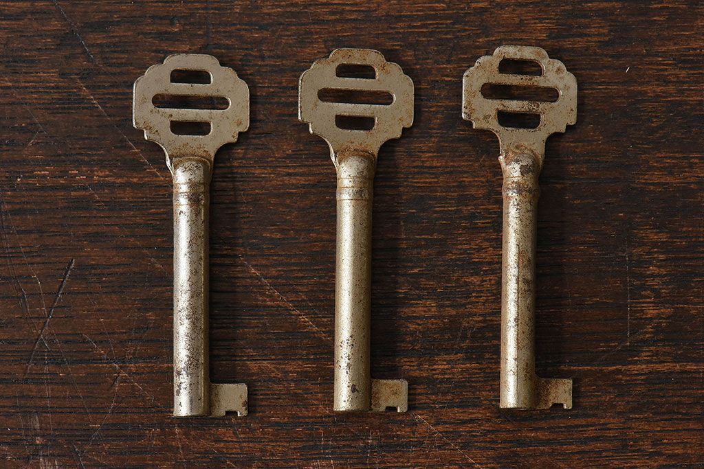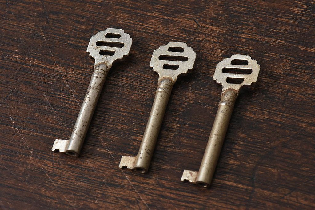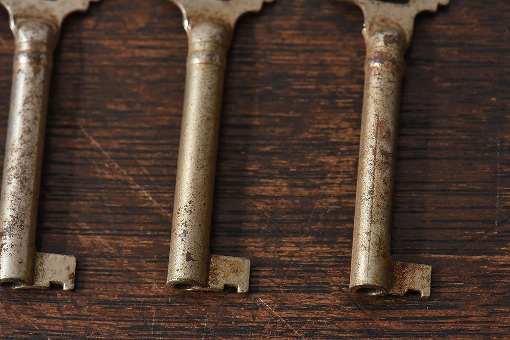 アンティーク雑貨 イギリスアンティーク シャビーな質感が味わい深いキー(鍵、カギ)3本セット