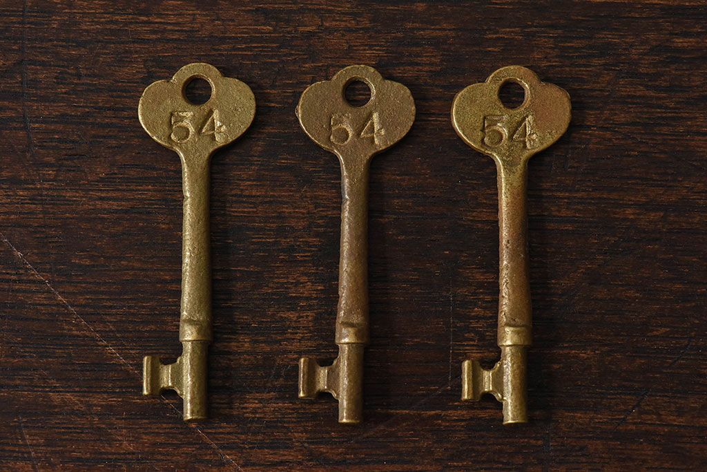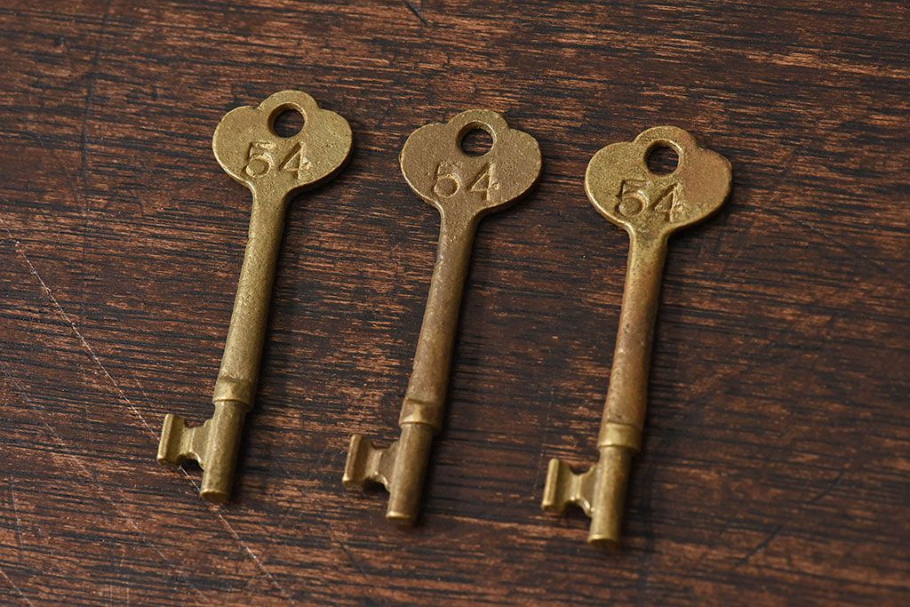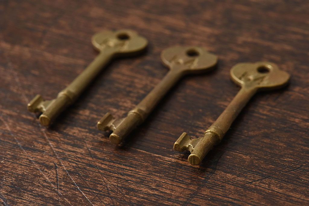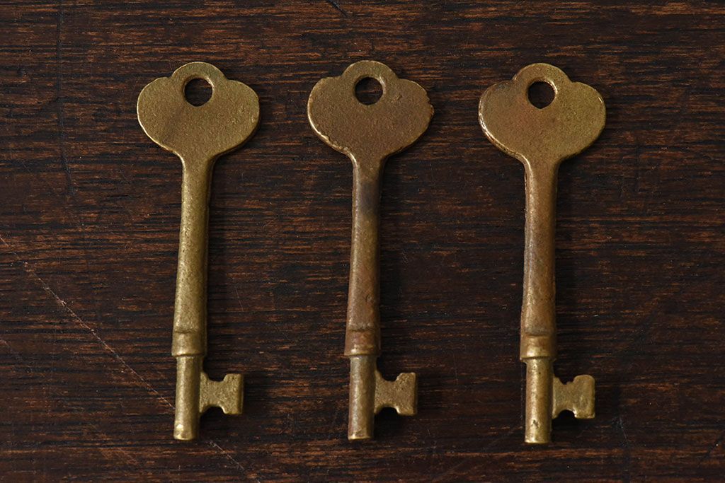 アンティーク雑貨 イギリスアンティーク シャビーな質感が味わい深いキー(鍵、カギ)3本セット(1)