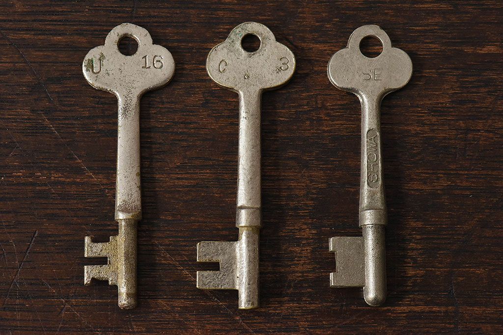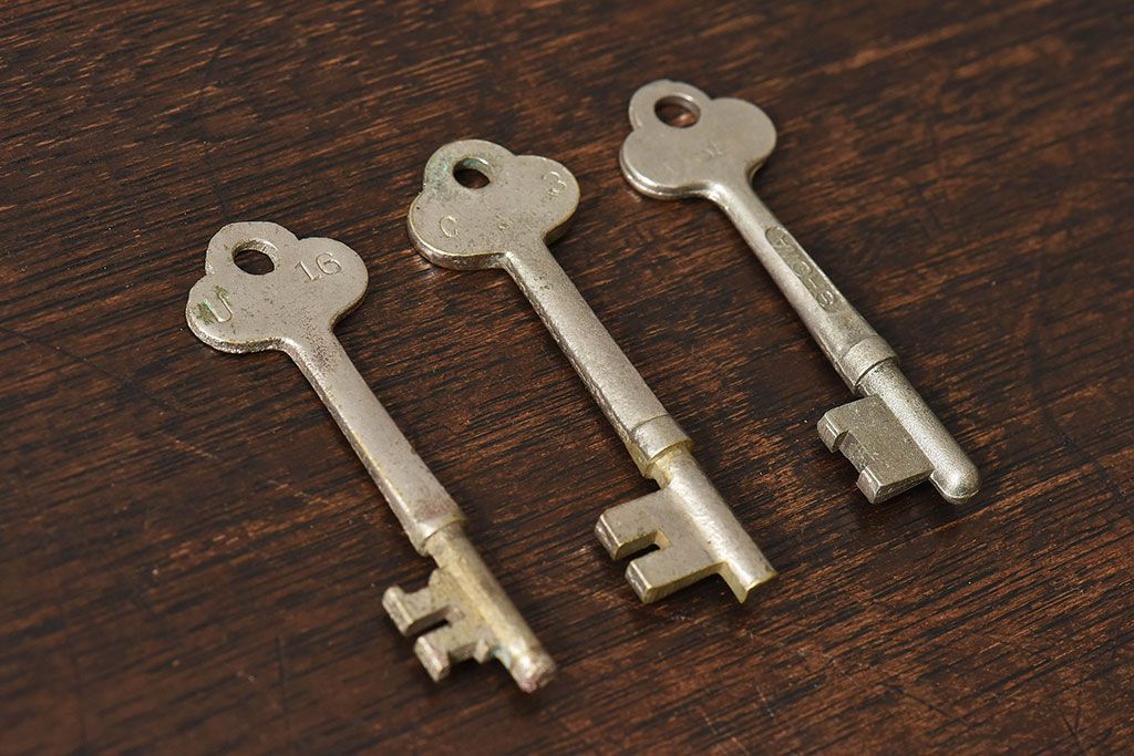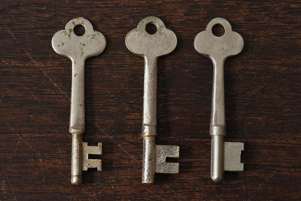 アンティーク雑貨 イギリスアンティーク シャビーな質感が味わい深いキー(鍵、カギ)3本セット(2)