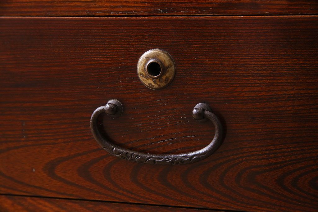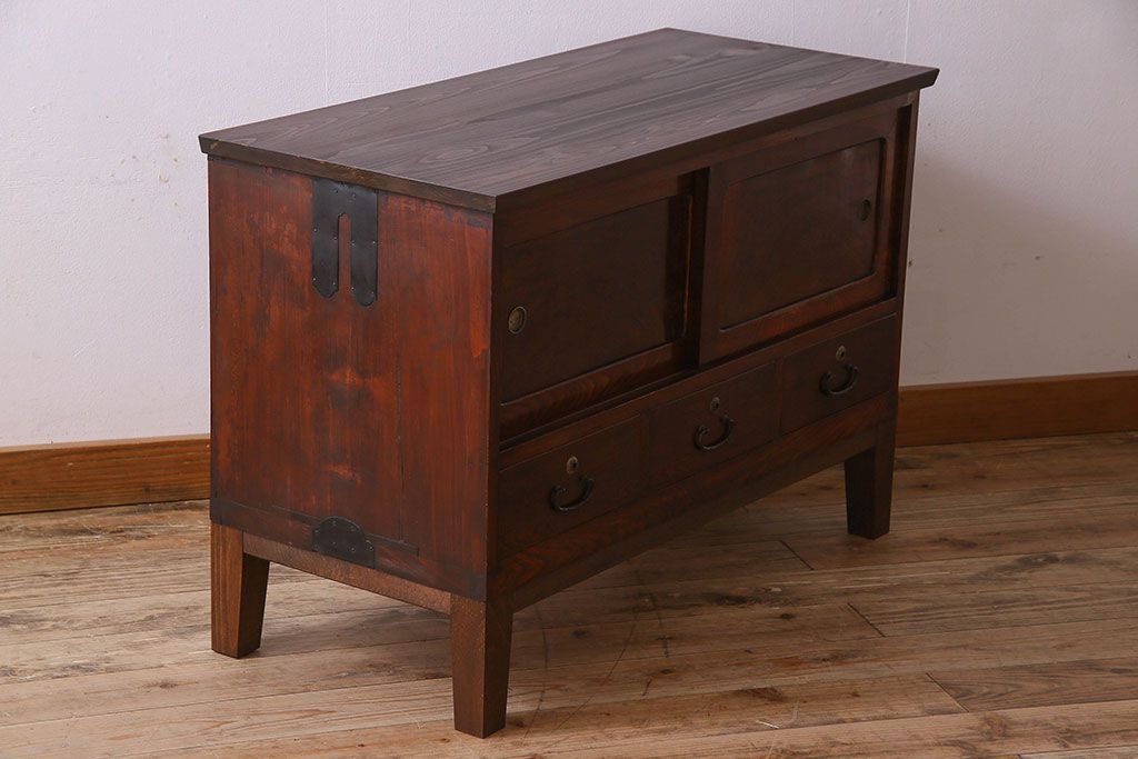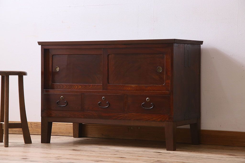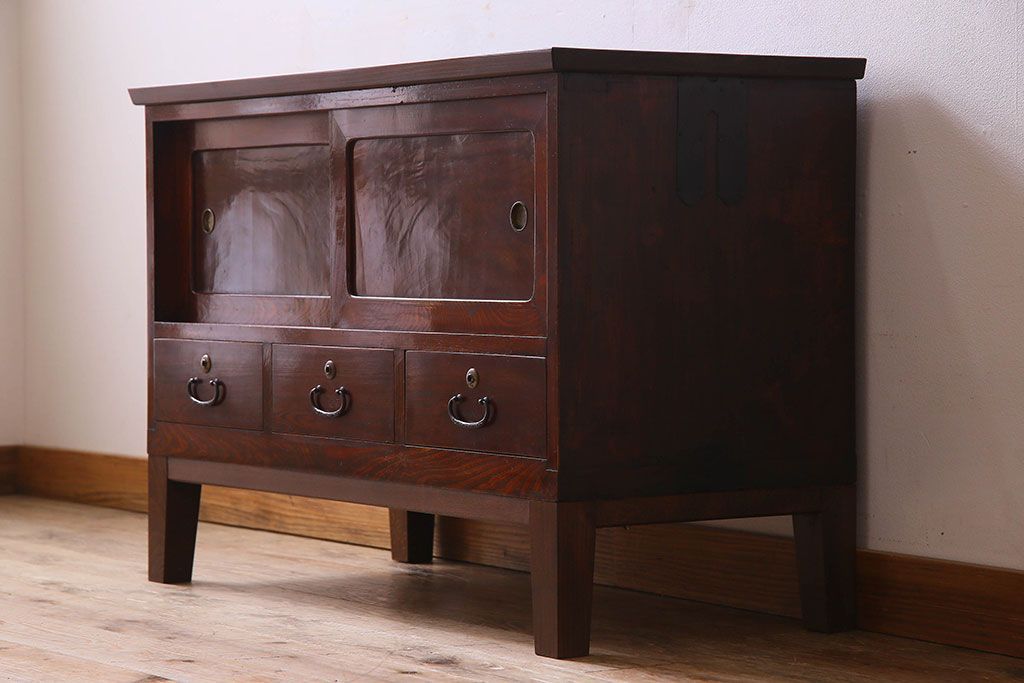 ラフジュ工房> 和箪笥 > アンティーク家具 前面欅材!漆塗りが美しい時代箪笥ローボード(収納棚、戸棚)