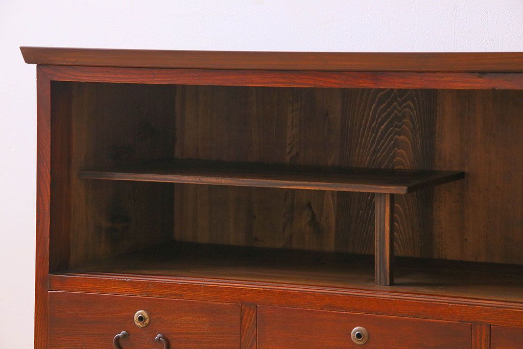 ラフジュ工房> 和箪笥> 茶箪笥・茶棚 > アンティーク家具 前面欅材!漆塗りが美しい時代箪笥ローボード(収納棚、戸棚)