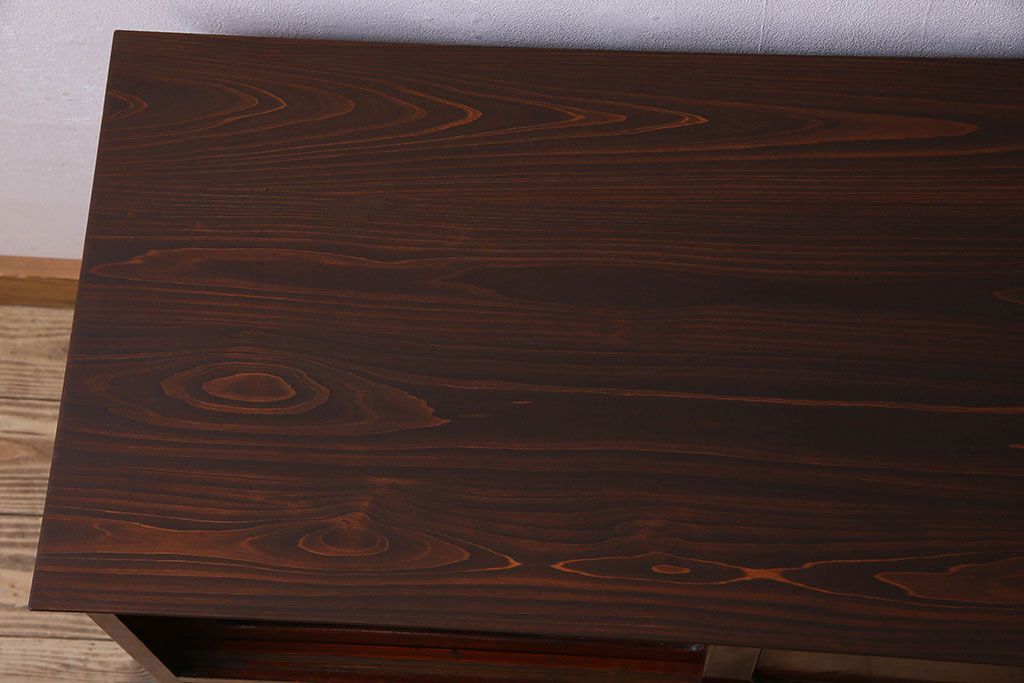 ラフジュ工房> キャビネット・戸棚> テレビ台・ローボード > アンティーク家具 前面欅材!漆塗りが美しい時代箪笥ローボード(収納棚、戸棚)