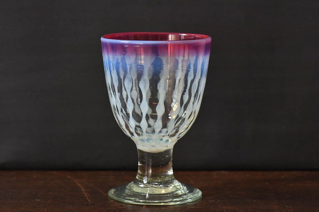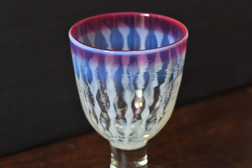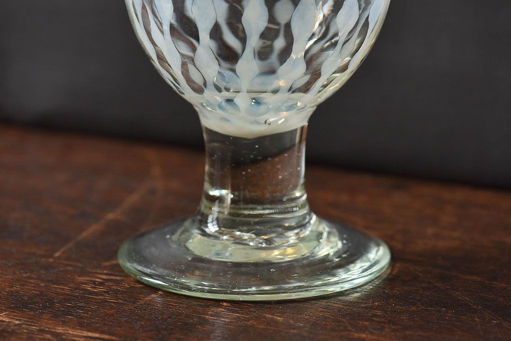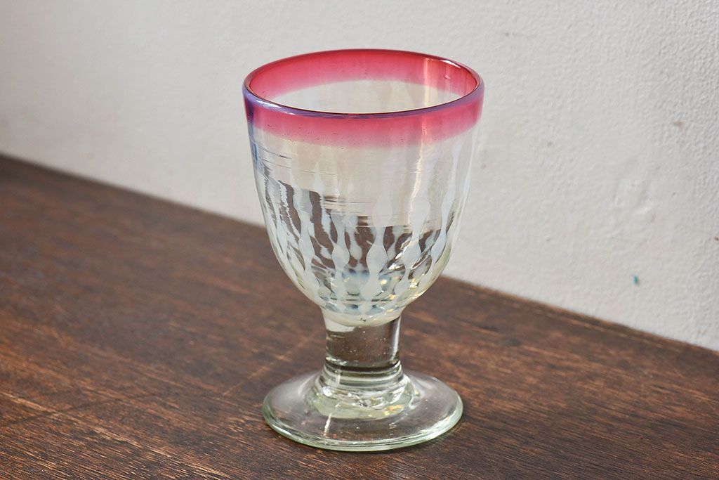 アンティーク雑貨 古民具・骨董 和ガラス 乳白色 赤縁玉垂れ文なつめ形氷コップ