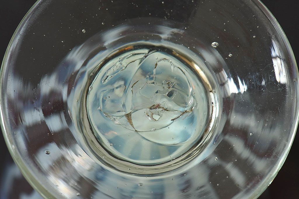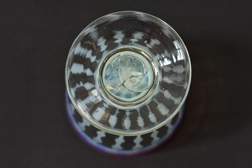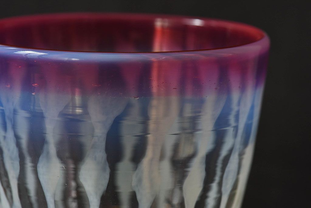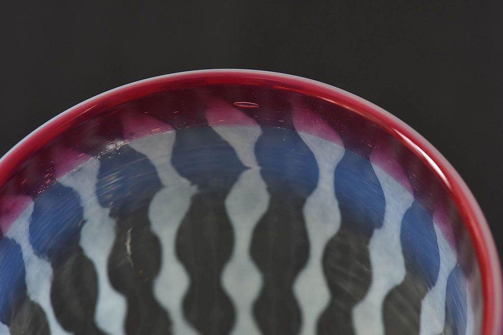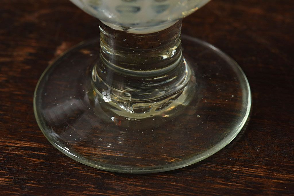 アンティーク雑貨 古民具・骨董 和ガラス 乳白色 赤縁玉垂れ文なつめ形氷コップ
