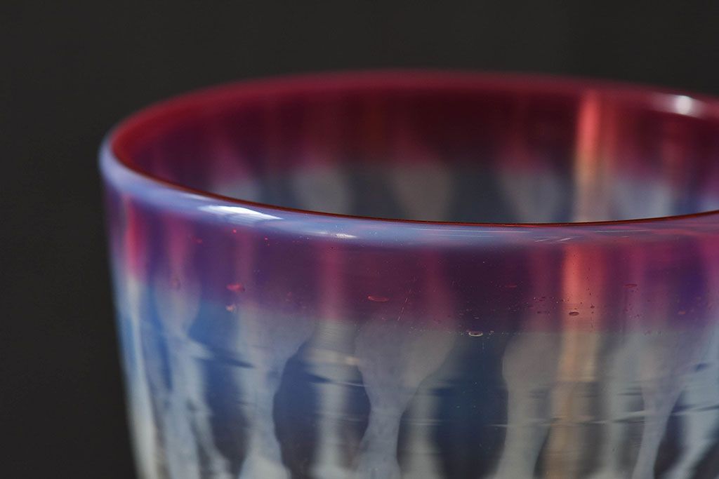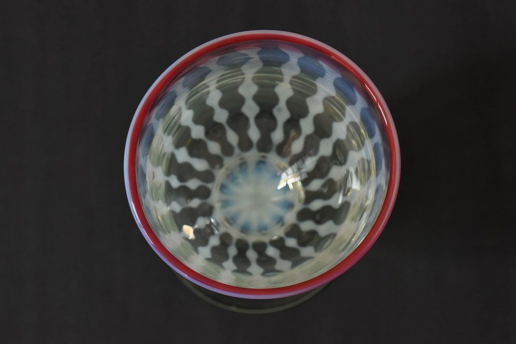 ラフジュ工房> 和食器・茶道具 > アンティーク雑貨 古民具・骨董 和ガラス 乳白色 赤縁玉垂れ文なつめ形氷コップ