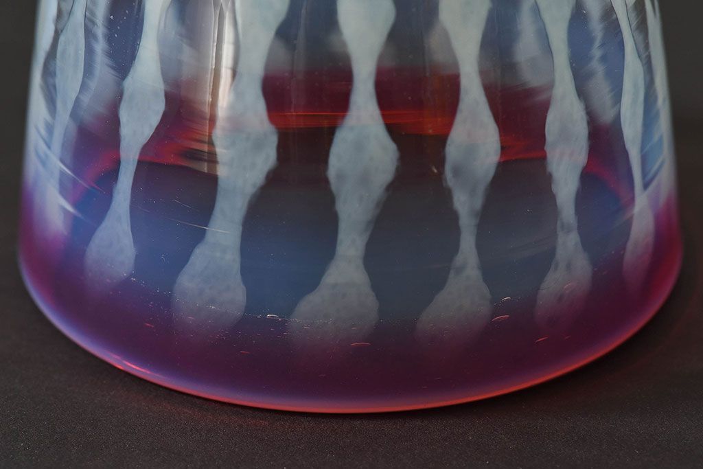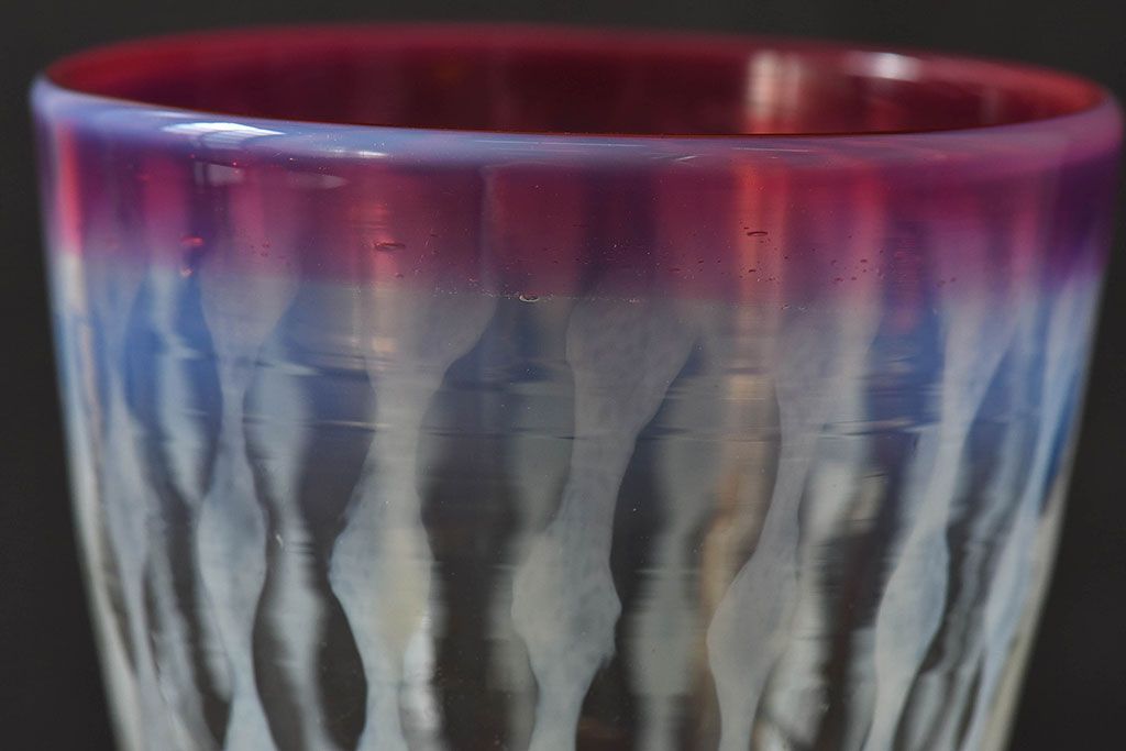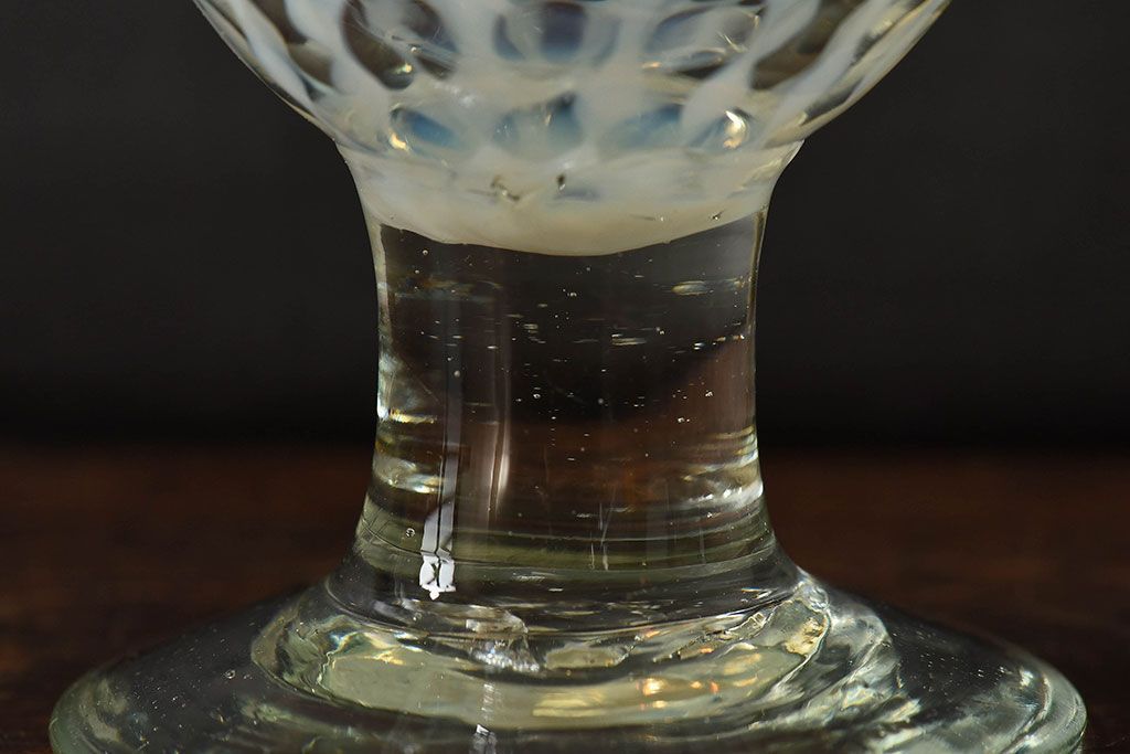 ラフジュ工房> 骨董・美術品> 骨董-ガラス食器 > アンティーク雑貨 古民具・骨董 和ガラス 乳白色 赤縁玉垂れ文なつめ形氷コップ