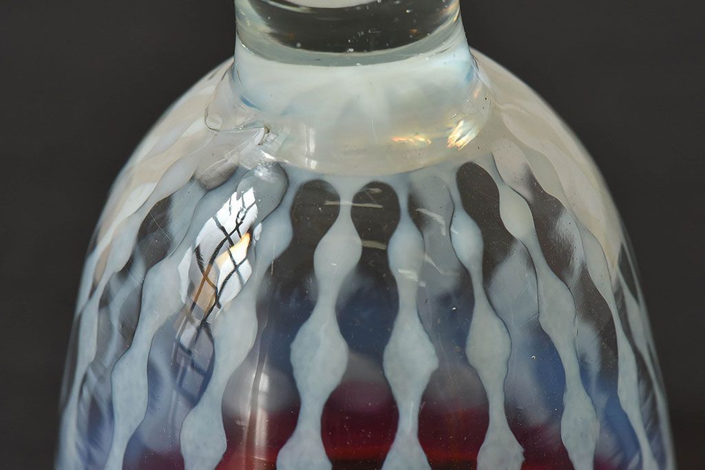 ラフジュ工房> 骨董・美術品 > アンティーク雑貨 古民具・骨董 和ガラス 乳白色 赤縁玉垂れ文なつめ形氷コップ