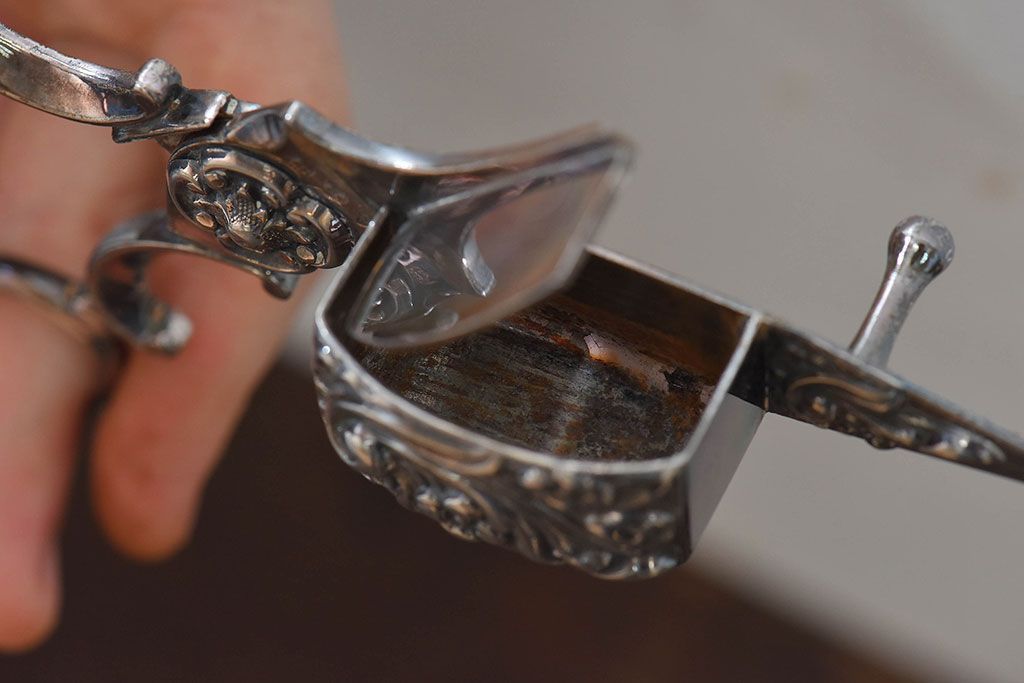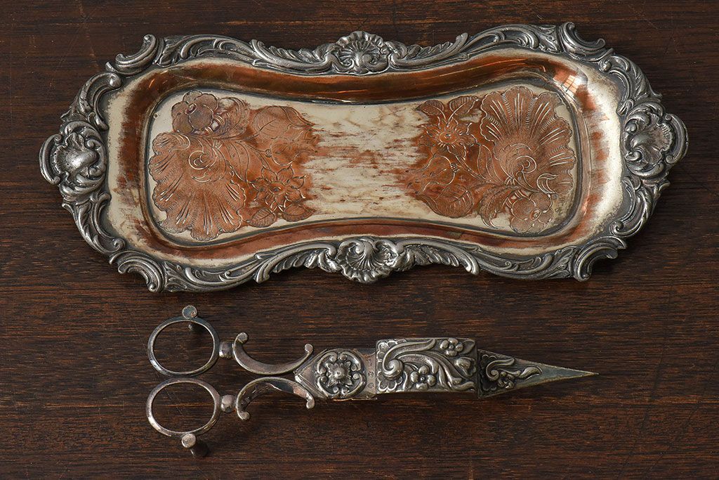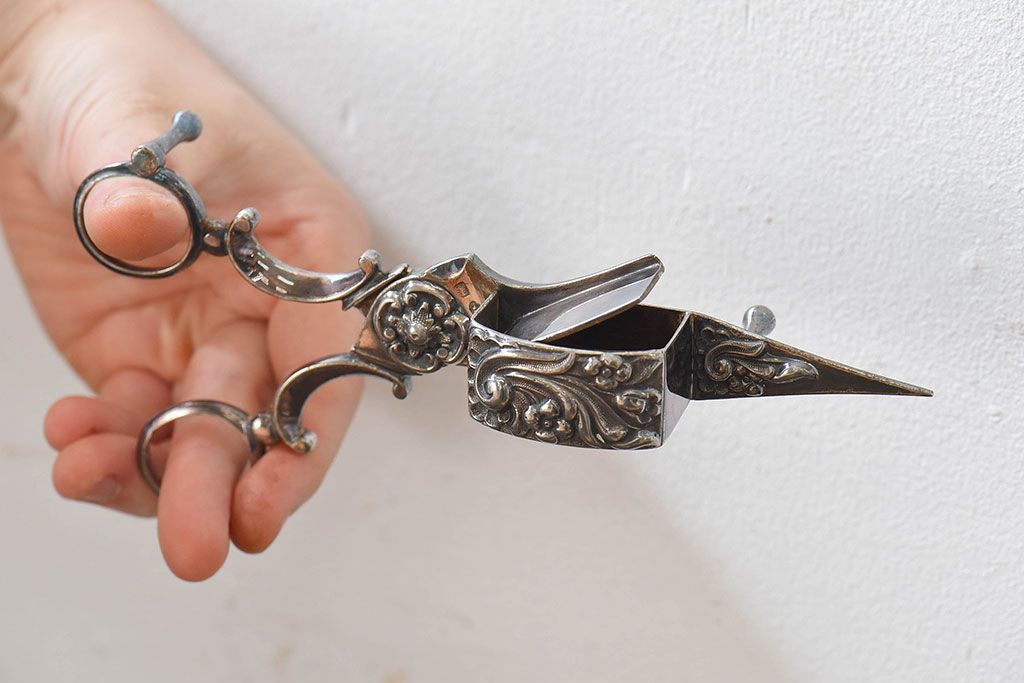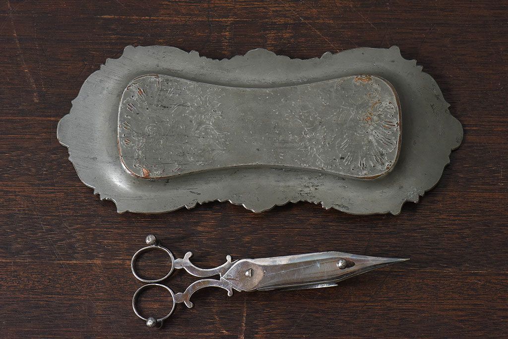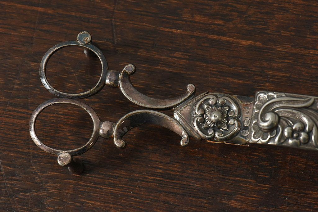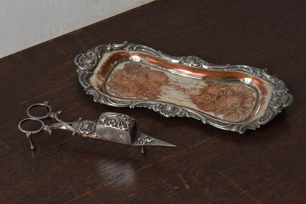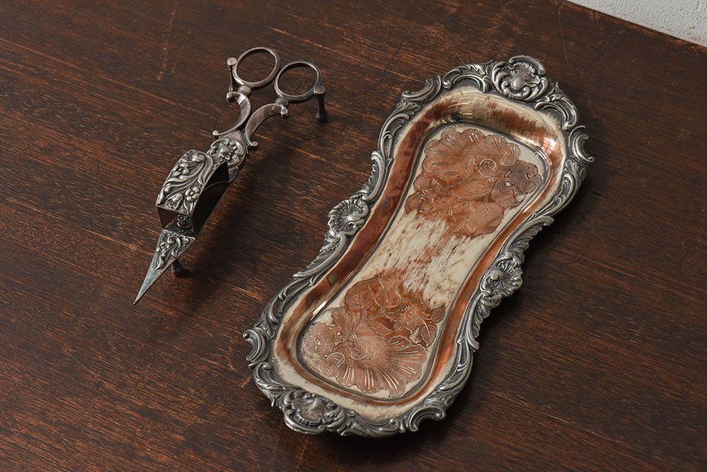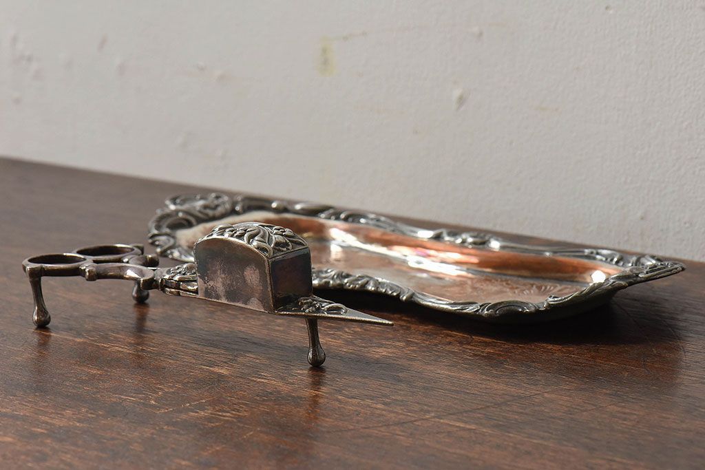 アンティーク雑貨 イギリスアンティーク 優美なデザインが印象的なキャンドルシザー(トレイ付き)