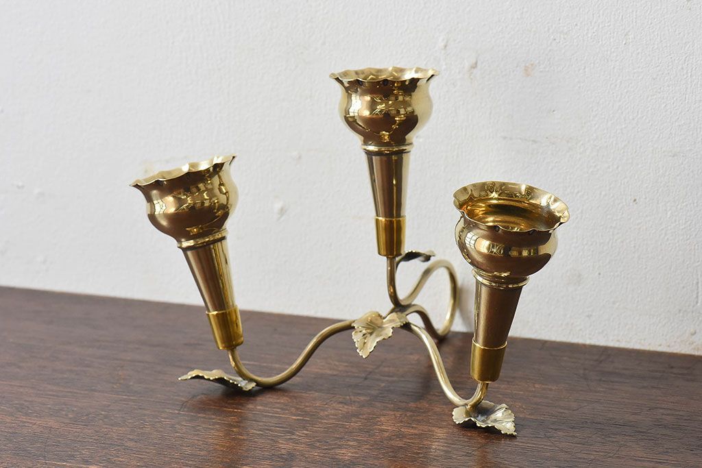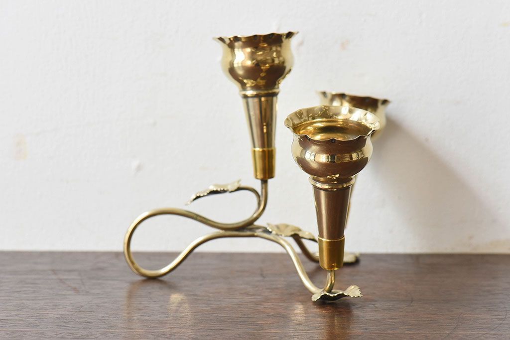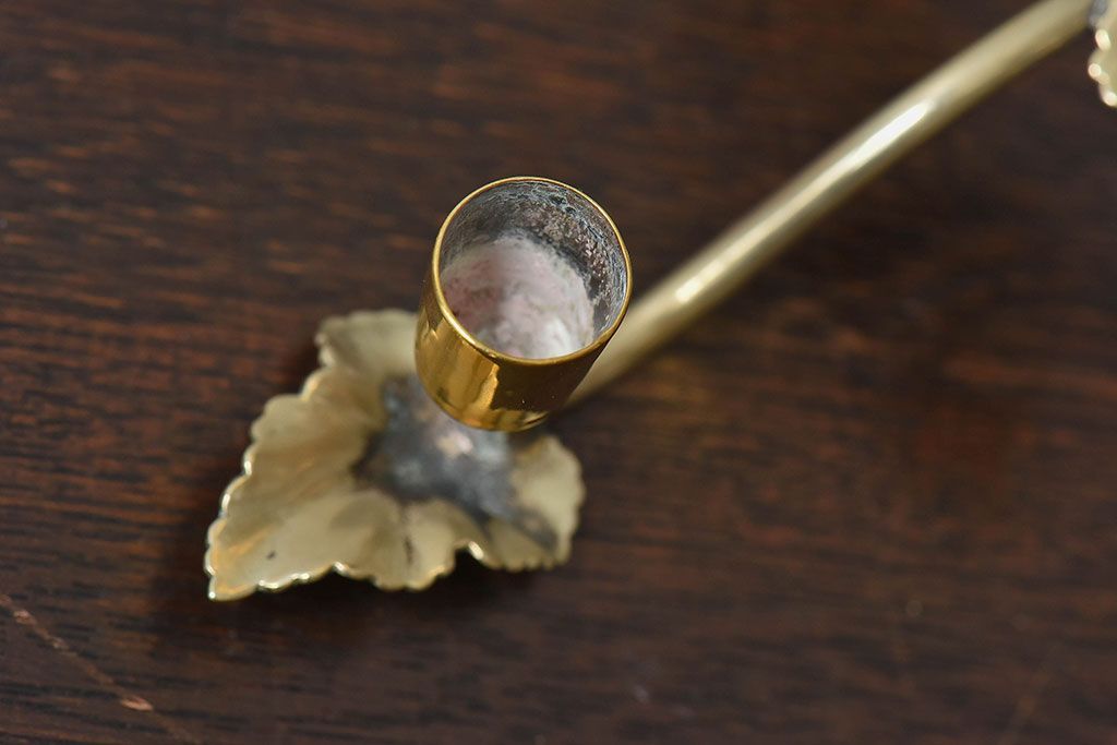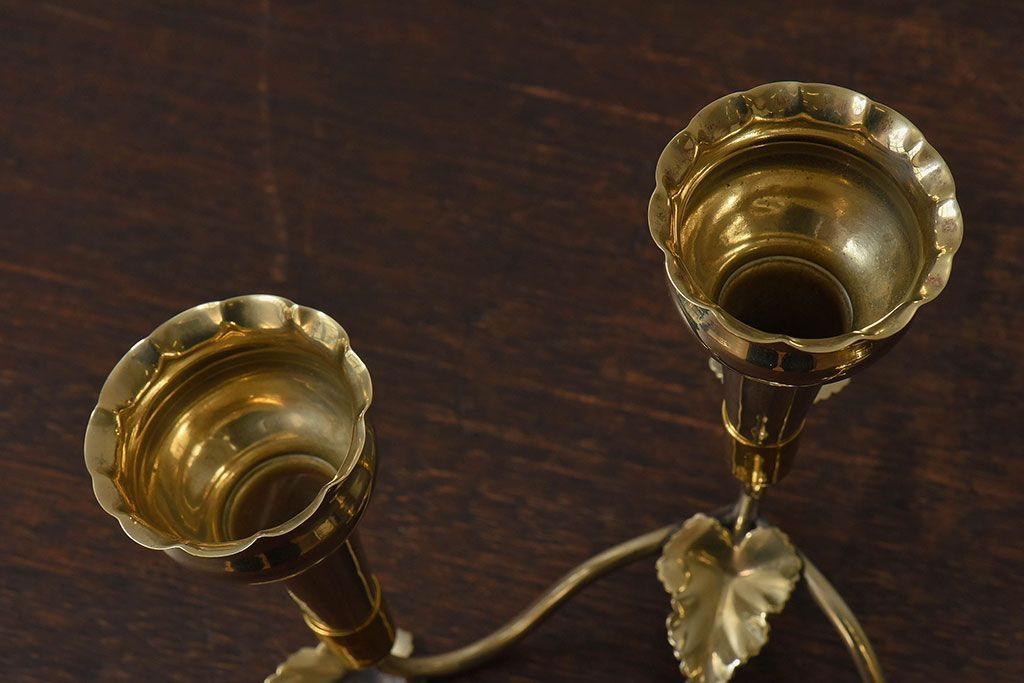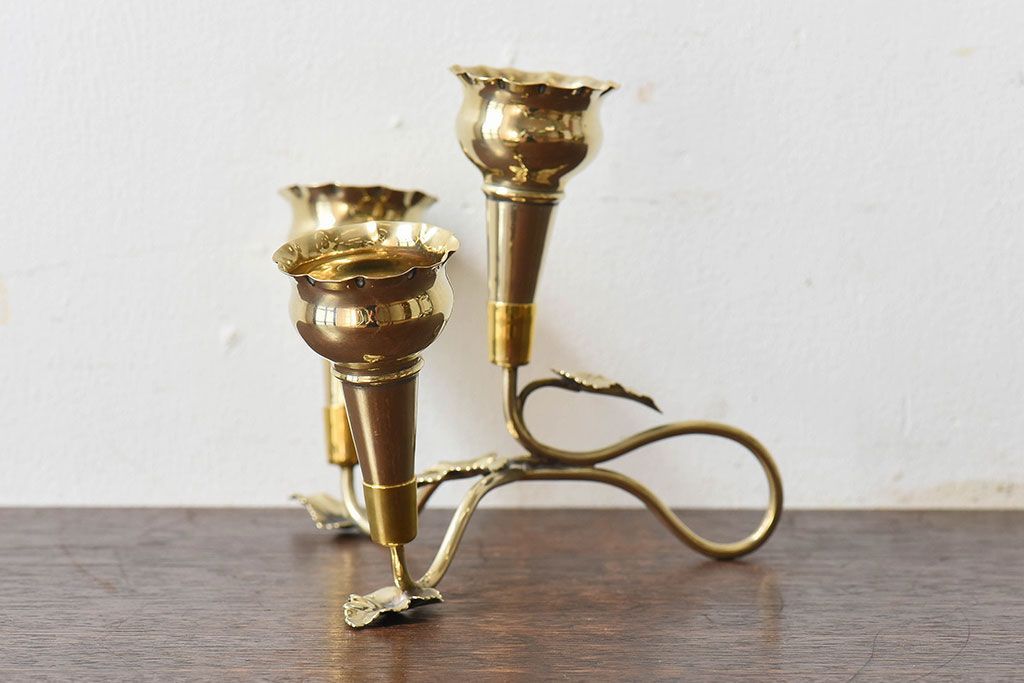 アンティーク雑貨 イギリスビンテージ 真鍮製 上品なデザインのキャンドルスタンド(ろうそく入れ)