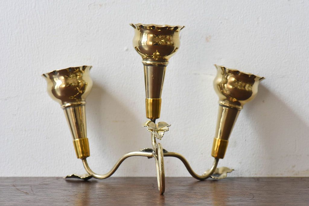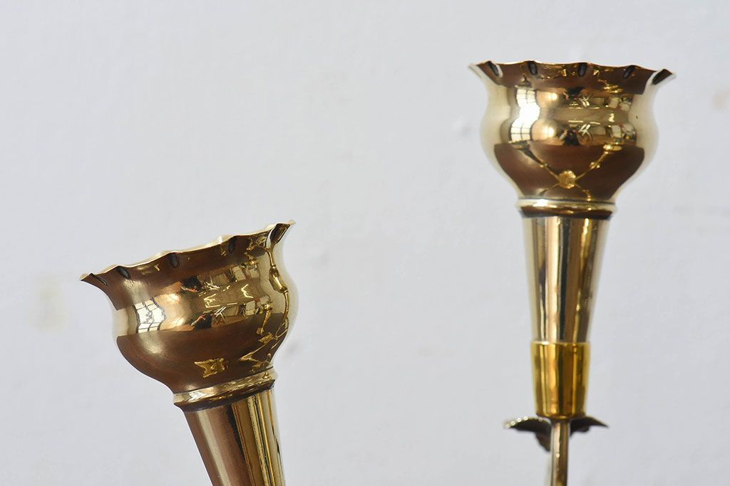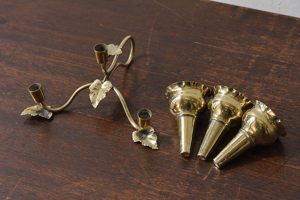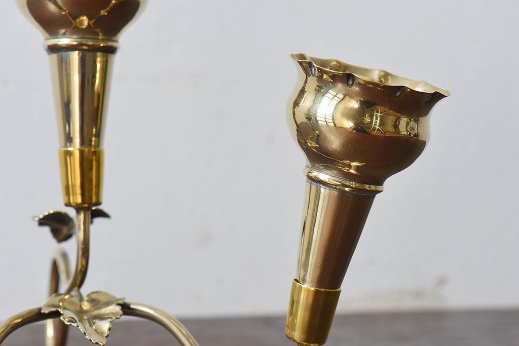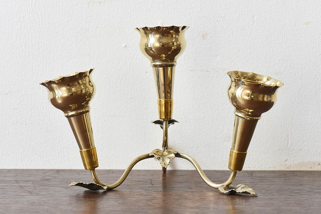 アンティーク雑貨 イギリスビンテージ 真鍮製 上品なデザインのキャンドルスタンド(ろうそく入れ)