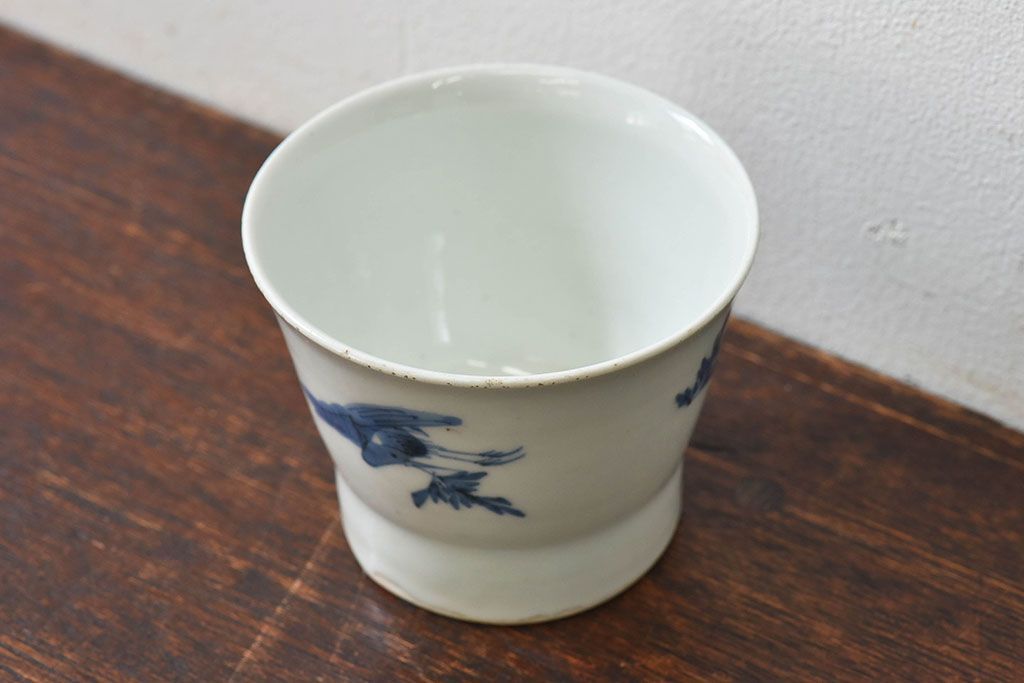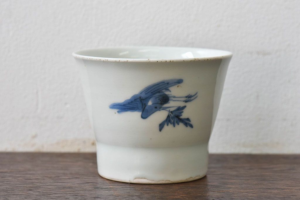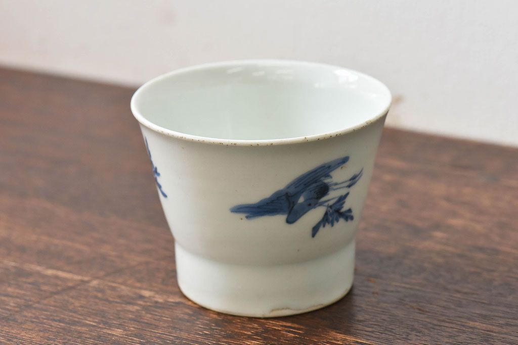 ラフジュ工房> 和食器・茶道具> 急須・湯吞み > 古民具・骨董 江戸後期 鶴に人参の図 広東形蕎麦猪口(古伊万里)(1)