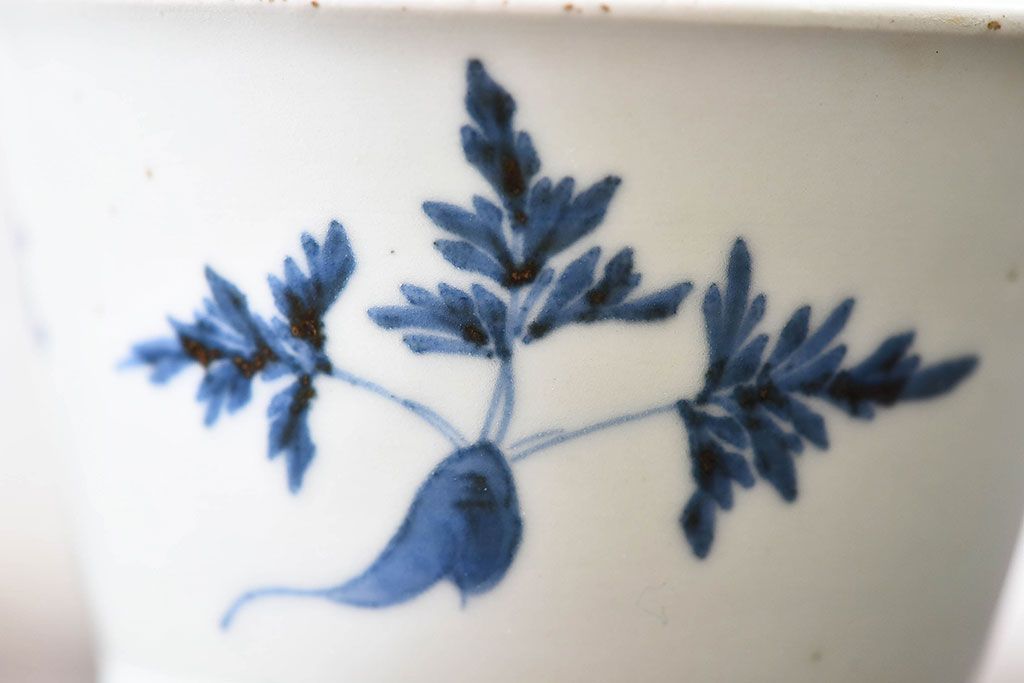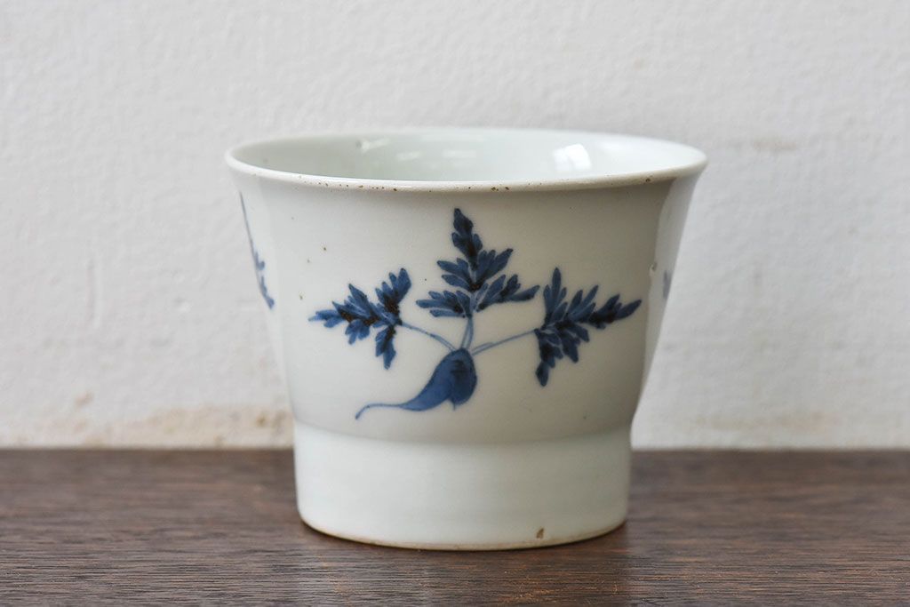 古民具・骨董 江戸後期 鶴に人参の図 広東形蕎麦猪口(古伊万里)(1)