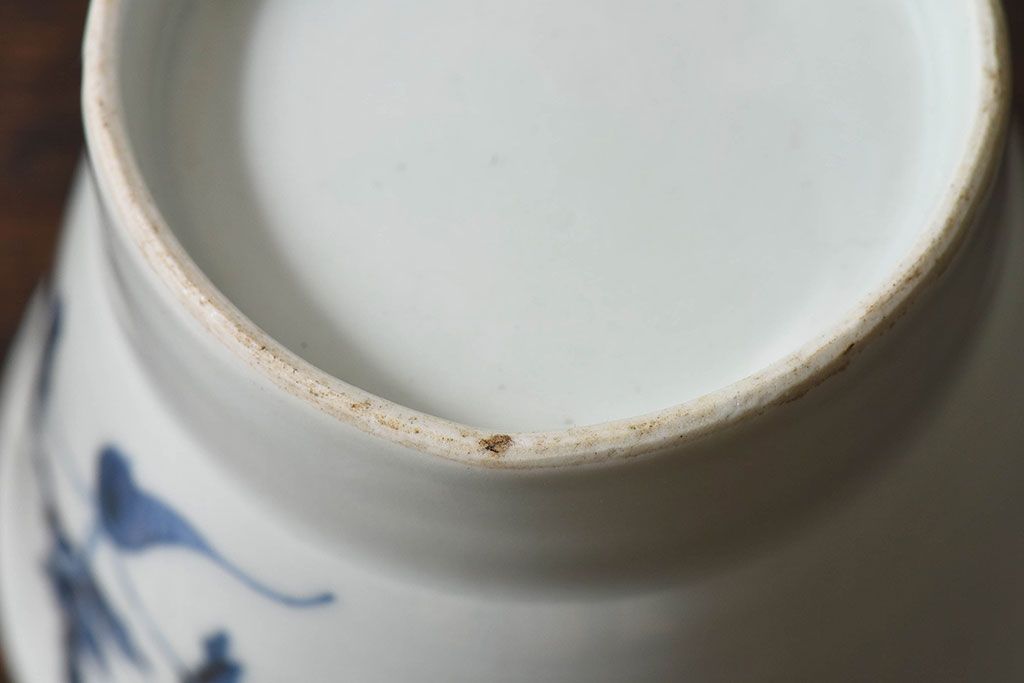 ラフジュ工房> 骨董・美術品 > 古民具・骨董 江戸後期 鶴に人参の図 広東形蕎麦猪口(古伊万里)(1)