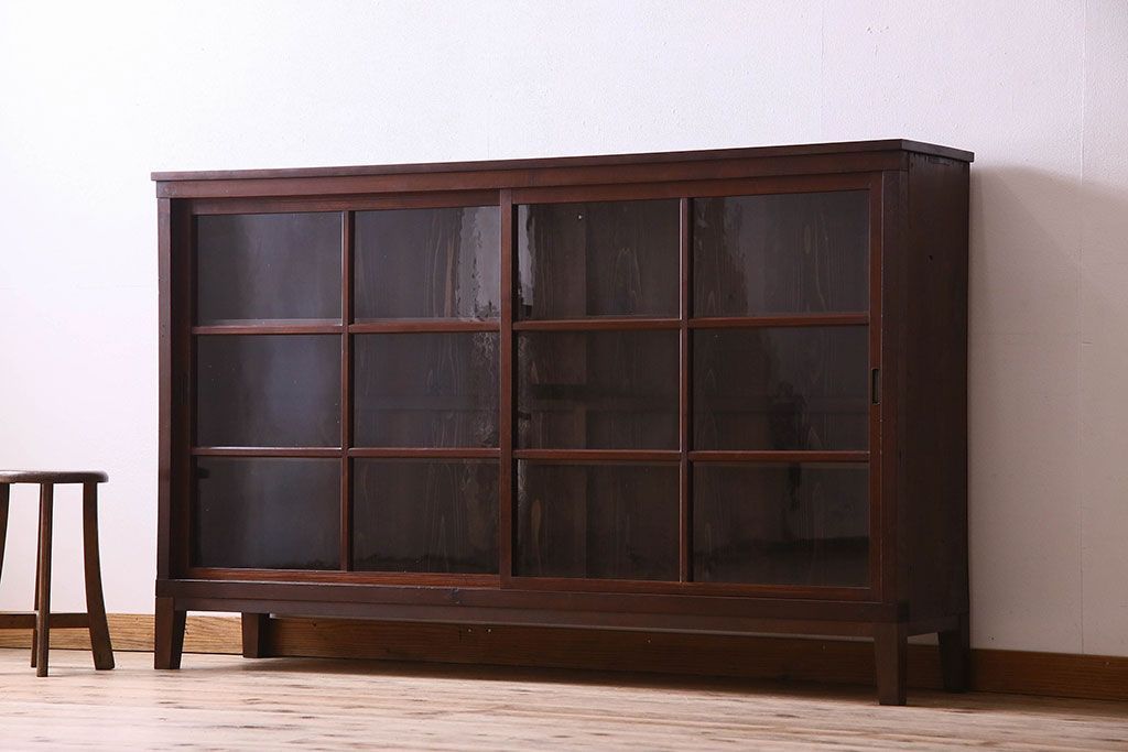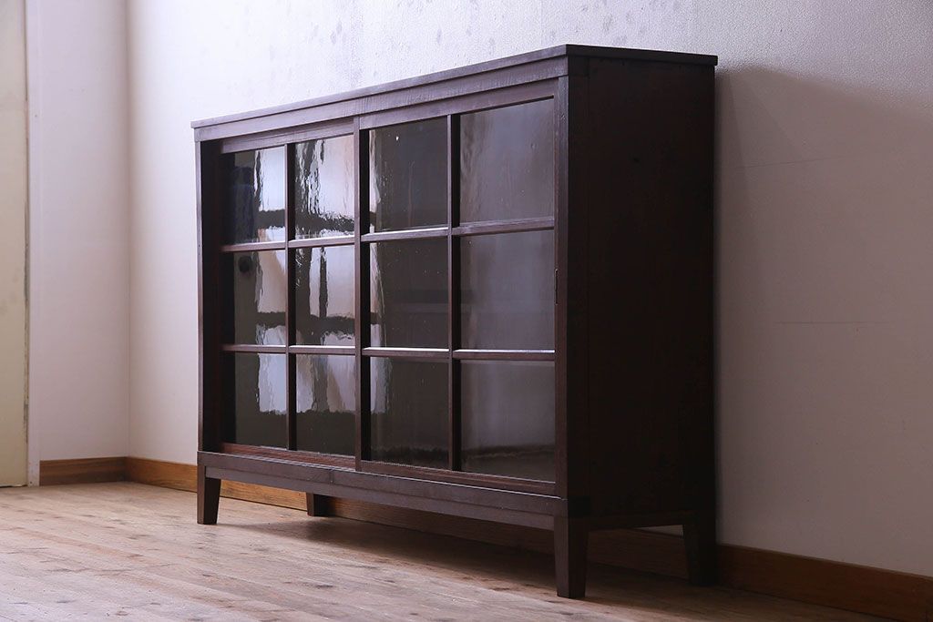 アンティーク家具 和製アンティーク 格子引き戸が印象的な収納棚(戸棚、食器棚、飾り棚)