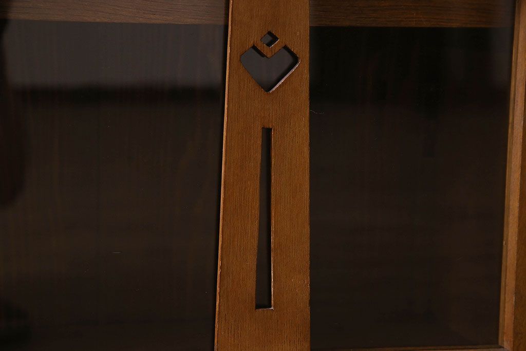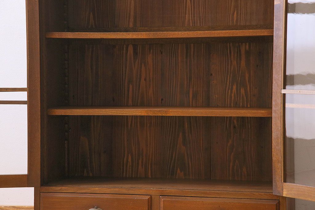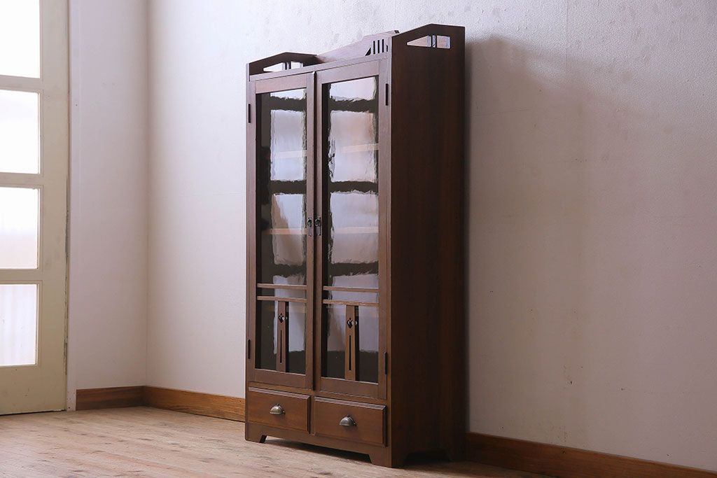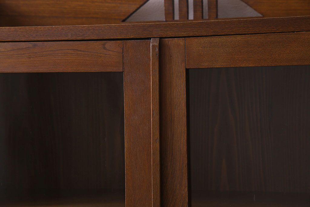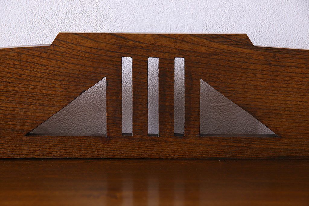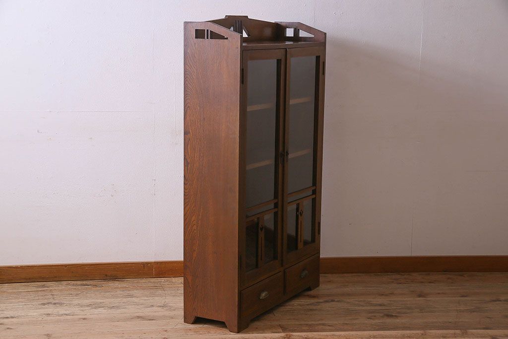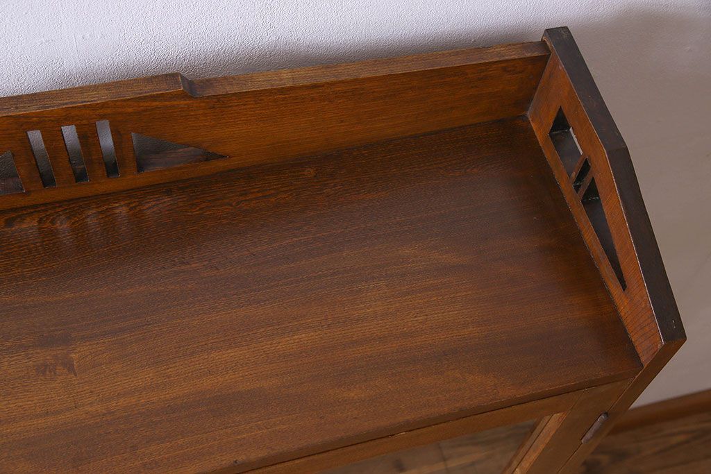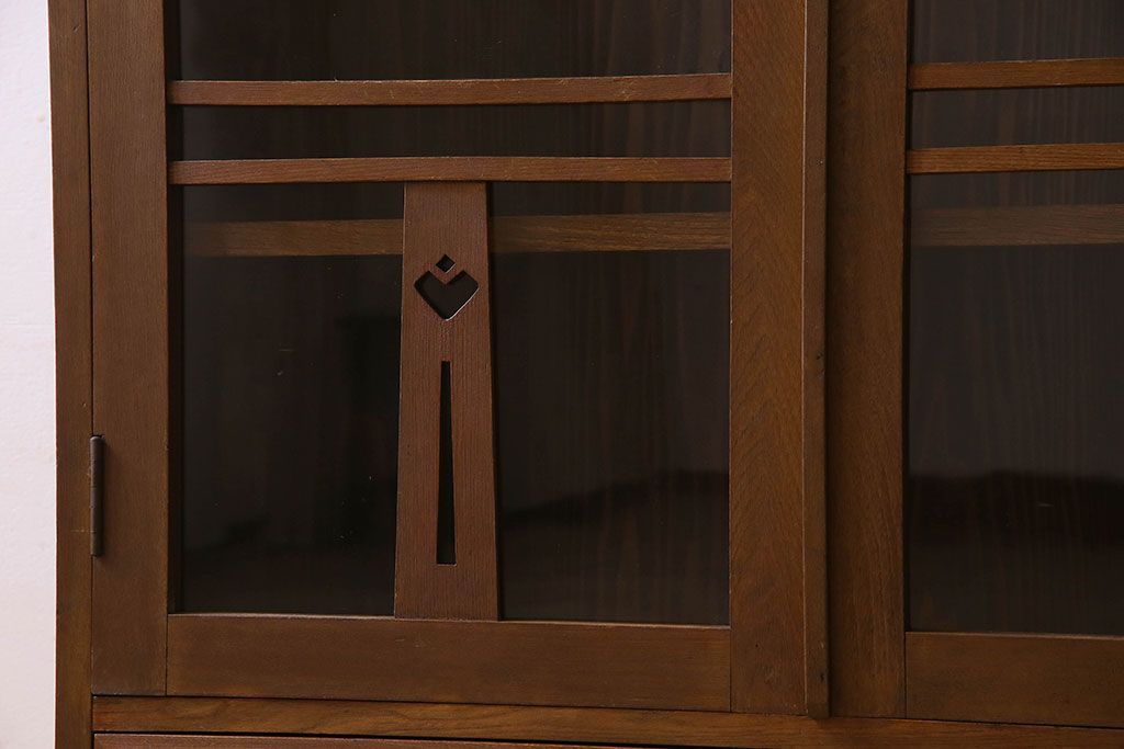 ラフジュ工房> キャビネット・戸棚> 食器棚・カップボード > アンティーク家具 大正ロマン 美しい透かし彫り入りの大振りな本箱(ブックケース、食器棚)