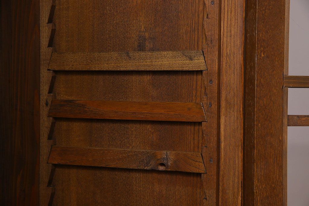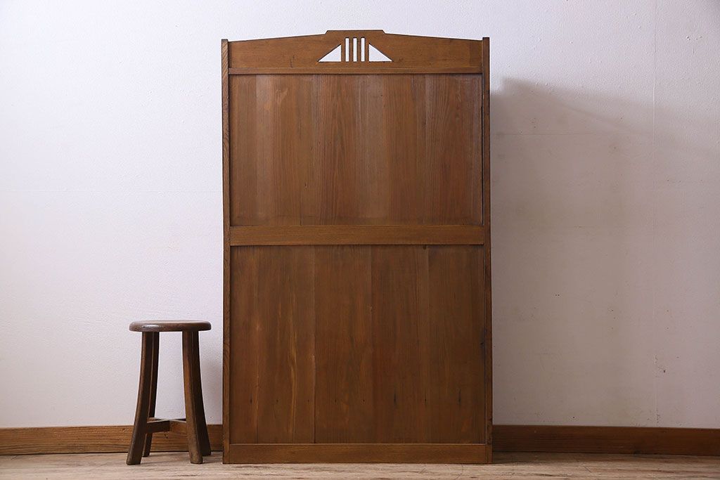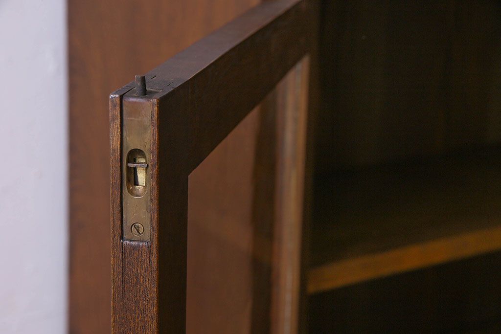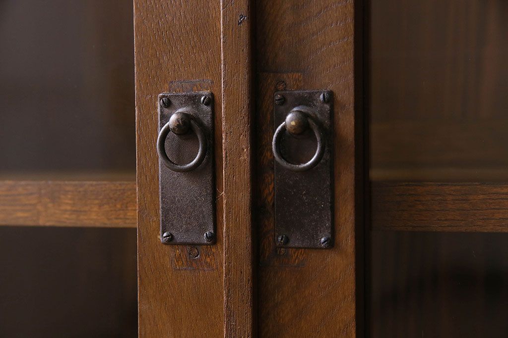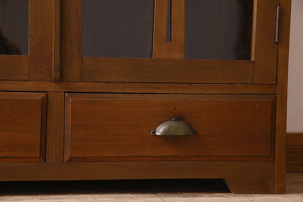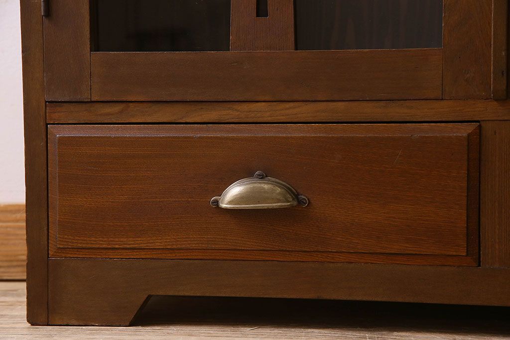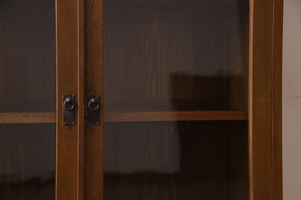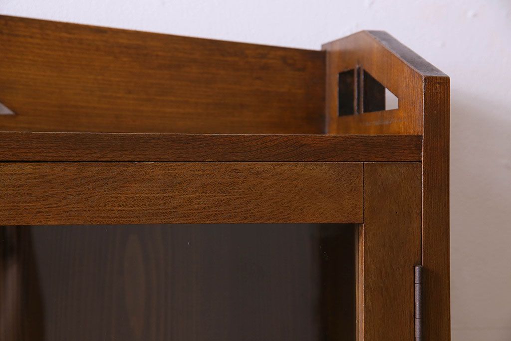 ラフジュ工房> キャビネット・戸棚> 食器棚・カップボード > アンティーク家具 大正ロマン 美しい透かし彫り入りの大振りな本箱(ブックケース、食器棚)