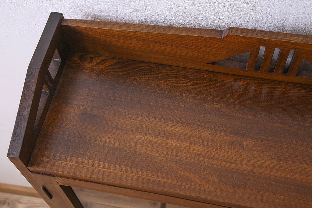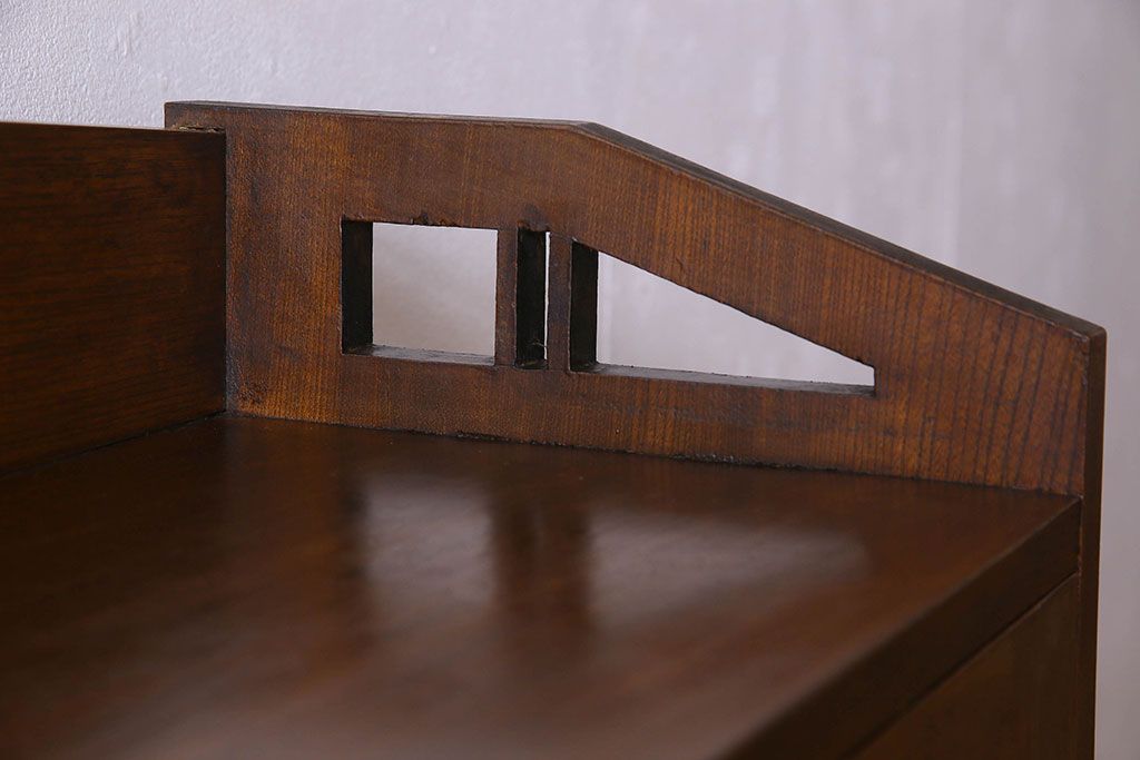 ラフジュ工房> キャビネット・戸棚> サイドボード > アンティーク家具 大正ロマン 美しい透かし彫り入りの大振りな本箱(ブックケース、食器棚)