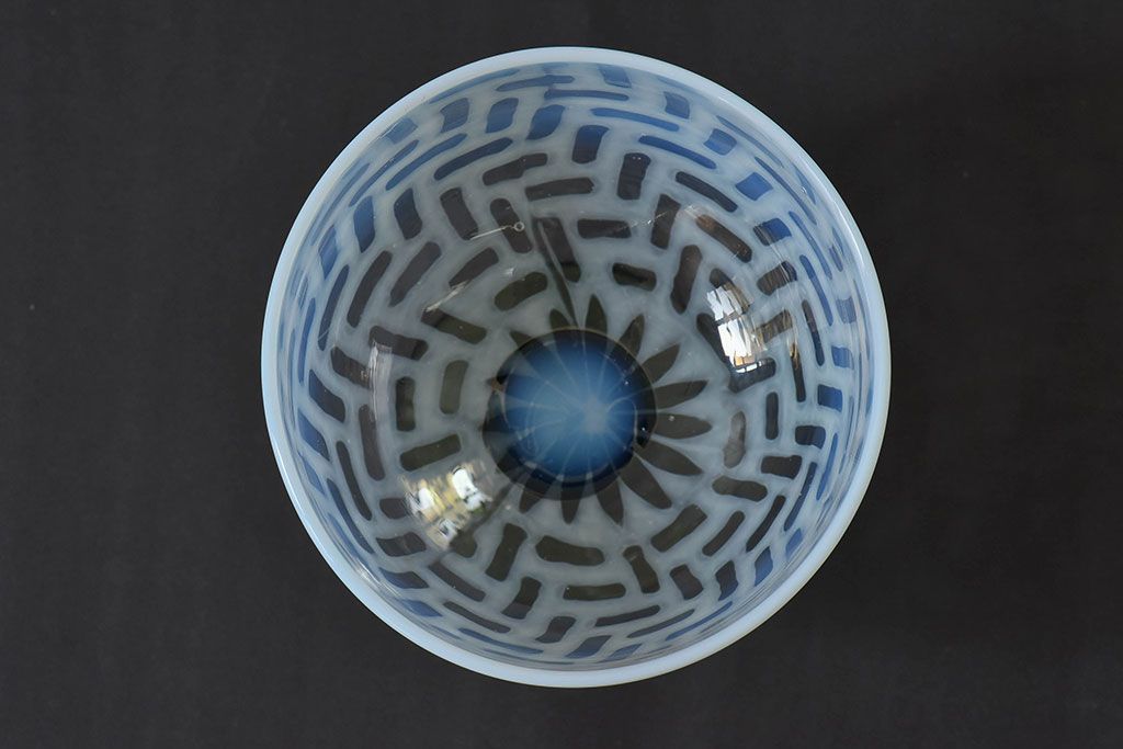 ラフジュ工房> 和食器・茶道具> 氷コップ > アンティーク雑貨 大正時代 籠目文 碗型氷コップ(和ガラス)